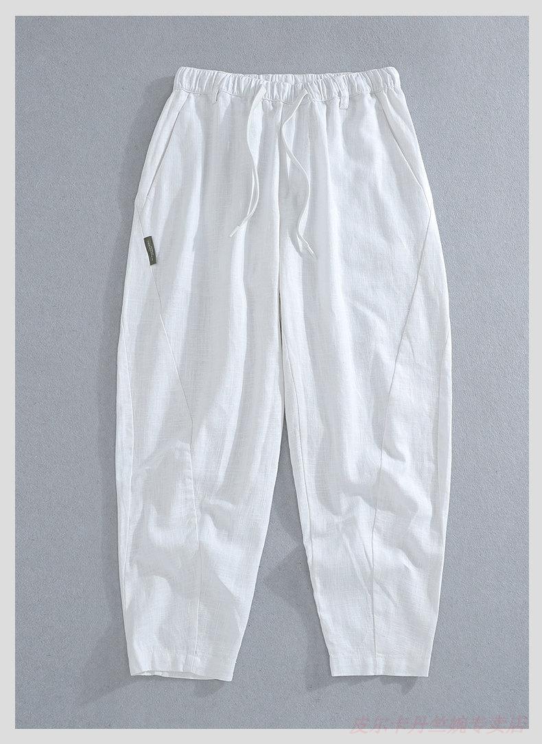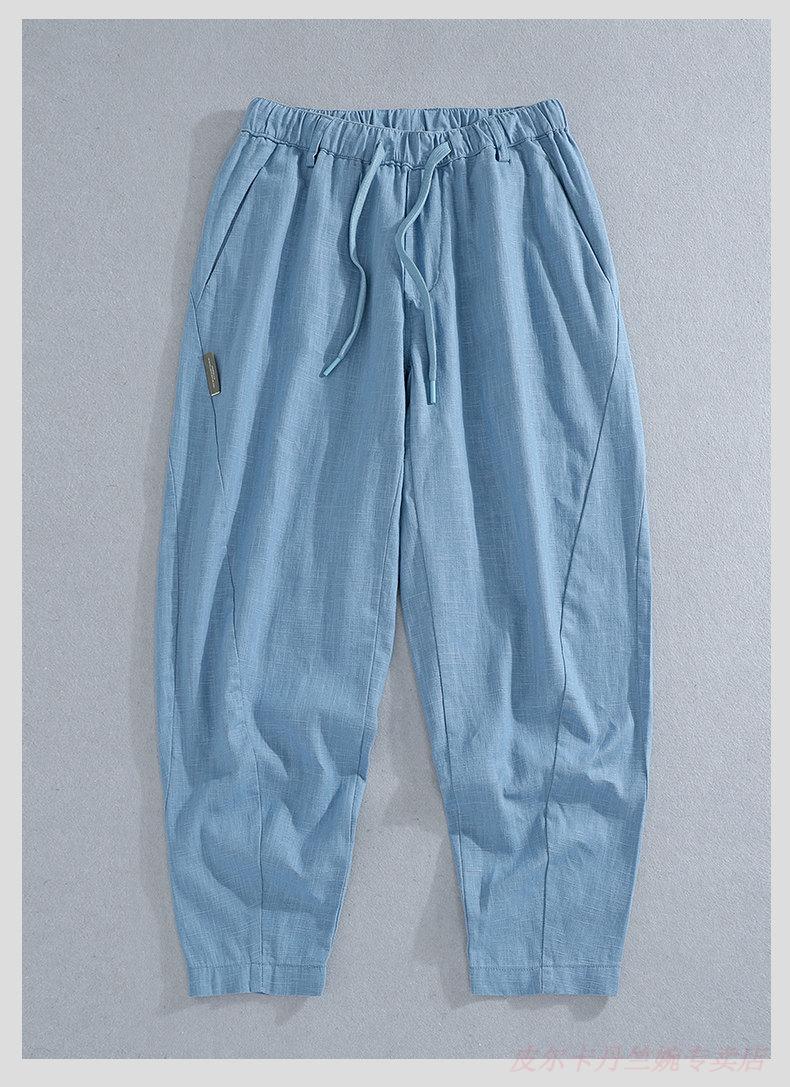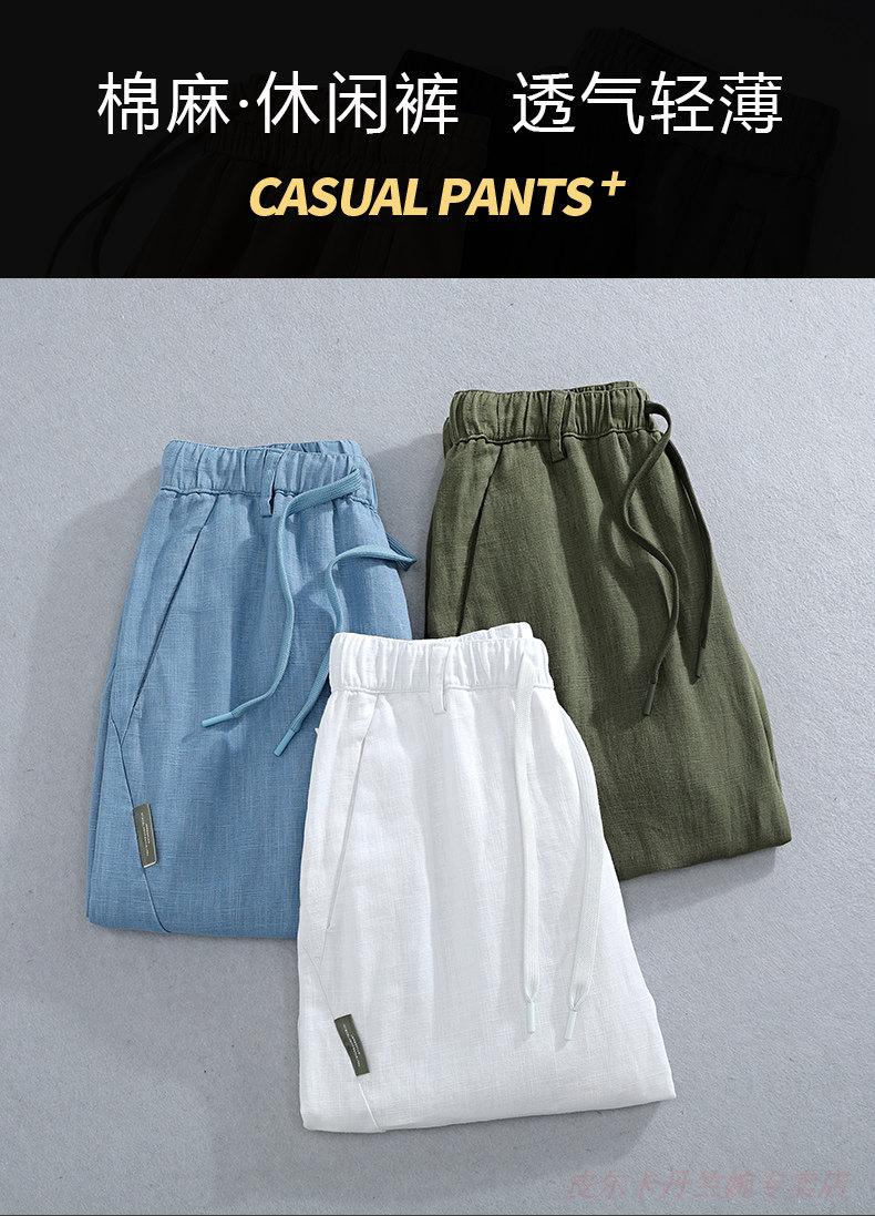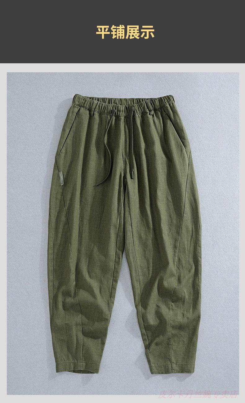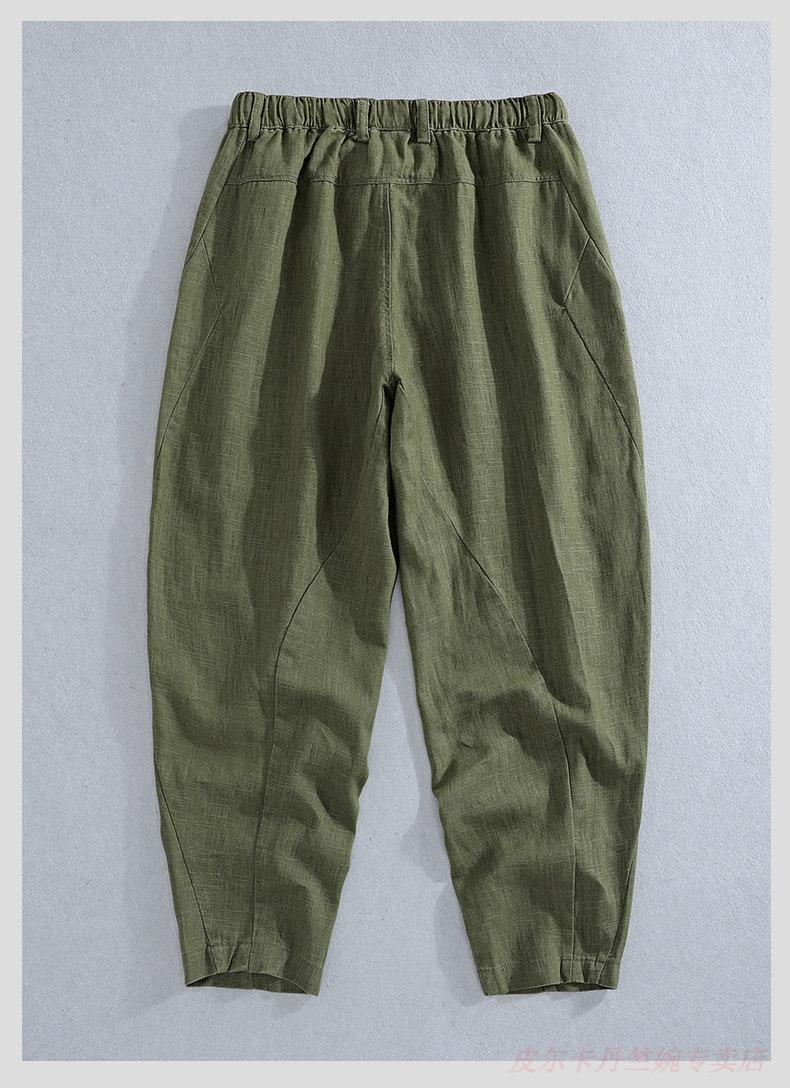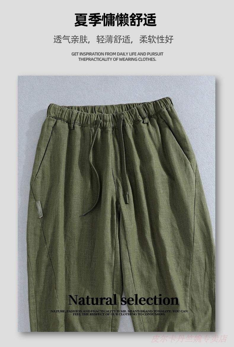 Pierre Cardin pantalones de algodón y lino pantalones de lino cónicos finos, sueltos y transpirables de verano para hombre 2026 nuevos pantalones casuales de nueve puntos de ramio verde militar fresco y transpirable S adecuado para 90-110 Jin Jin equivale a 0,5 kg