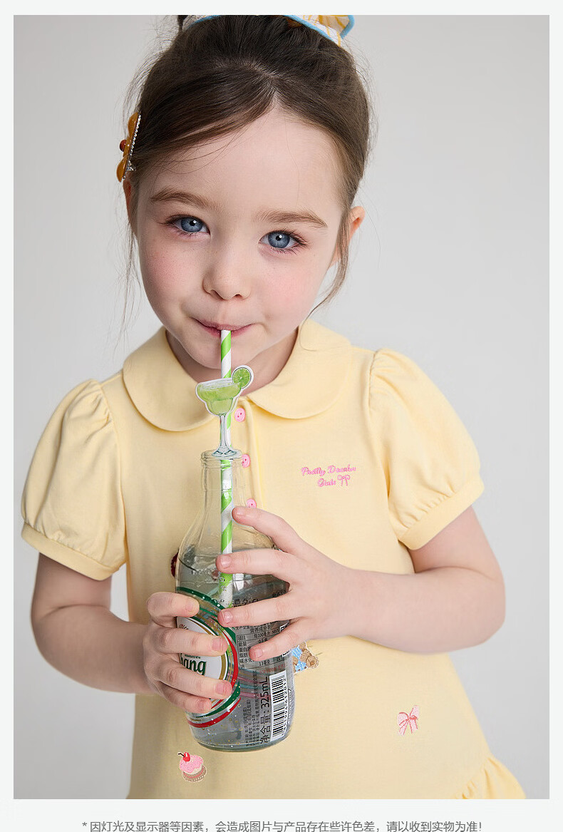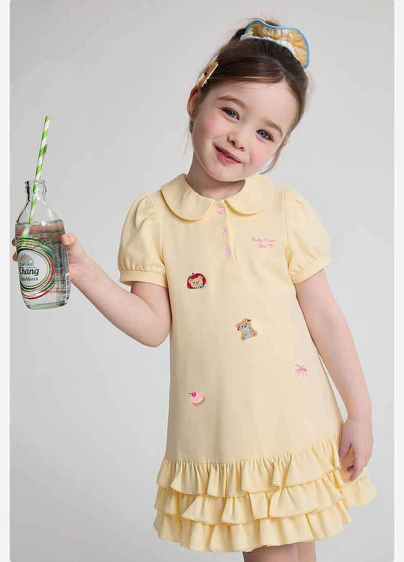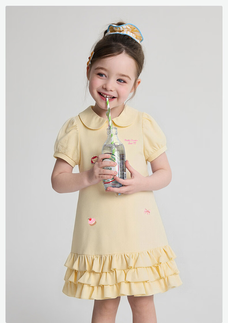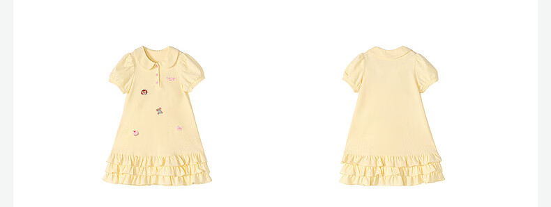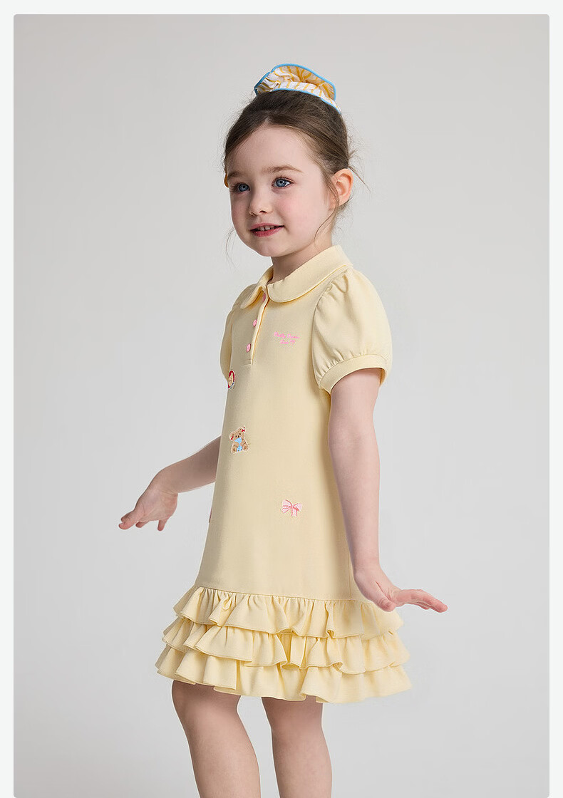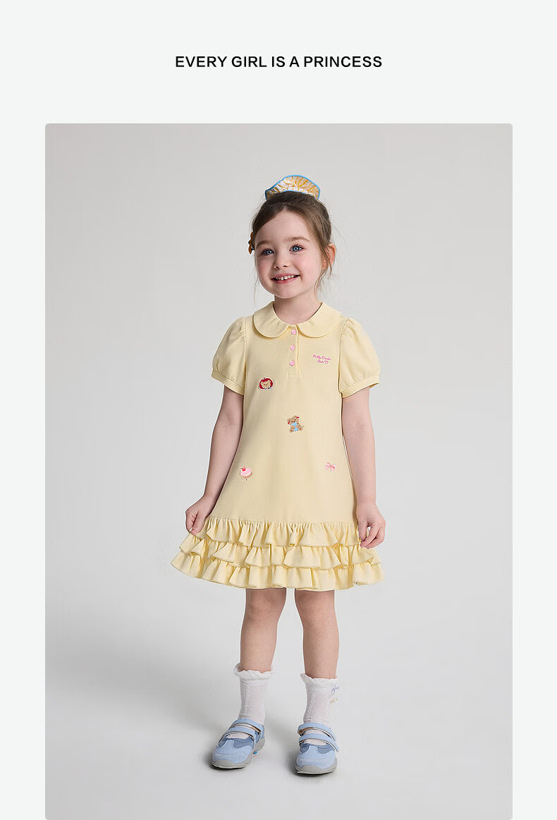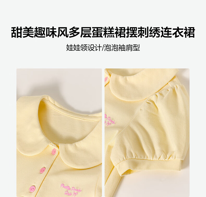 DEESHA Official Children's Clothing Girls Skirt Summer New Style Girls Baby Toddlers Sweet and Fun Embroidered Dress Yellow 90