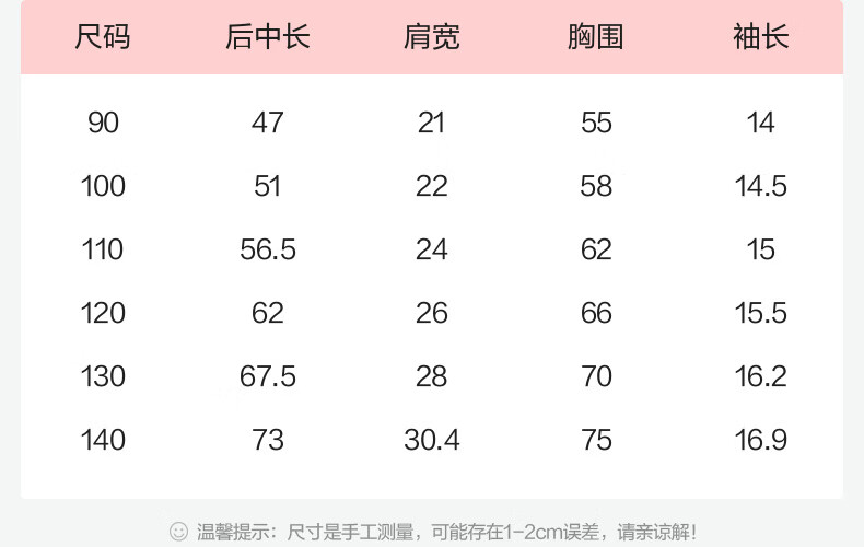 Size (cm) 42 44 46 48 50