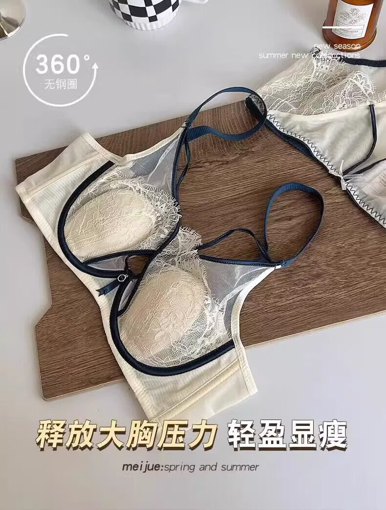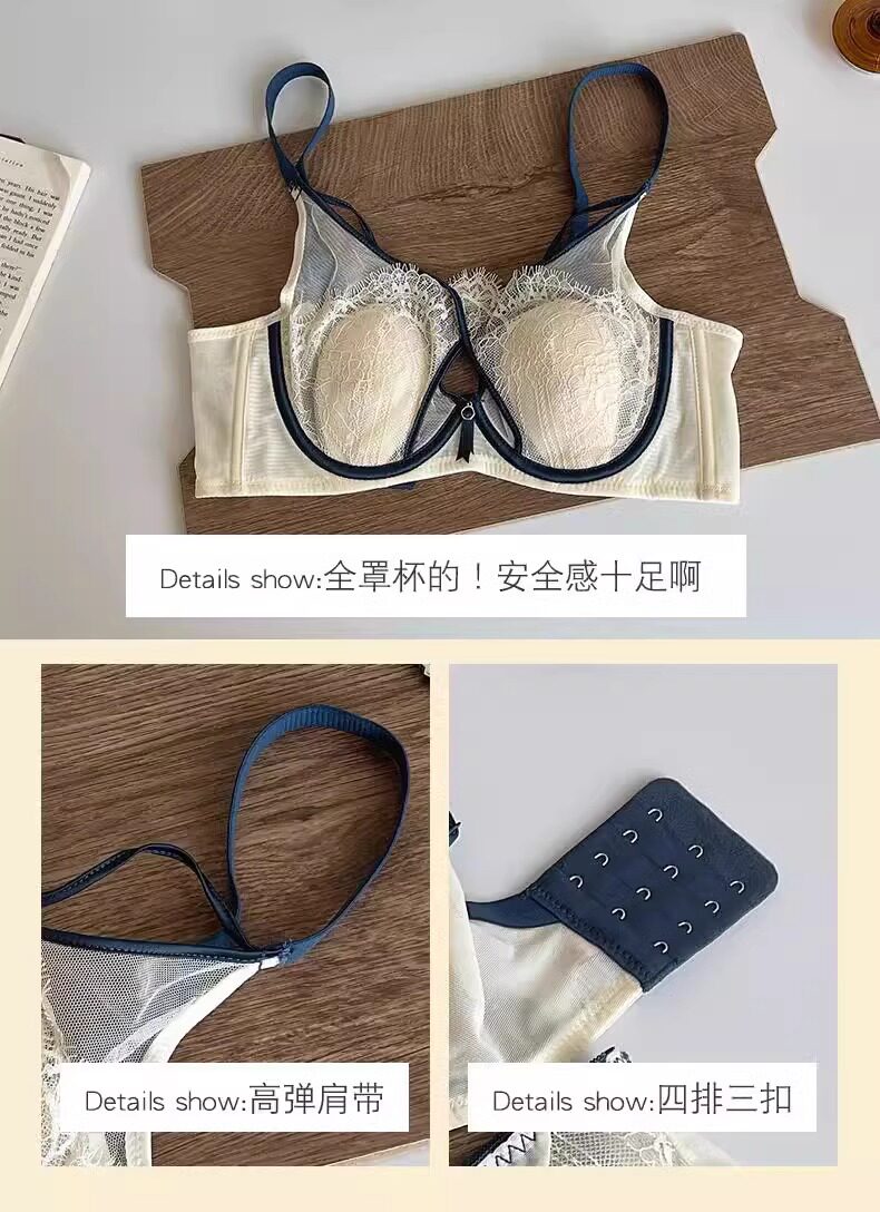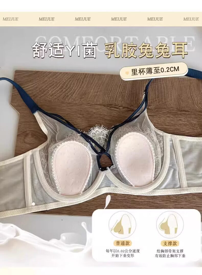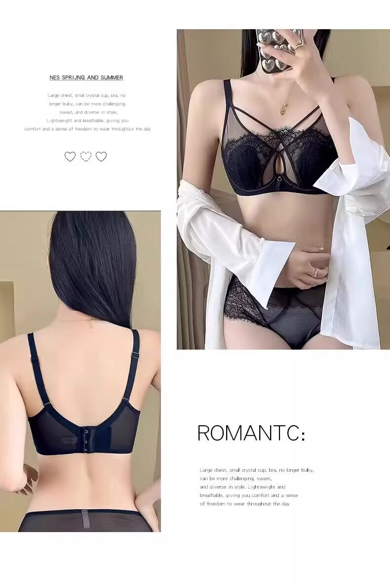 Modal Rabbit Ears Bra Women's Thin Large Breast Revealing Small Breast Reduction Secondary Breast Anti-Sagging Soft Wire Bra Push-Up Ultra-Thin Bra Black Single Pack 75B 34