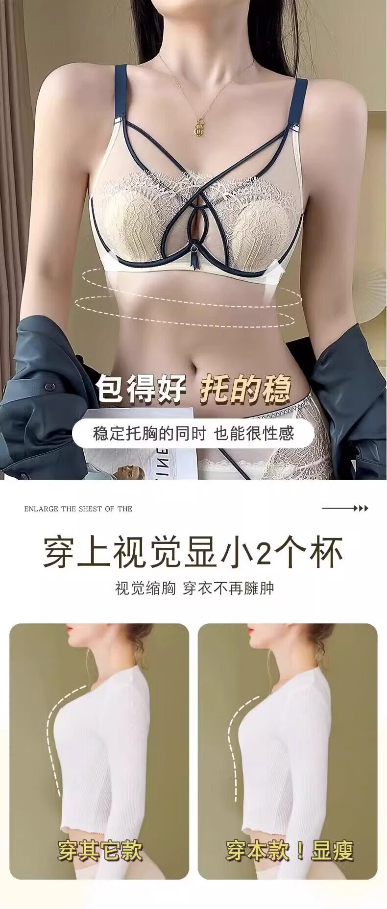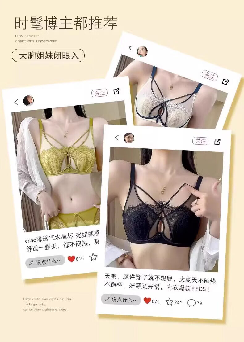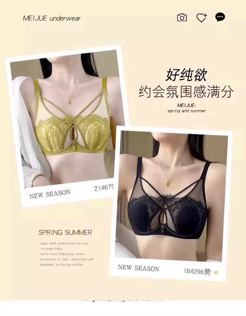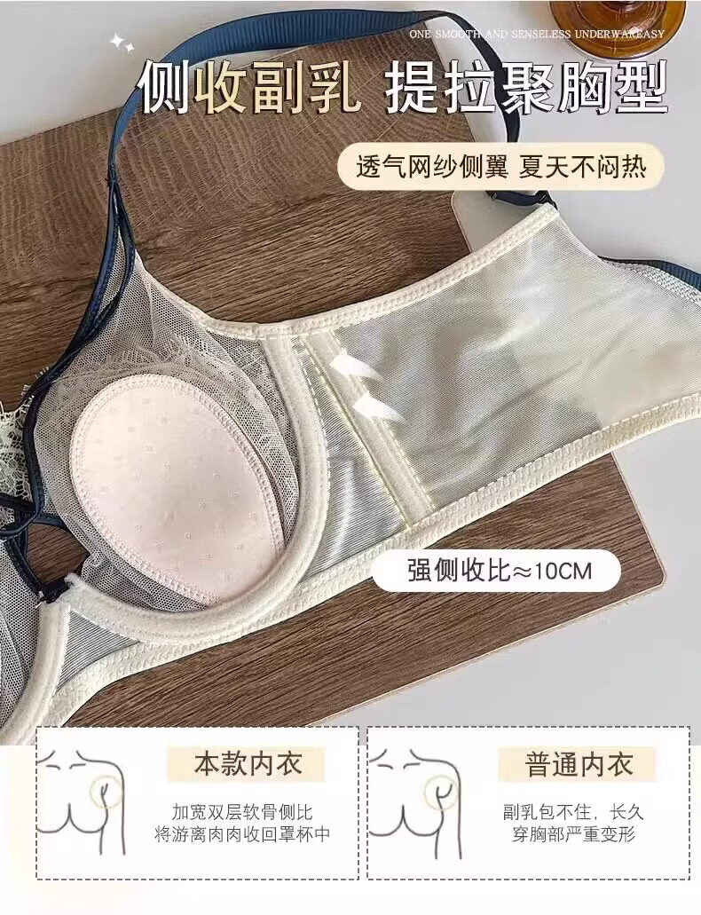 Modal Rabbit Ears Bra Women's Thin Large Breast Revealing Small Breast Reduction Secondary Breast Anti-Sagging Soft Wire Bra Push-Up Ultra-Thin Bra Black Single Pack 75B 34