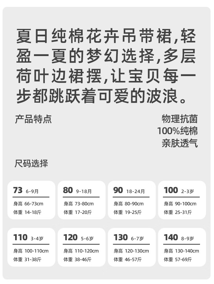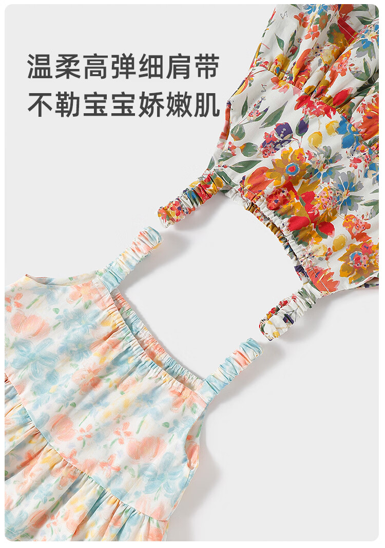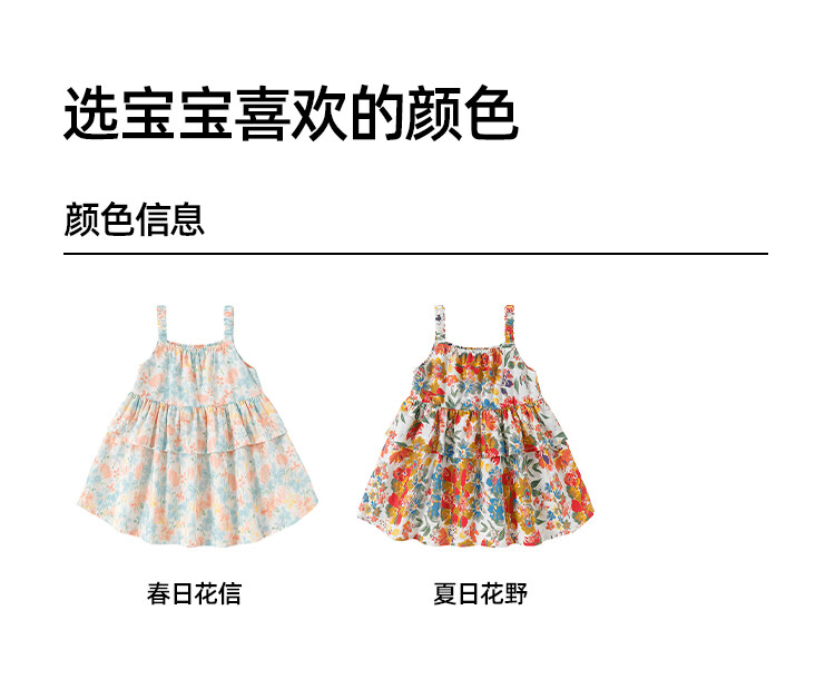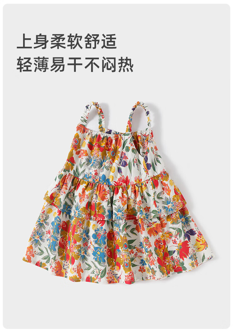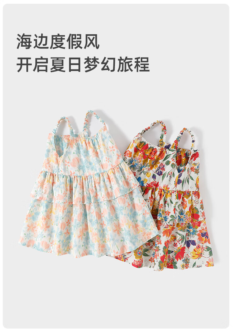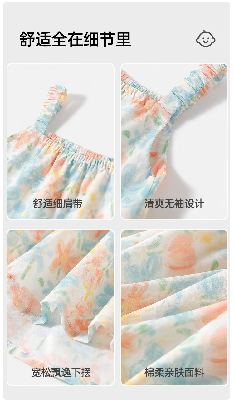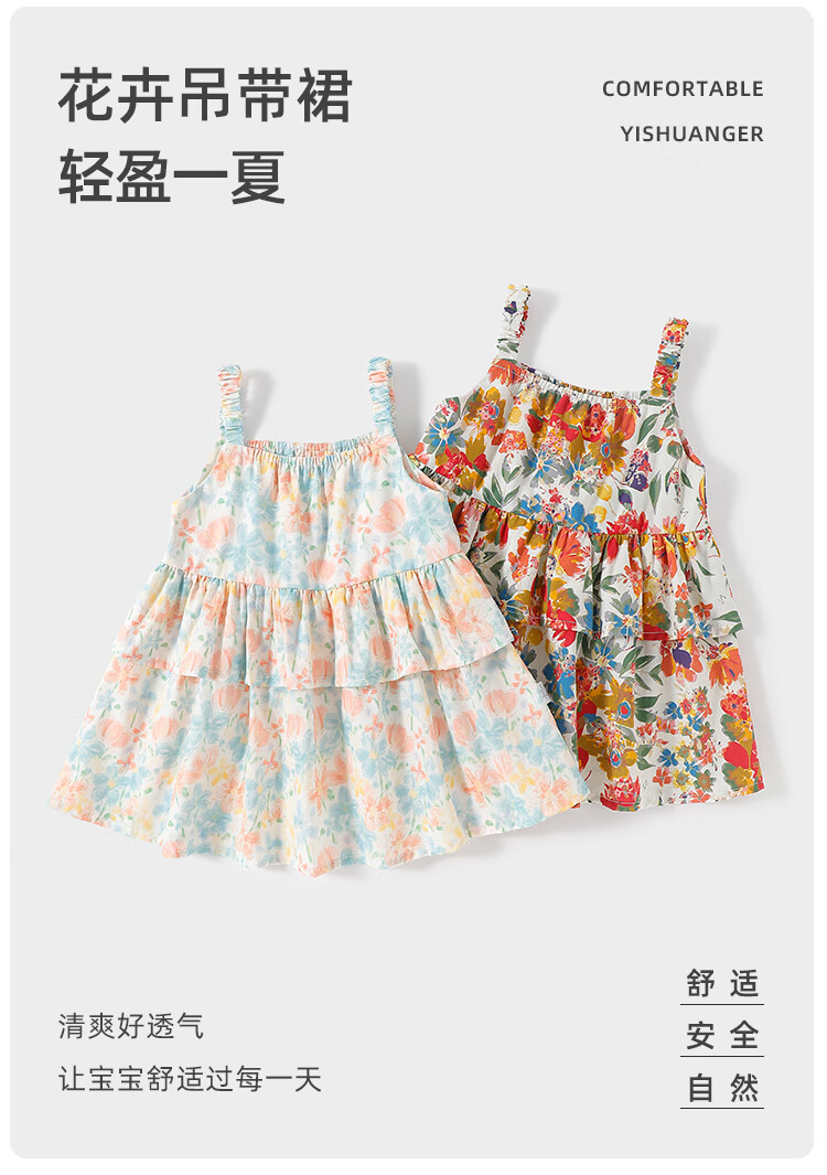 Yishuanger girls summer floral baby dress baby summer cute princess skirt pure cotton children's style suspender skirt Spring Flower Letter 80