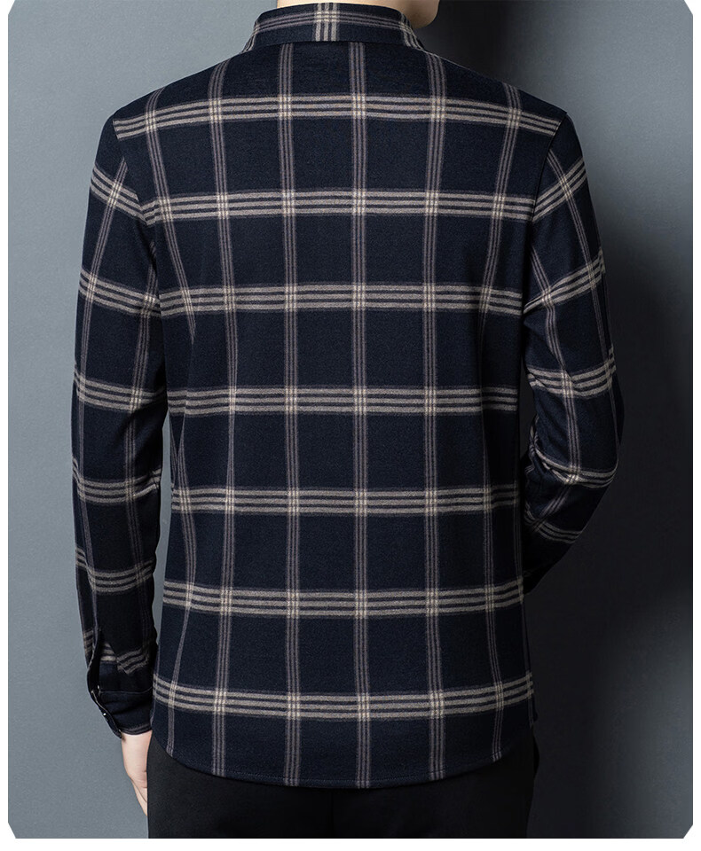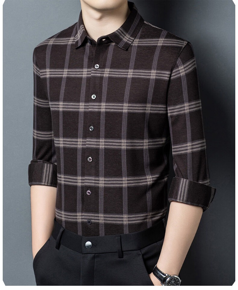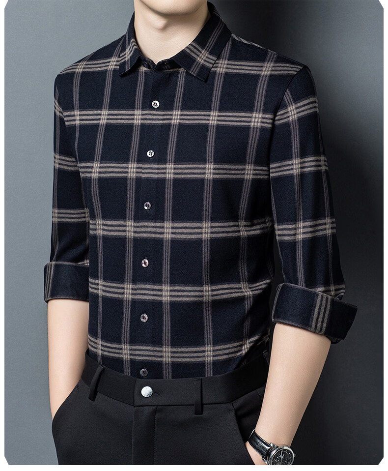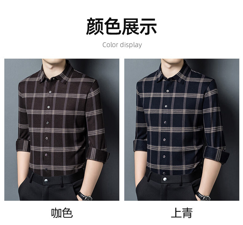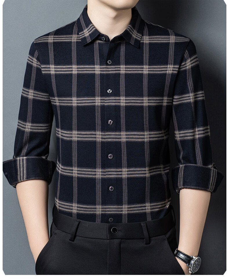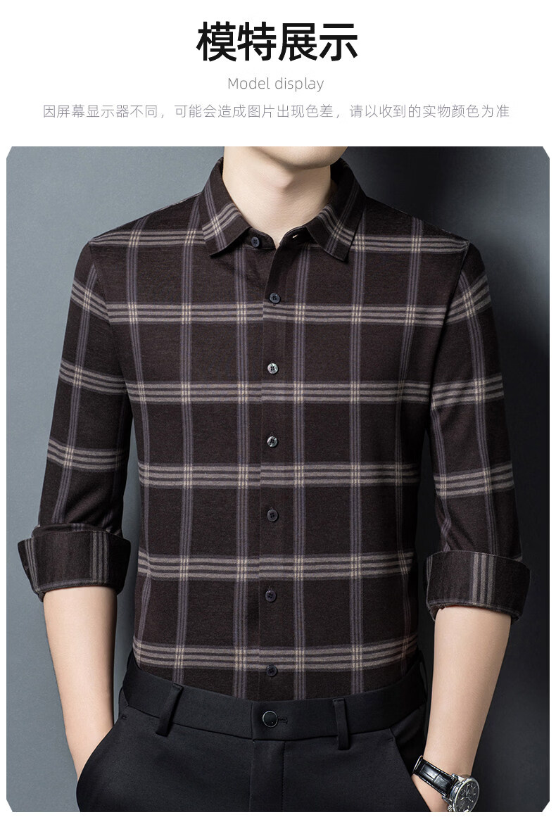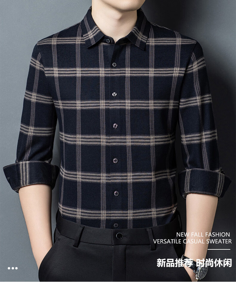 B PRORSUM Burberry men's long-sleeved plaid shirt 2026 autumn new business casual middle-aged sheep. Wool floral shirt upper blue M 165 recommended 100-115Jin Jin equals 0.5 kg