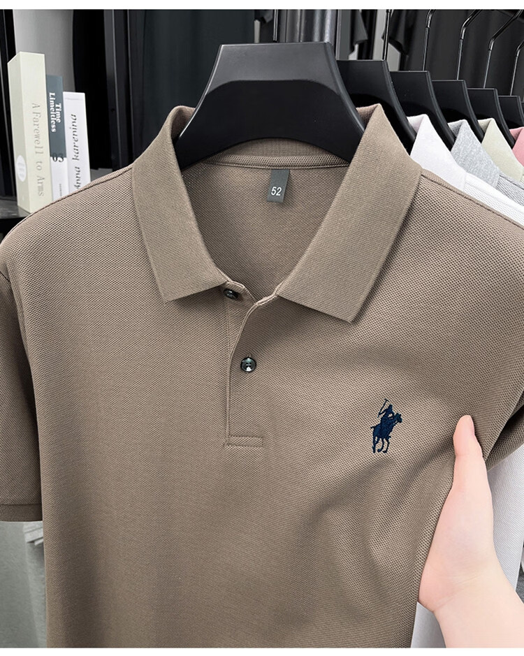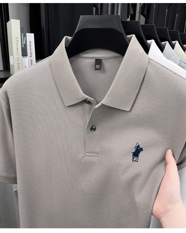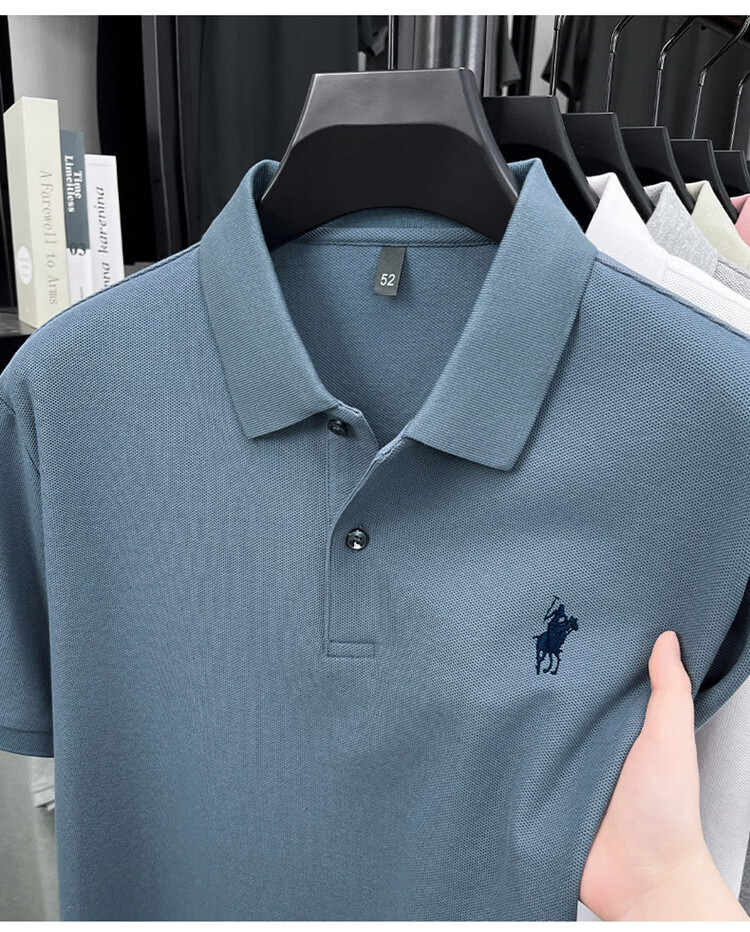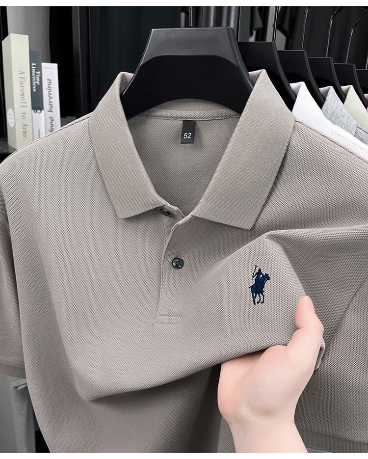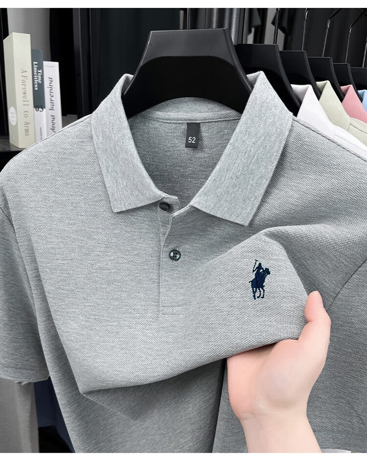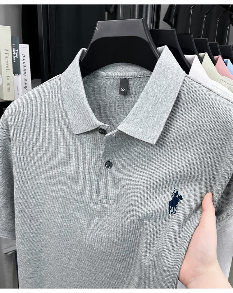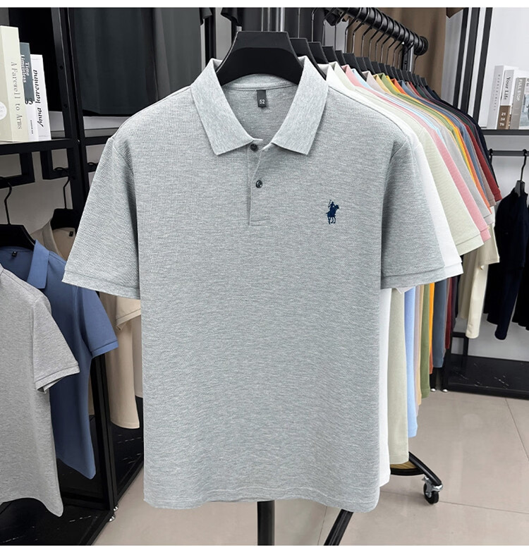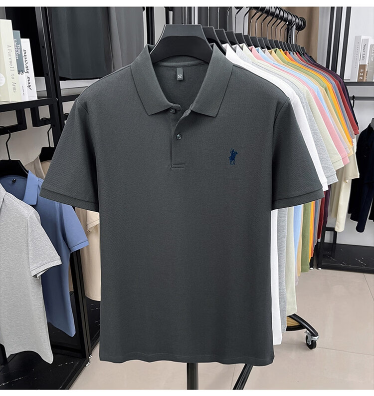 Woodpecker (TUCANO) 100% cotton high-end short-sleeved t-shirt men's summer embroidered lapel polo shirt business dad half-sleeved T-shirt floral gray pure cotton fabric comfortable skin-friendly and breathable XL 175 size - recommended 130-155 Jin Jin equals 0.5 kg