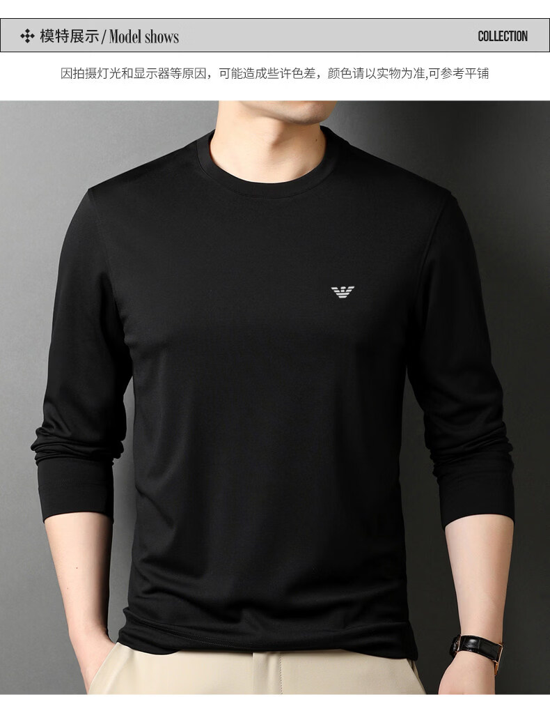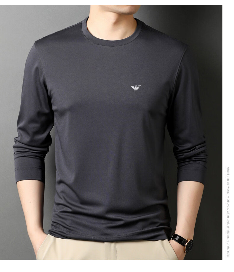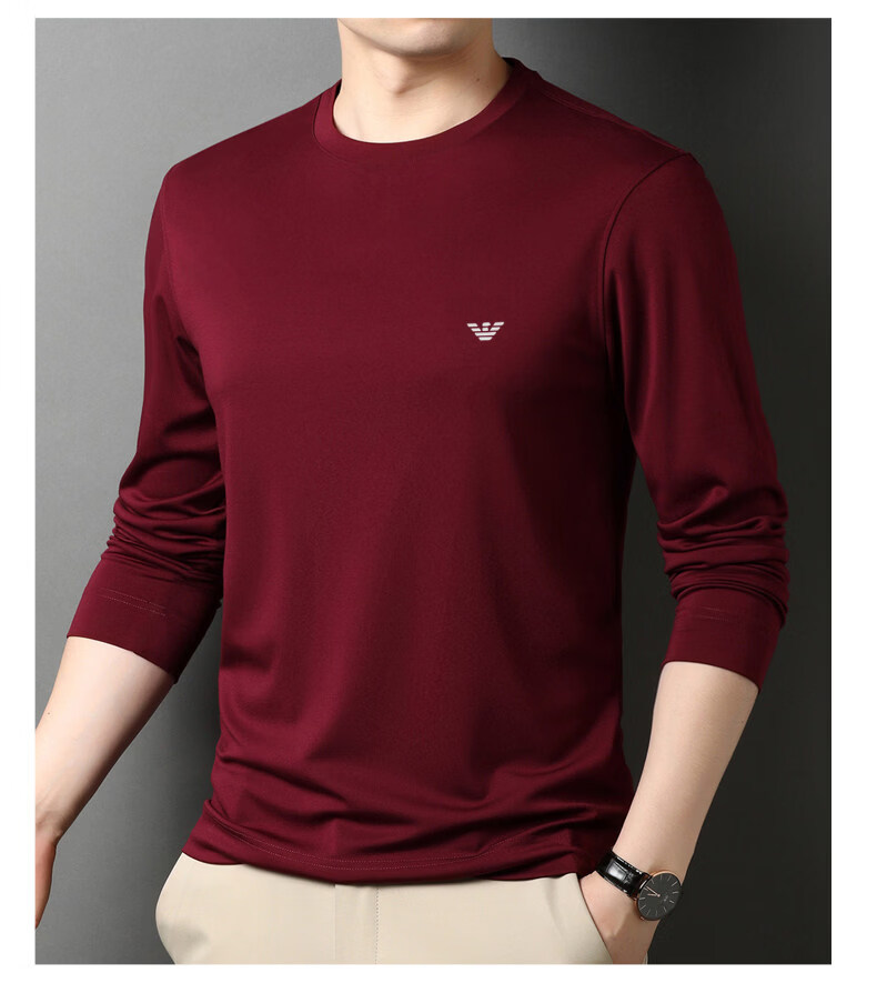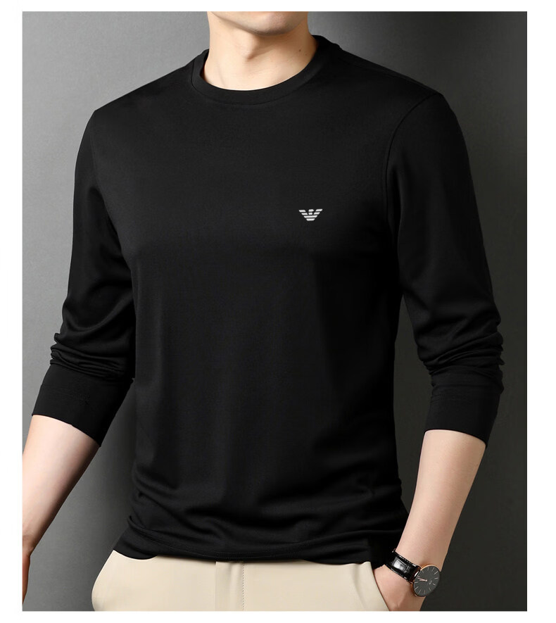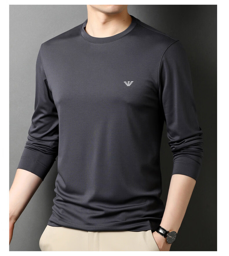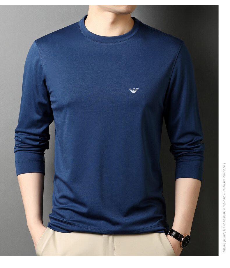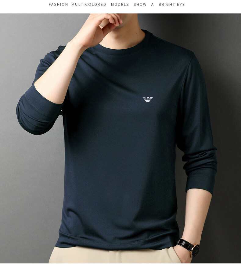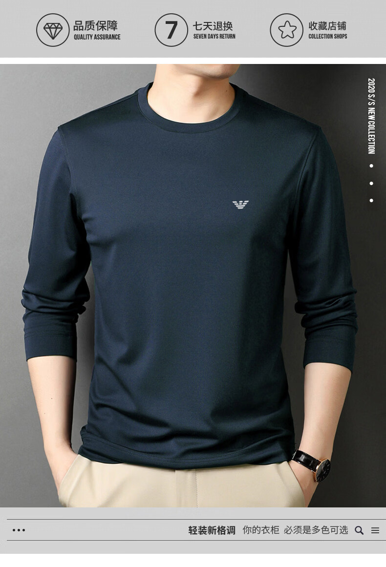 EA7 Armani solid color mulberry silk long-sleeved T-shirt men's round neck spring and autumn high-end bottoming shirt trendy dark blue M 165 recommended 95-120 Jin Jin equals 0.5 kg