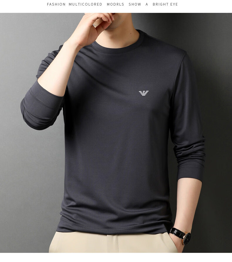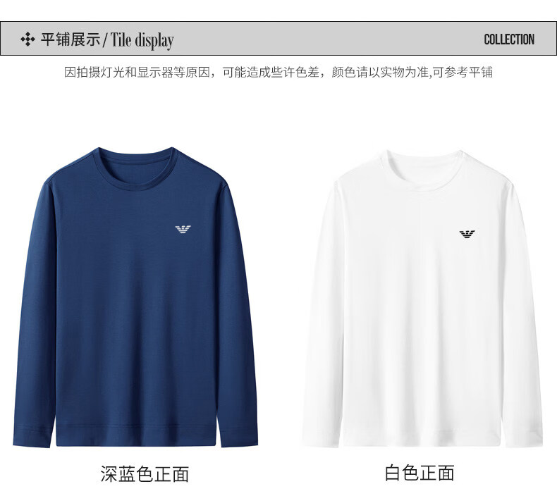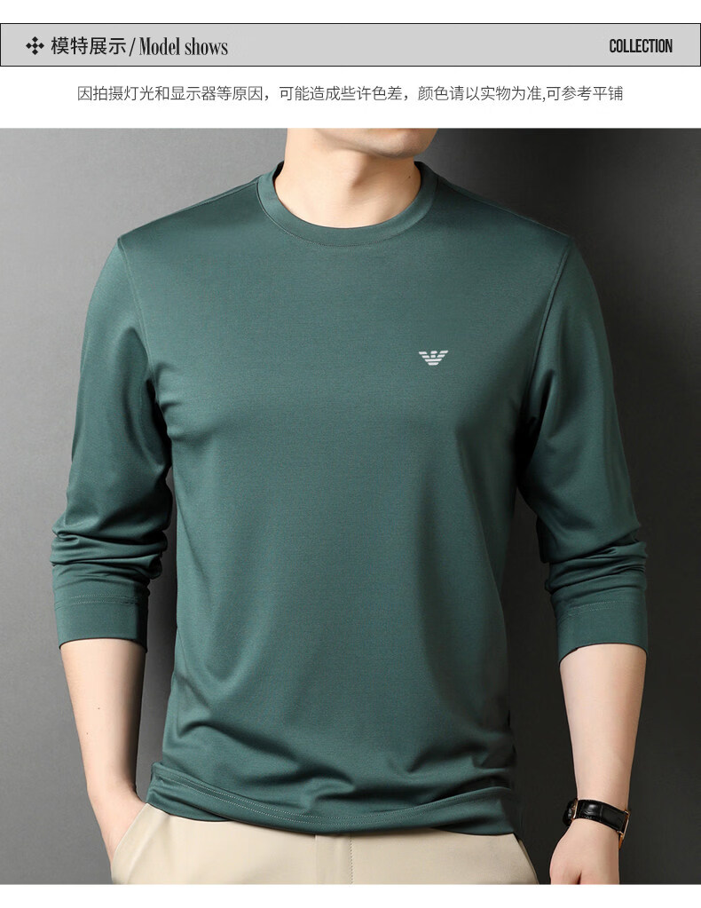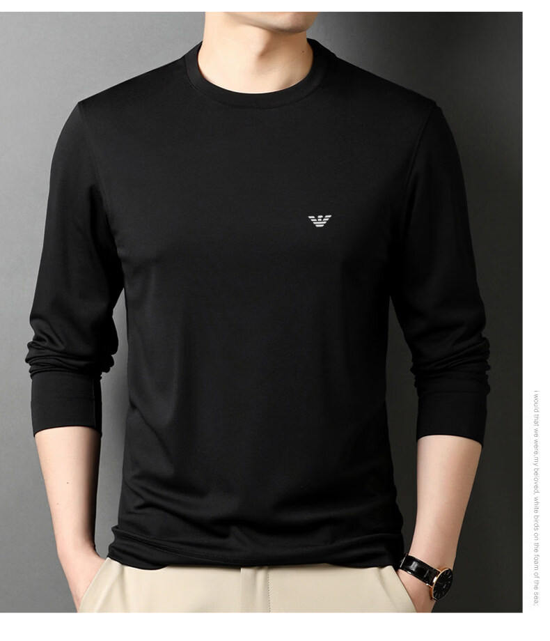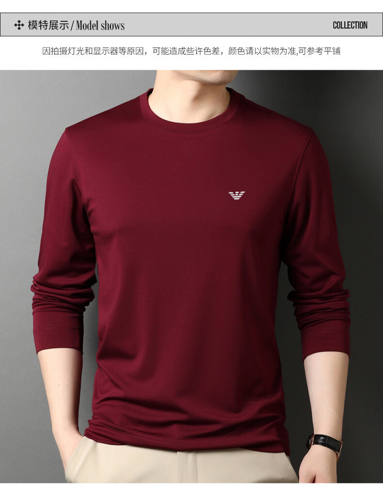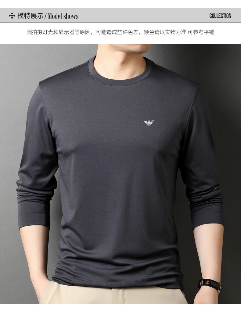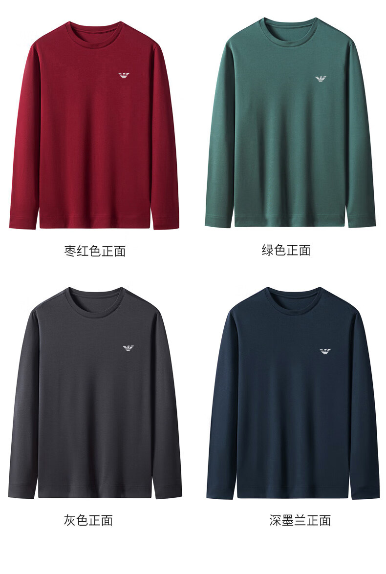EA7 Armani solid color mulberry silk long-sleeved T-shirt men's round neck spring and autumn high-end bottoming shirt trendy dark blue M 165 recommended 95-120 Jin Jin equals 0.5 kg