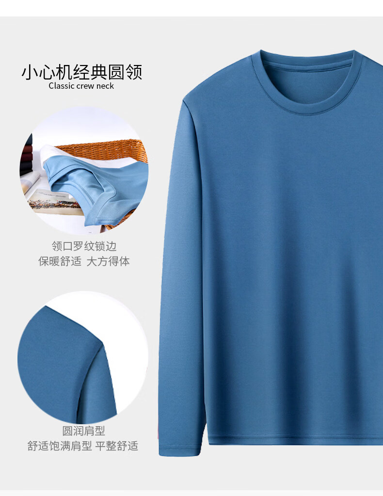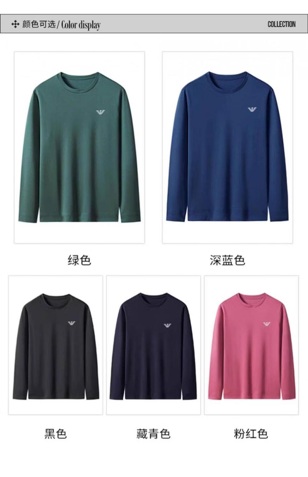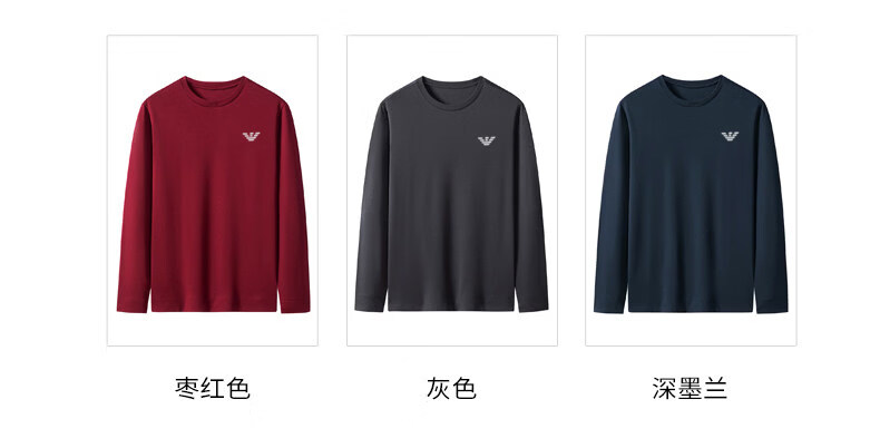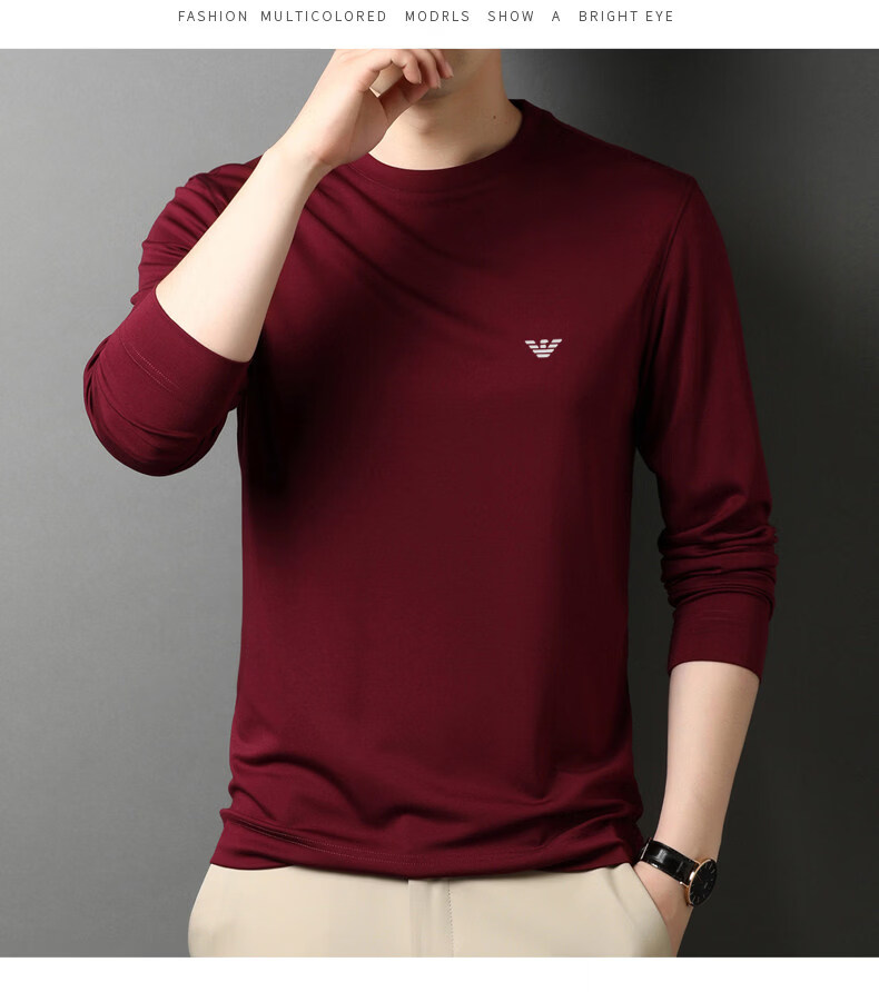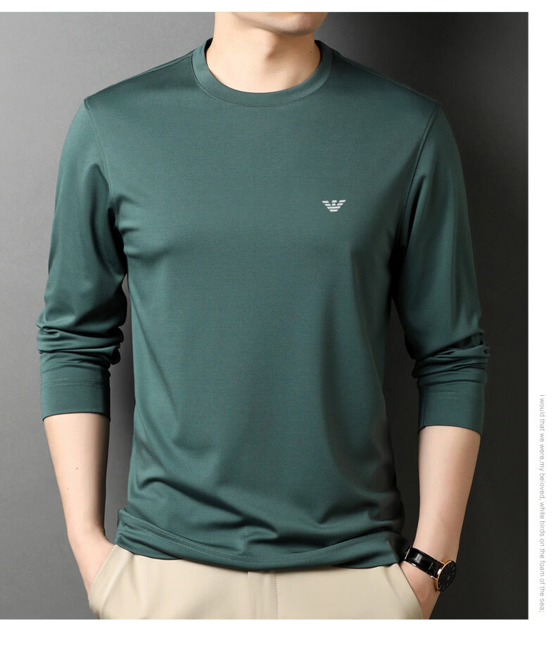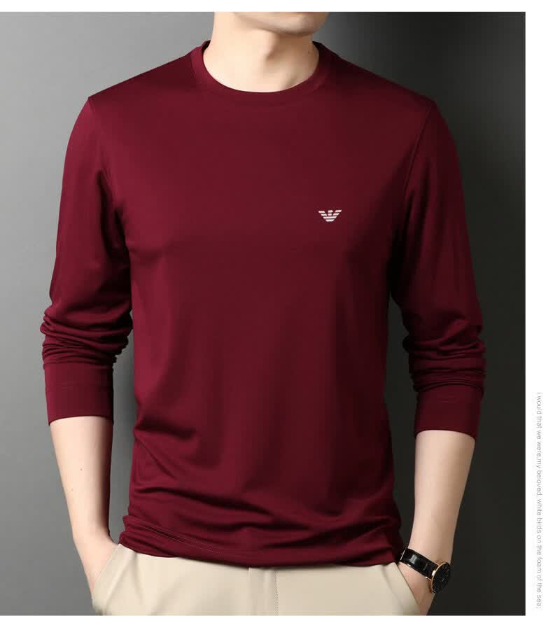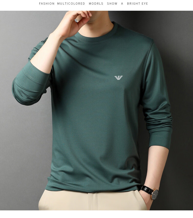 EA7 Armani solid color mulberry silk long-sleeved T-shirt men's round neck spring and autumn high-end bottoming shirt trendy dark blue M 165 recommended 95-120 Jin Jin equals 0.5 kg