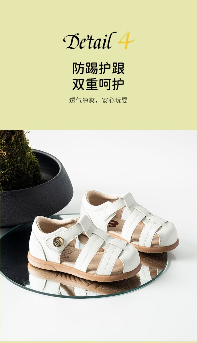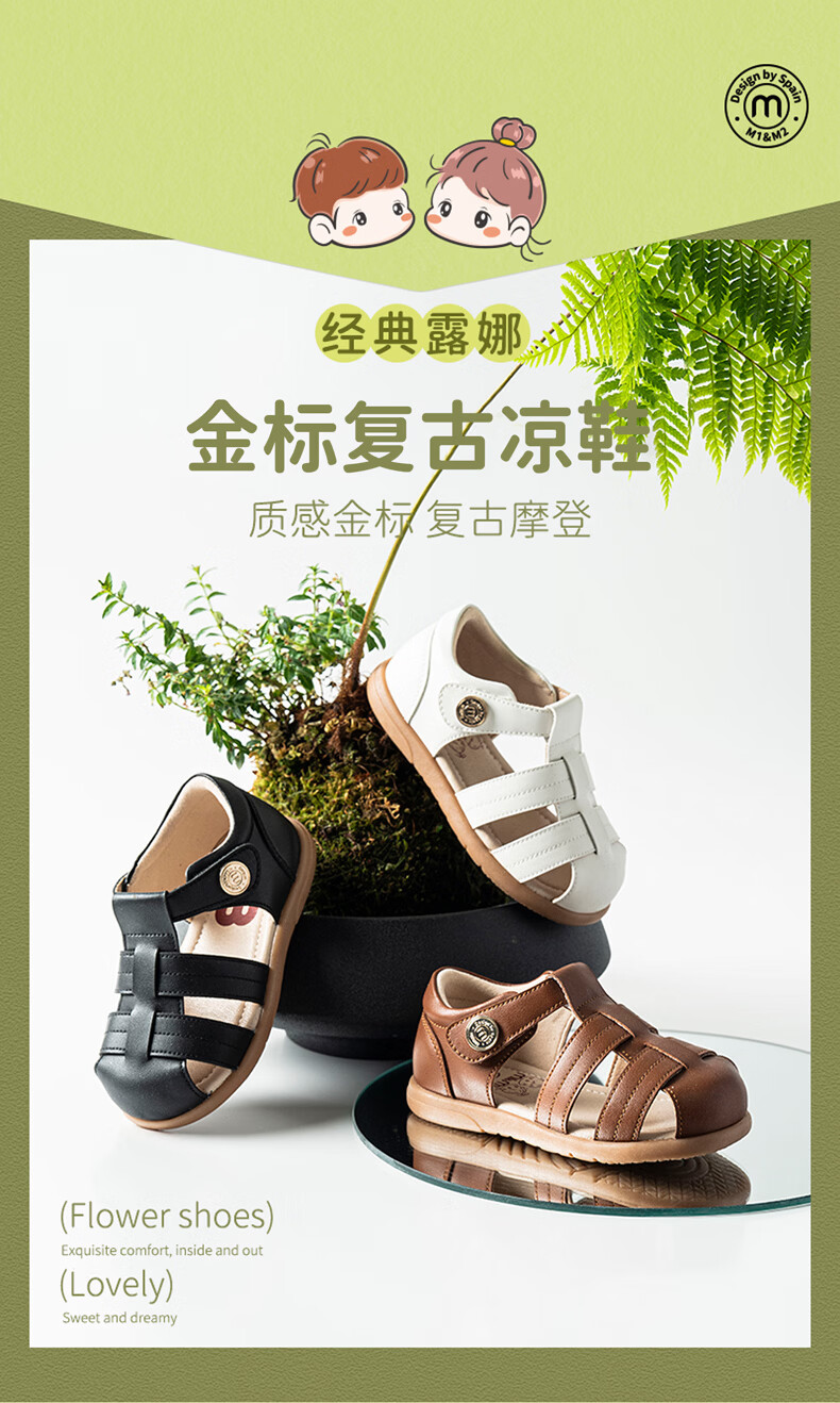 M1&M2 Spanish children's shoes, children's retro sandals, spring and summer new boys and girls Velcro soft-soled beach shoes, white, size 27, suitable for feet 16~16.5cm long