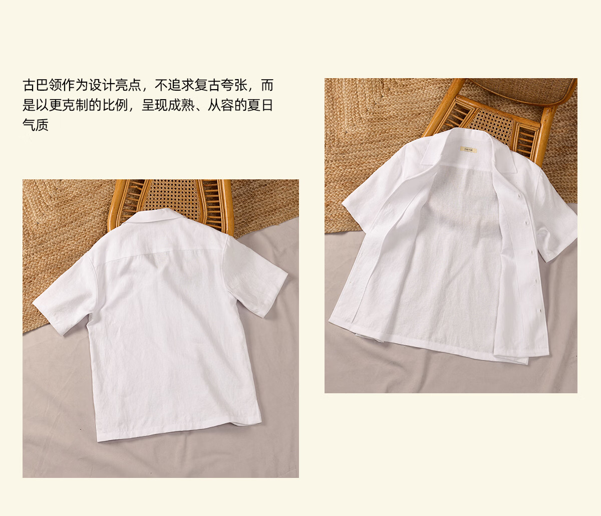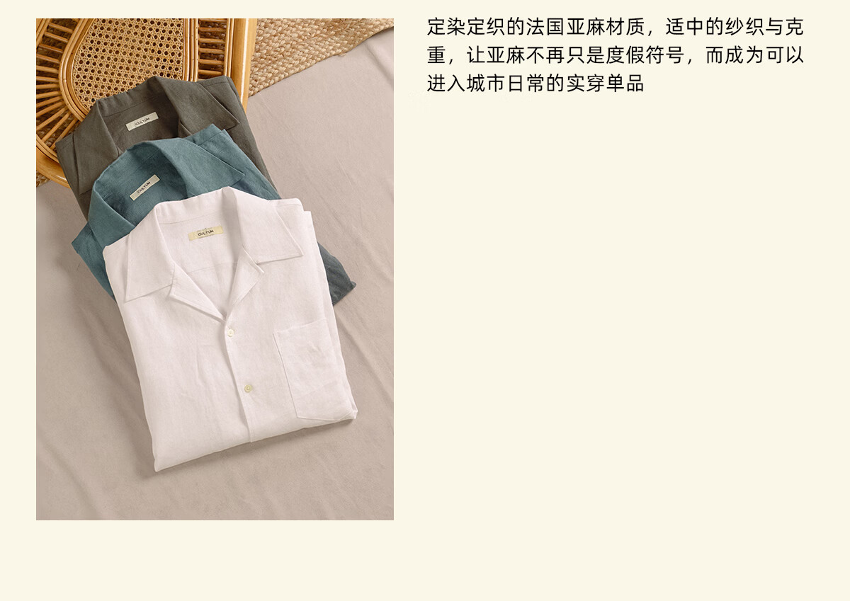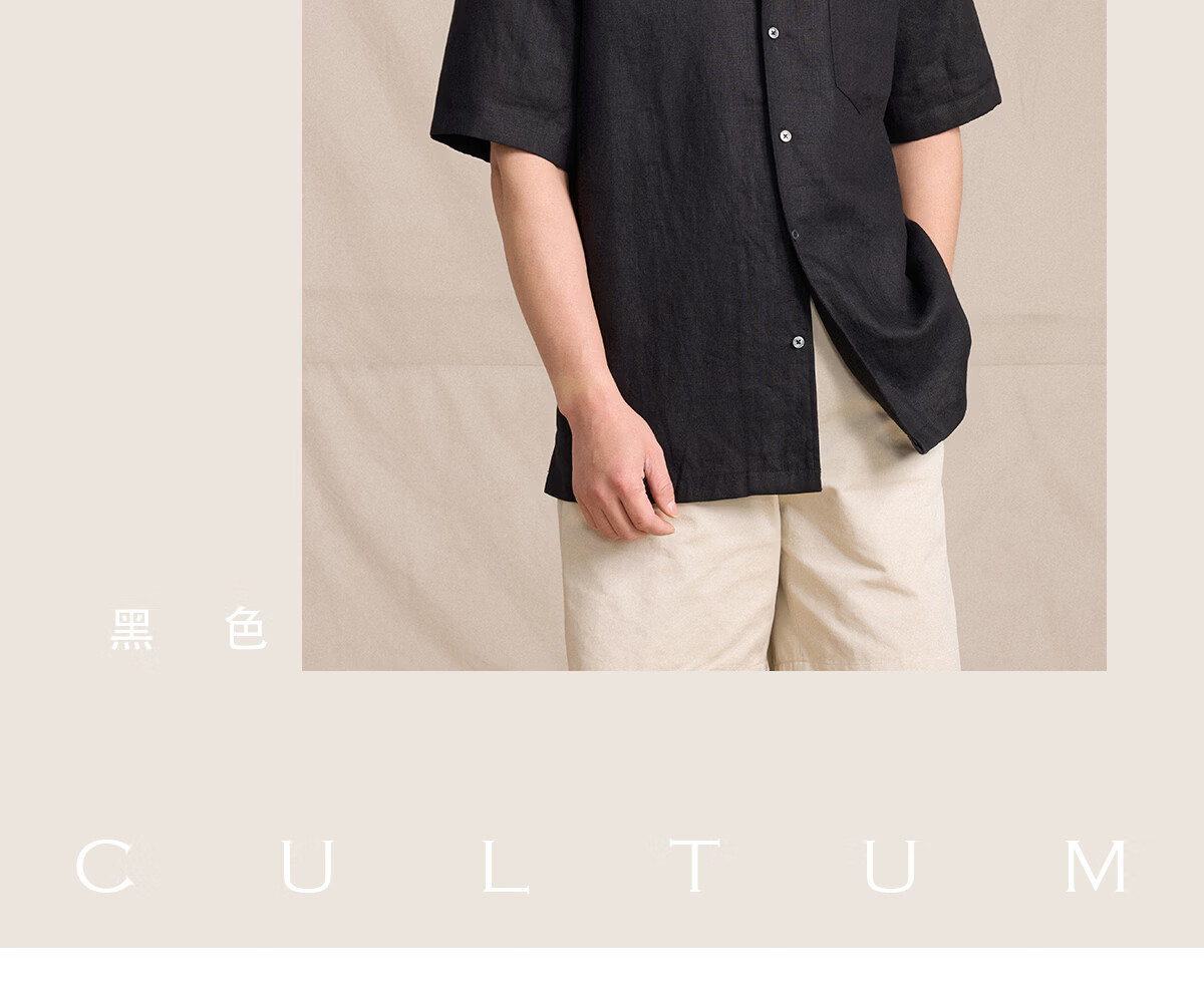 CULTUM machine washable French 100% linen spring and summer Italian old money style Cuban collar short-sleeved shirt for men black M
