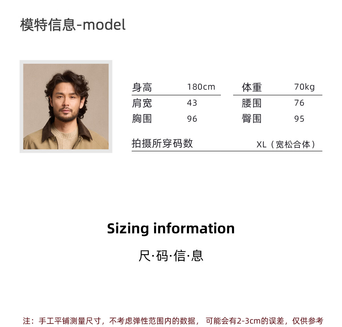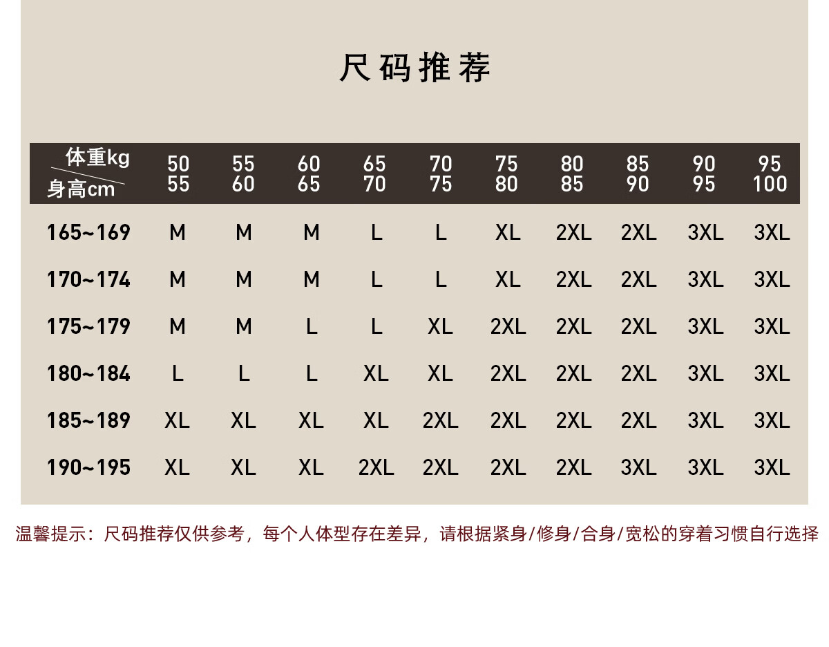 China (cm) 165 / 88-90 170 / 96-98 175 / 108-110 180 / 118-122 185 / 126-130