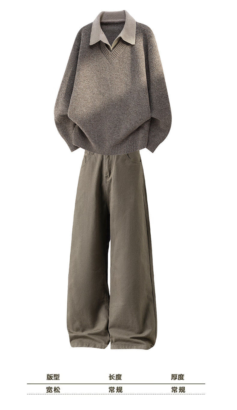 Pure (YISHion) American style lazy style sweatshirt suit for men spring and autumn new light luxury loose trousers two-piece set taupe + khaki green official M 100-130Jin Jin equals 0.5 kg
