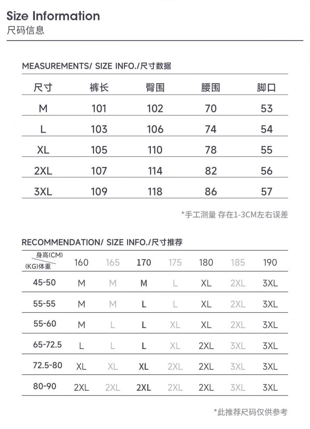Outseam (cm) 99 cm 101.5 cm 104 cm 106.5 cm 109 cm