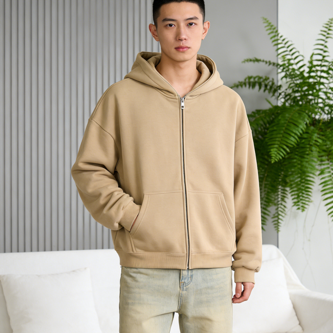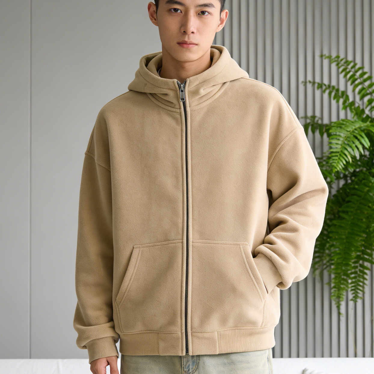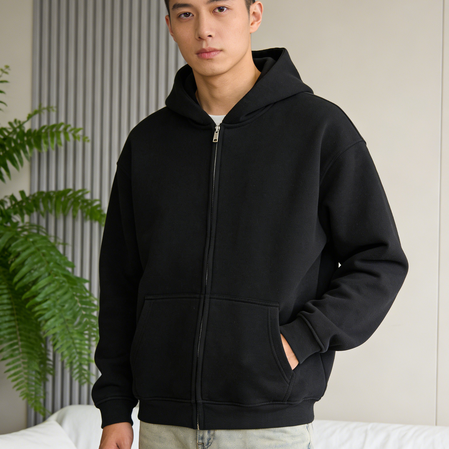 JEEP SPIRIT hooded sweatshirt men's 2026 spring zipper cardigan loose versatile jacket men's tops black M
