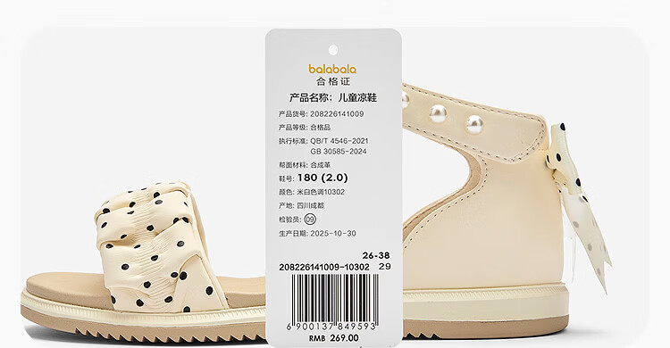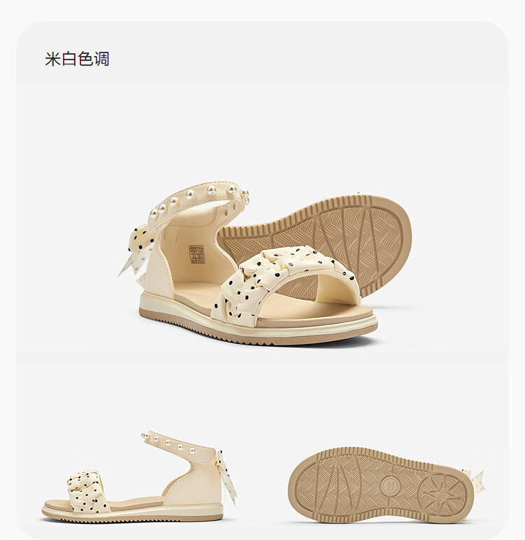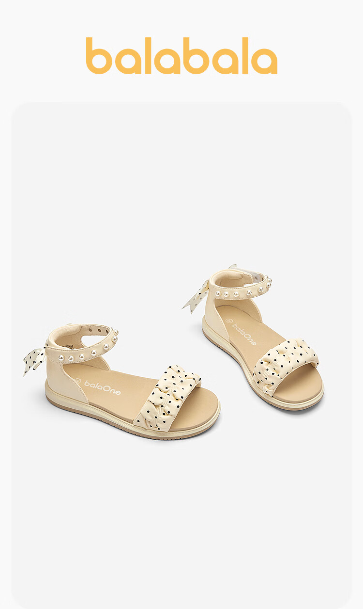 BalaOne children's shoes children's sandals girls 2026 summer new pearl polka dot casual shoes off-white tone 10302 26 (foot length 15.8-16.2/inner length 16.9)