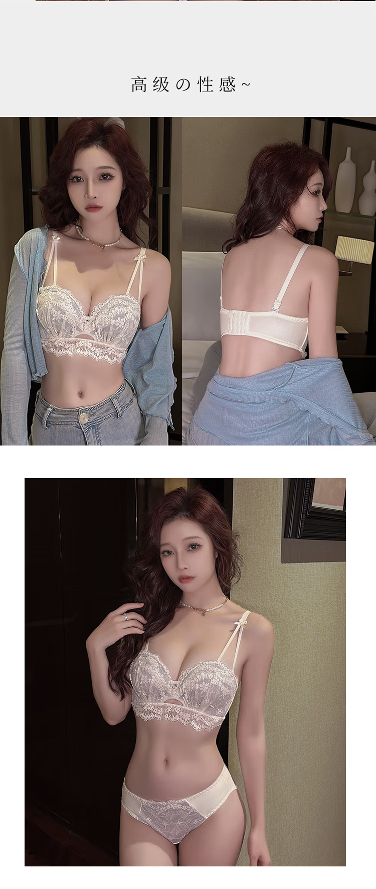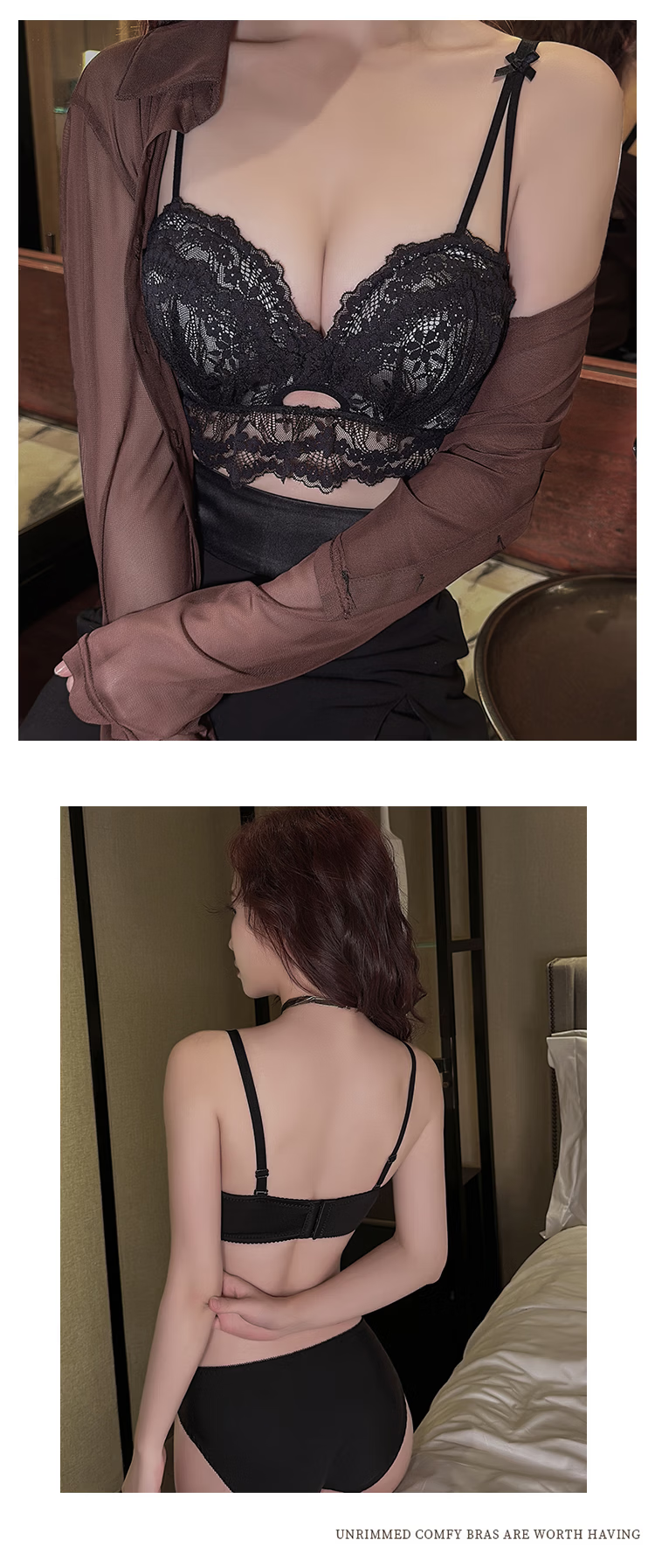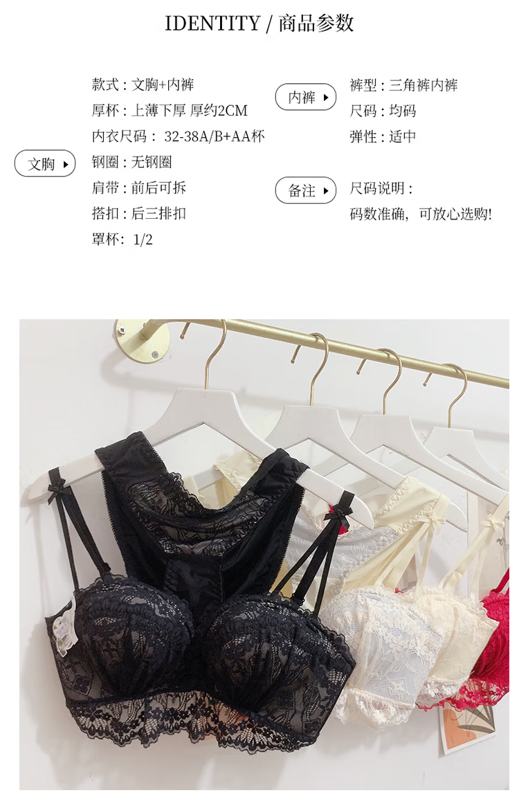 Victoria's Secret Victoria's Secret Underwear Women's Lace Bra Set Beautiful Back Small Breast Push Up Adjustable Thin Black Set 70A x 32=B