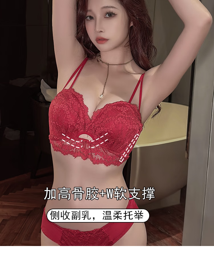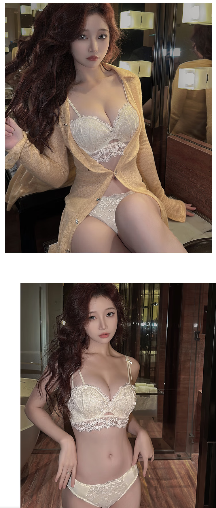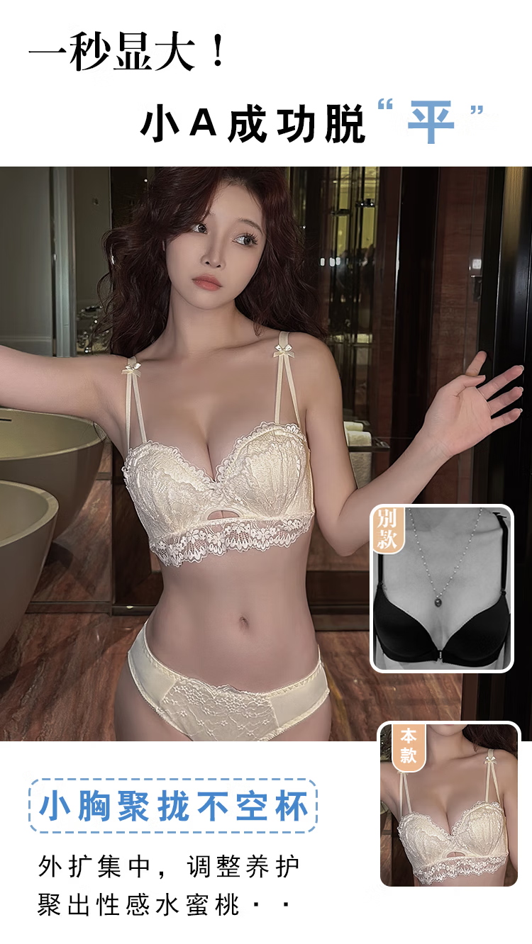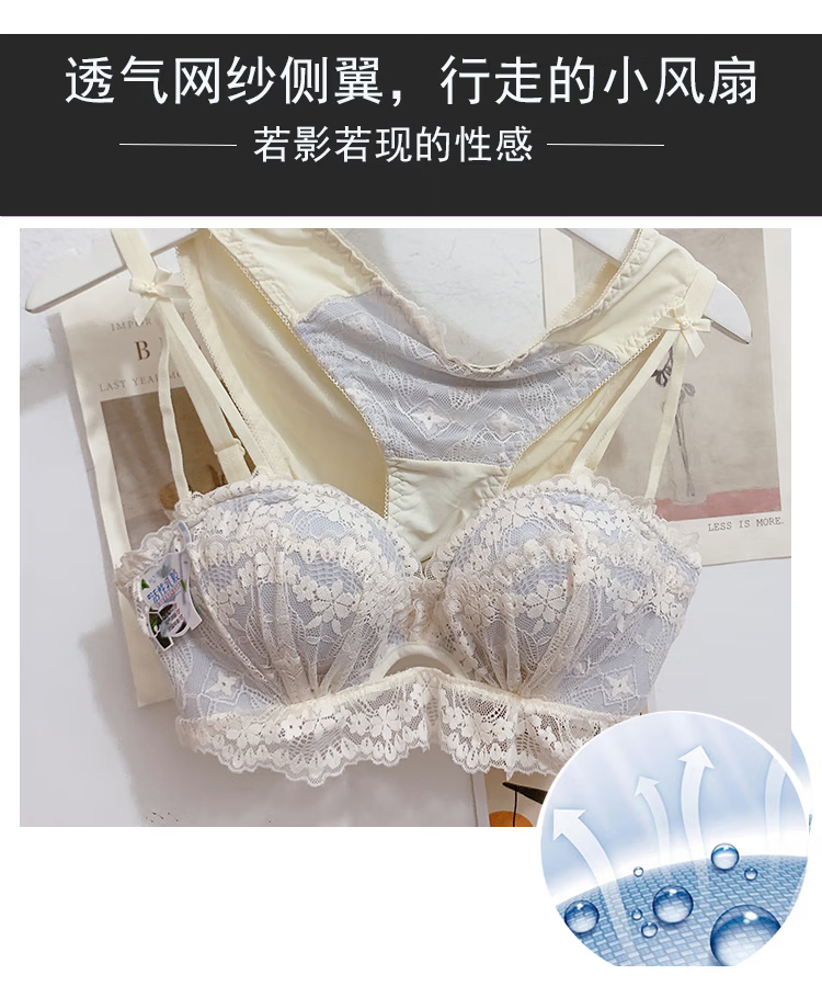 Victoria's Secret Victoria's Secret Underwear Women's Lace Bra Set Beautiful Back Small Breast Push Up Adjustable Thin Black Set 70A x 32=B