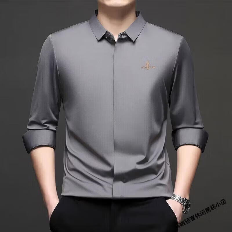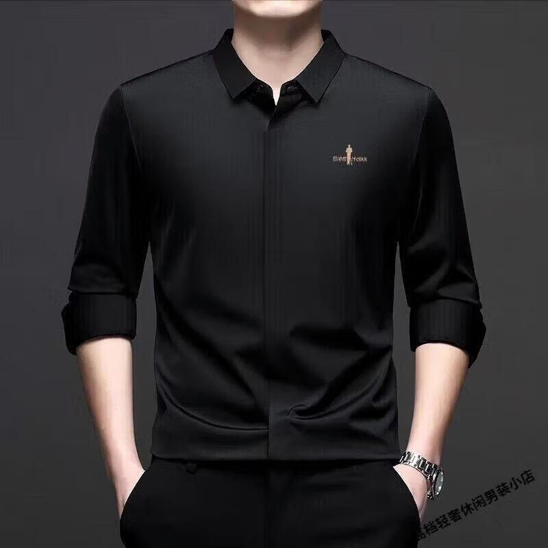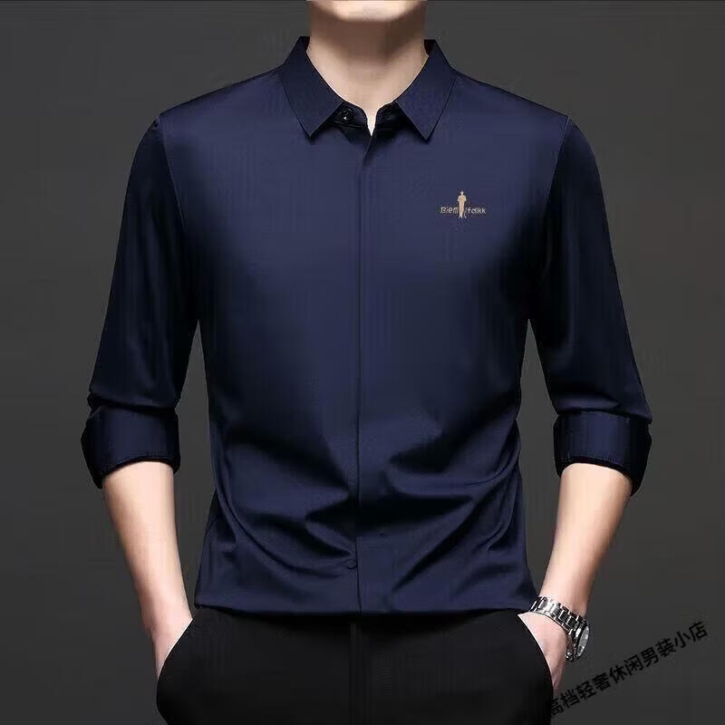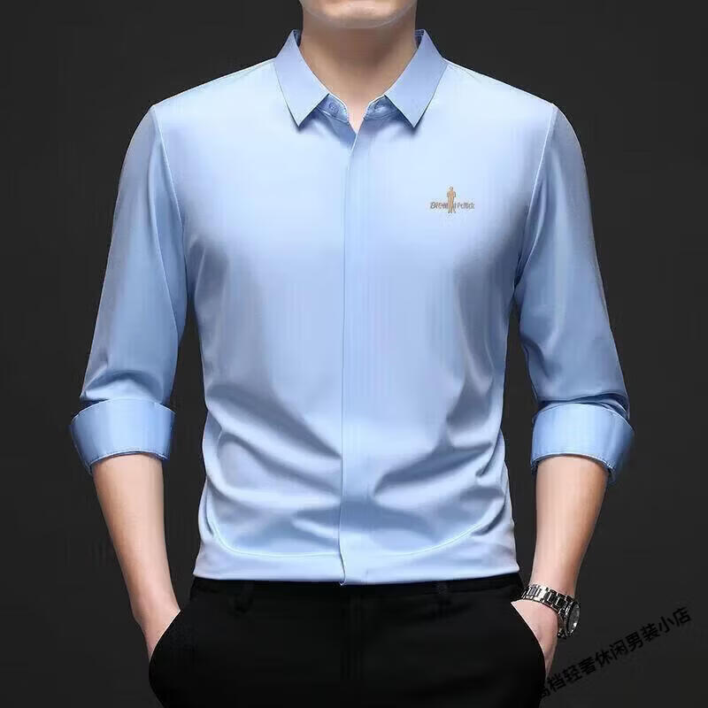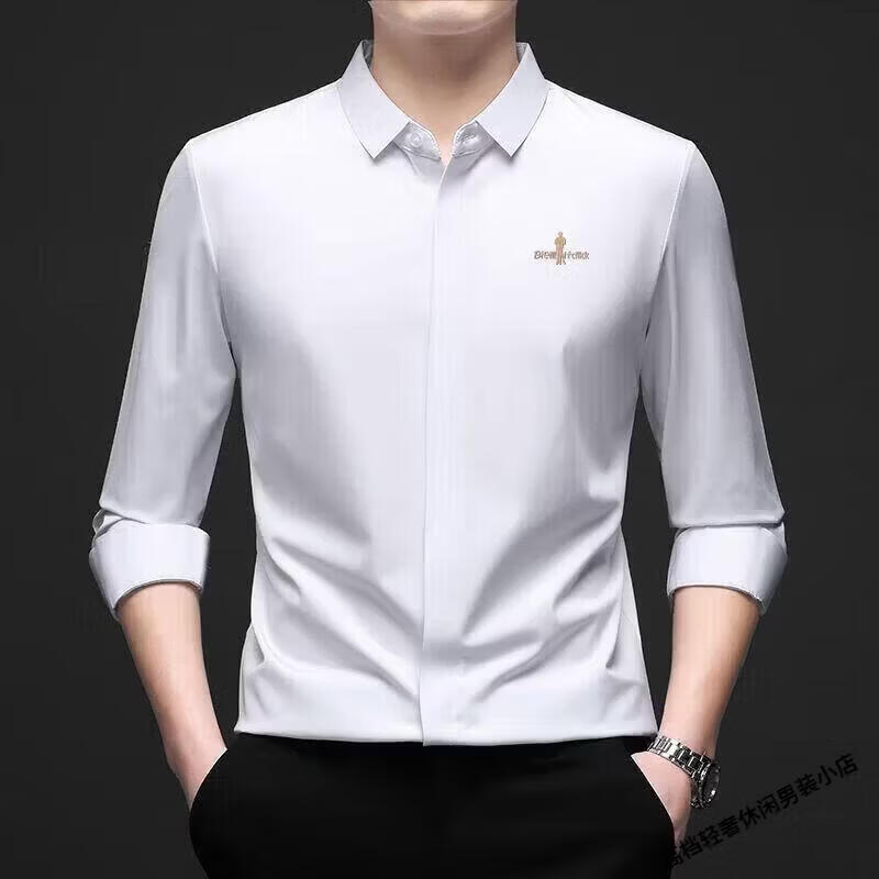 Biyinlefen high-end men's clothing spring and autumn long-sleeved shirt men's casual anti-wrinkle silkworm seamless shirt skin soft top flagship official white M
