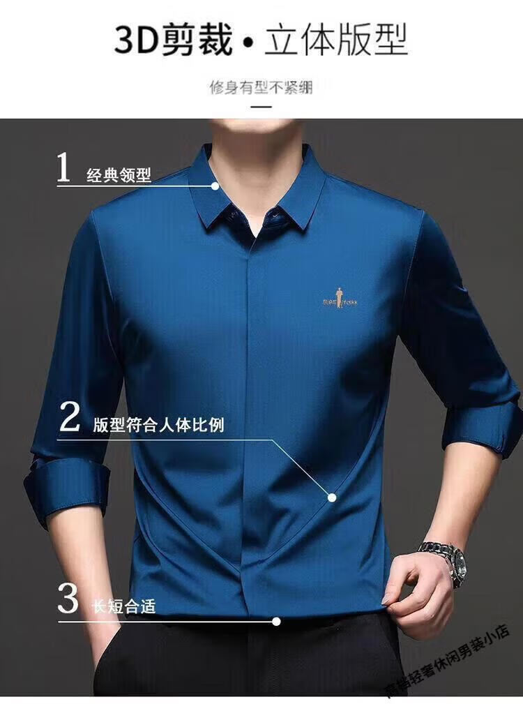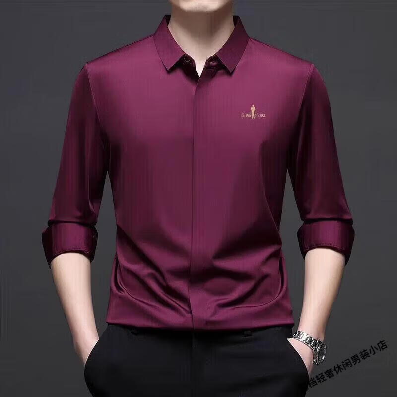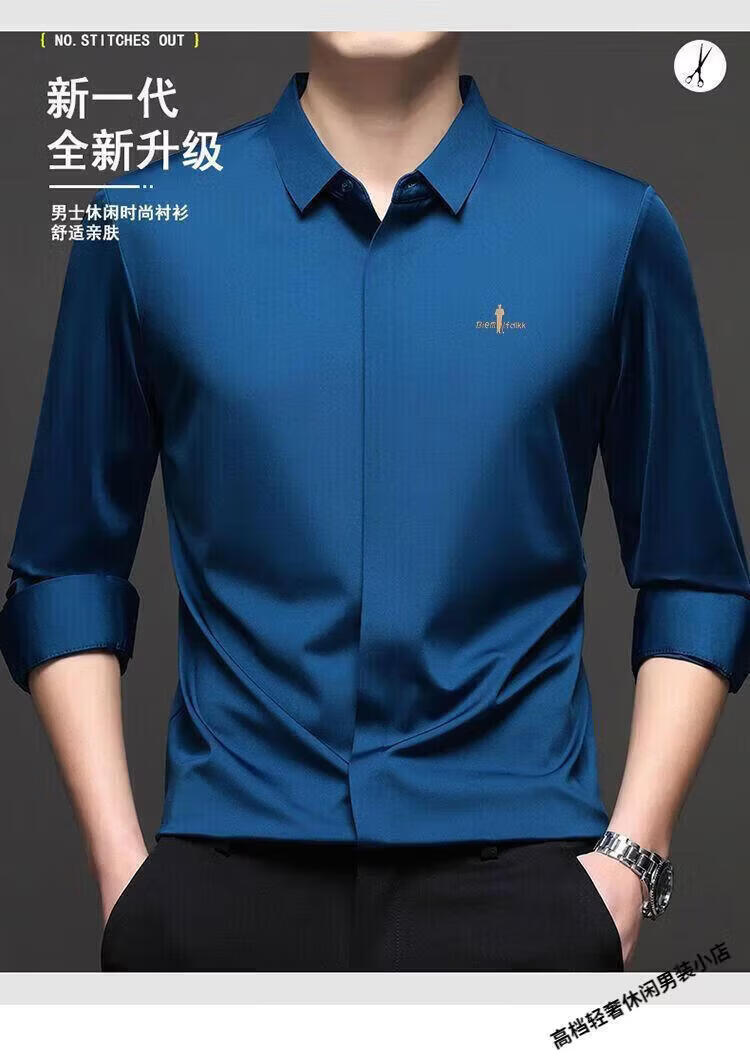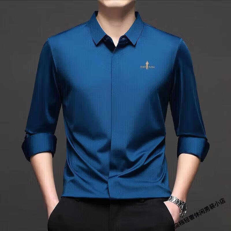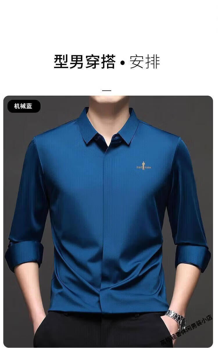 Biyinlefen high-end men's clothing spring and autumn long-sleeved shirt men's casual anti-wrinkle silkworm seamless shirt skin soft top flagship official white M