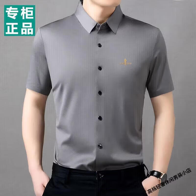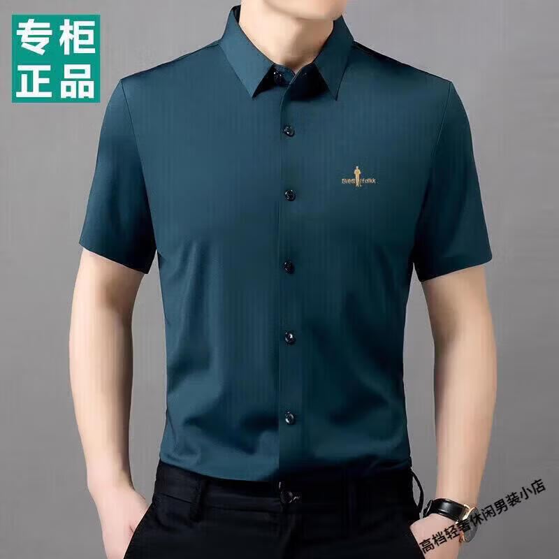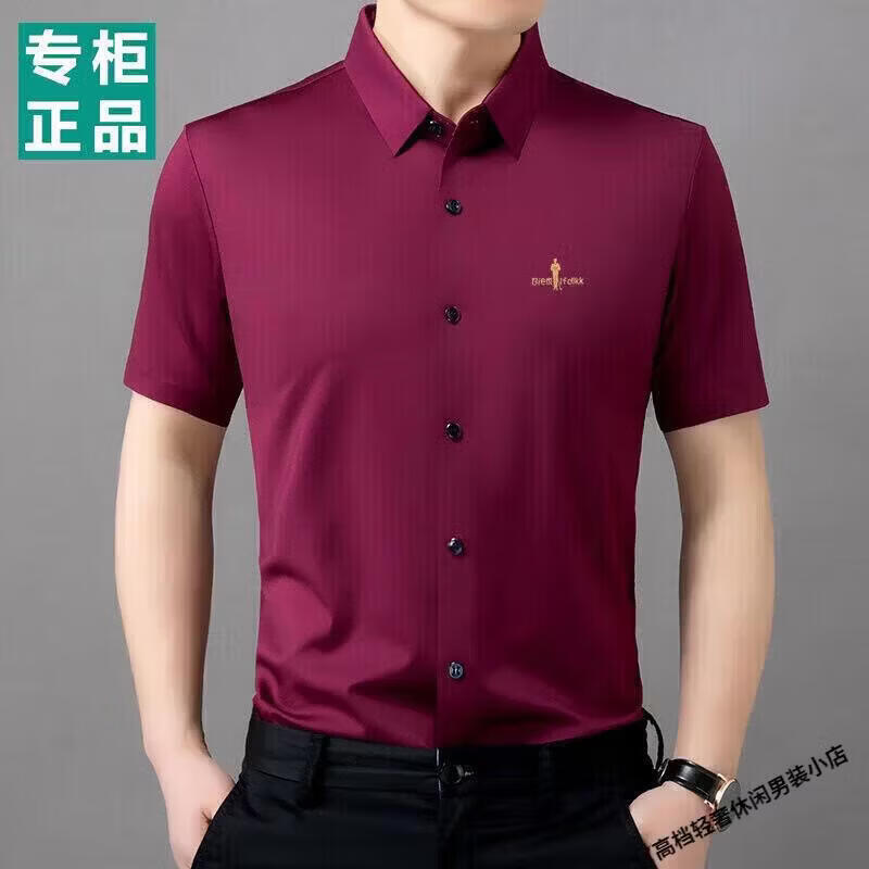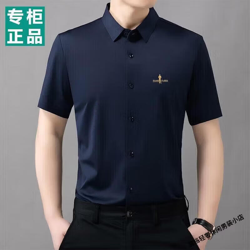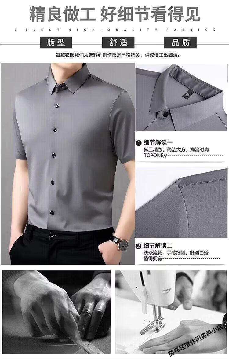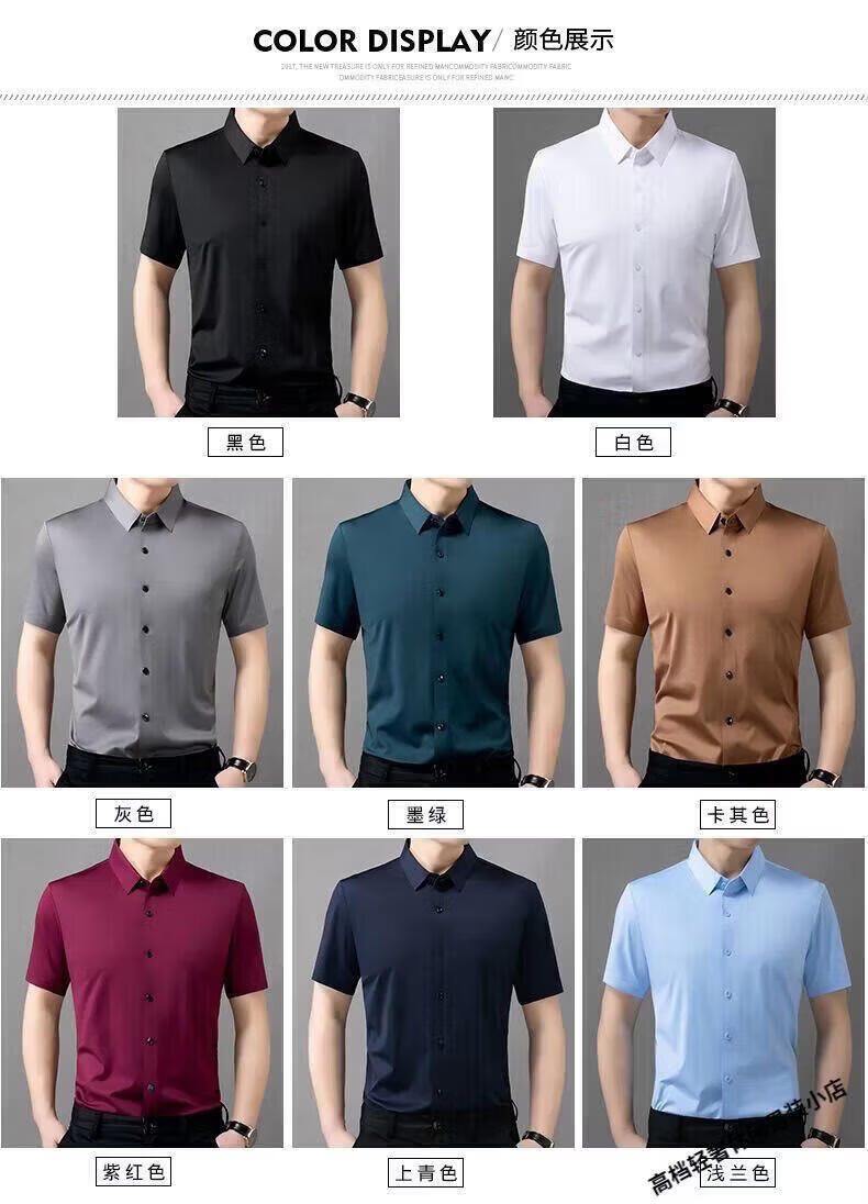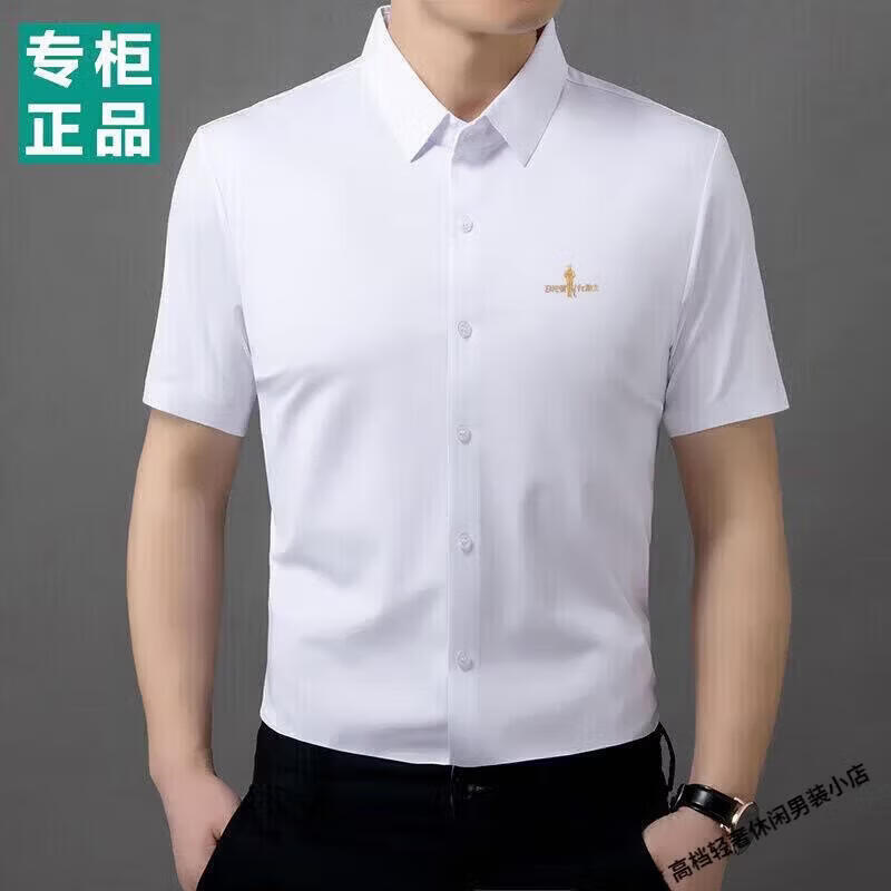 Biyinlefen official brand short-sleeved shirt men's 2025 summer new solid color business casual top no-iron half-sleeved shirt flagship official white M