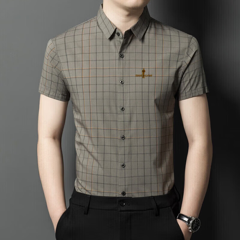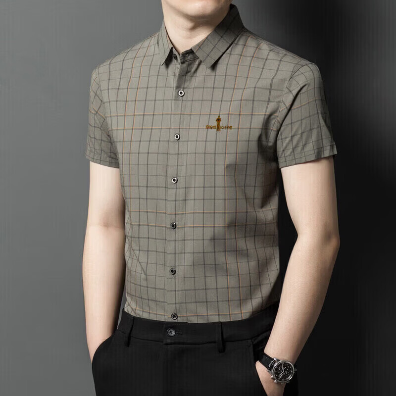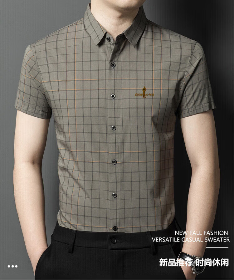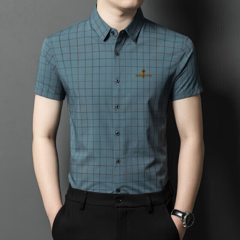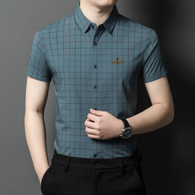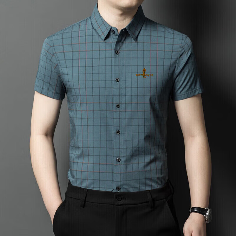 Biyinlefen official ice silk short-sleeved shirt men's summer new anti-wrinkle-free ironing middle-aged business casual shirt brand top flagship official blue M