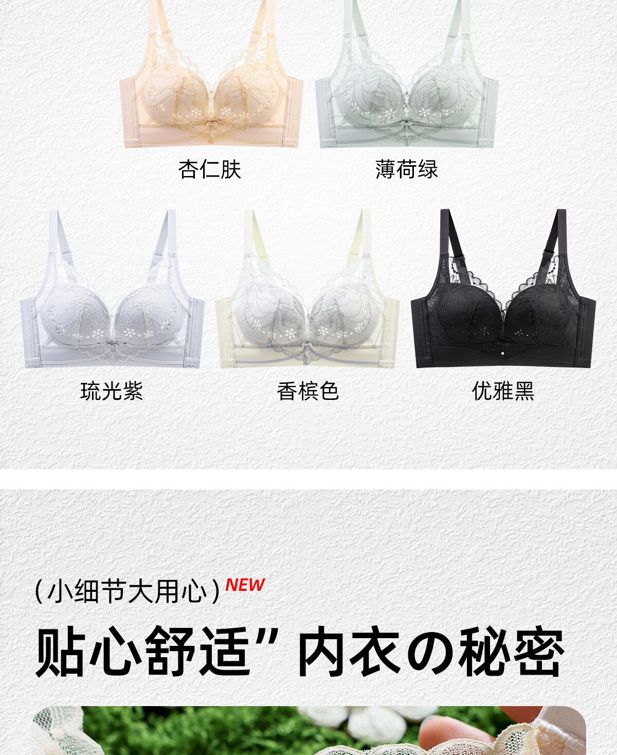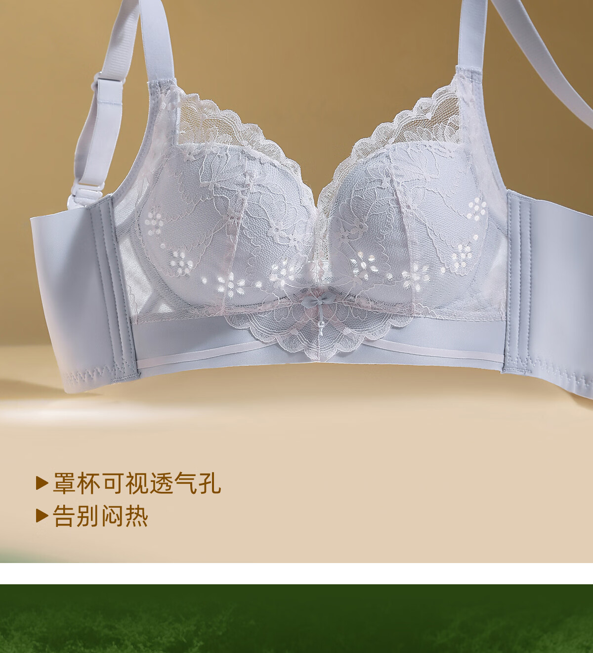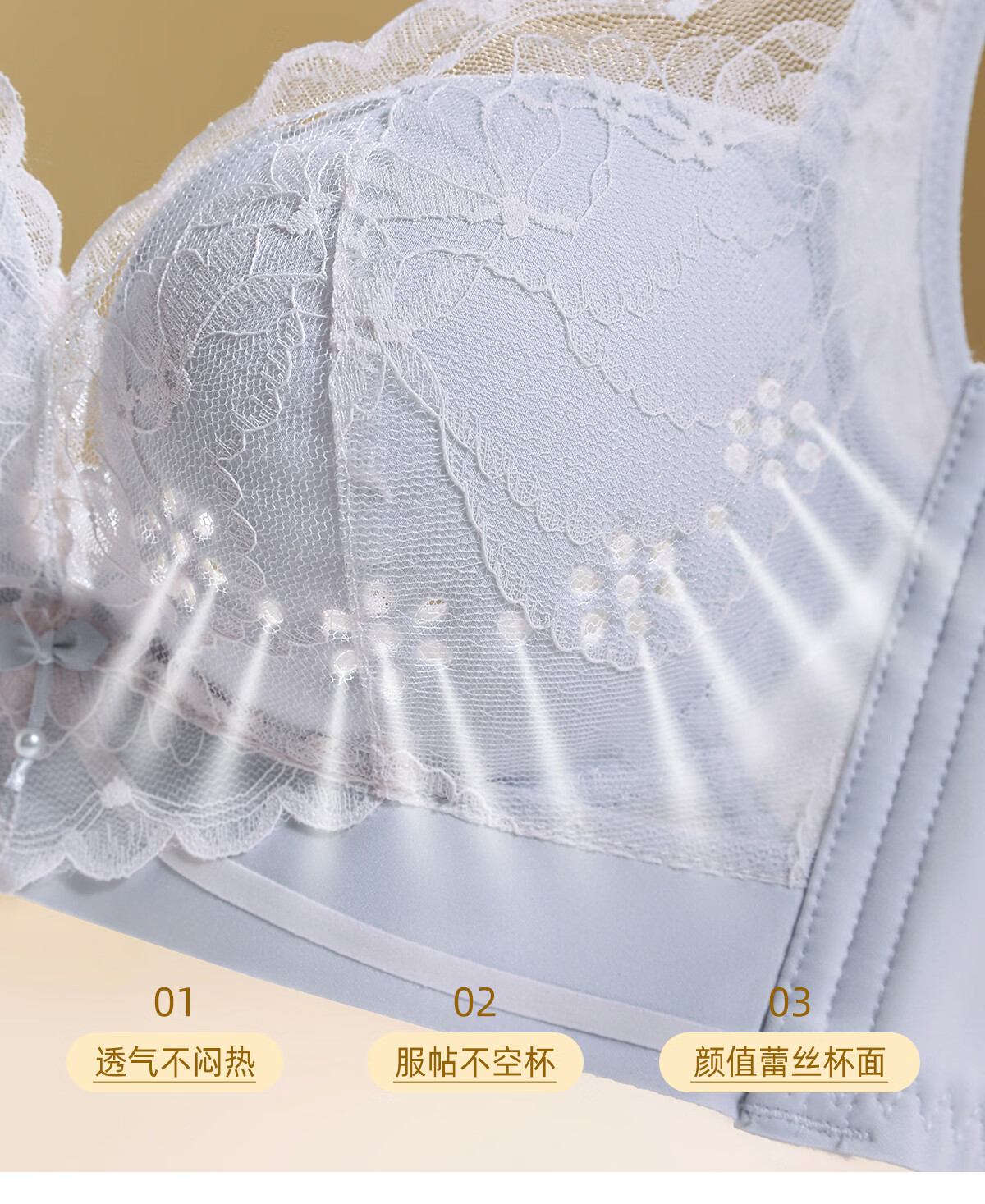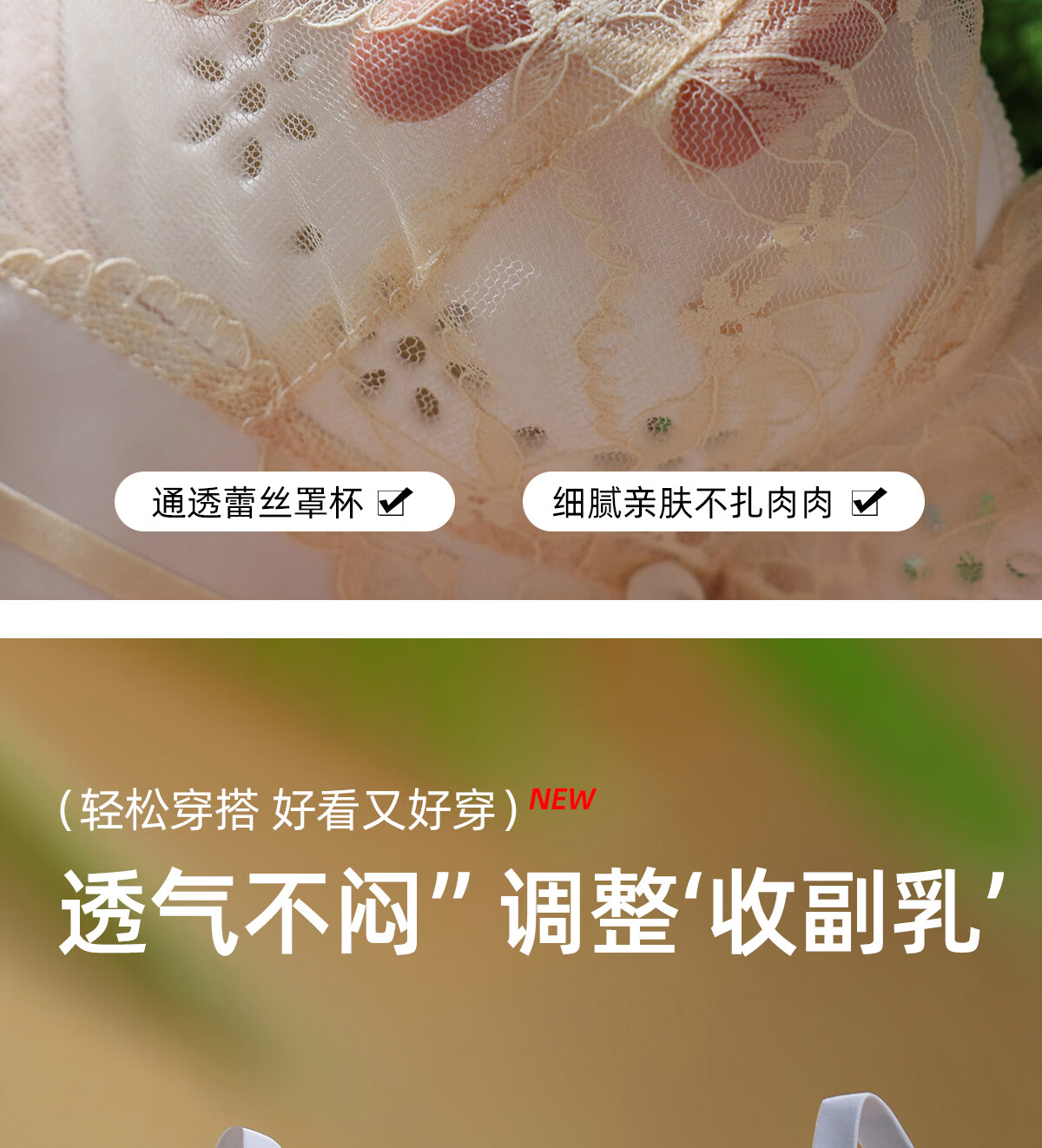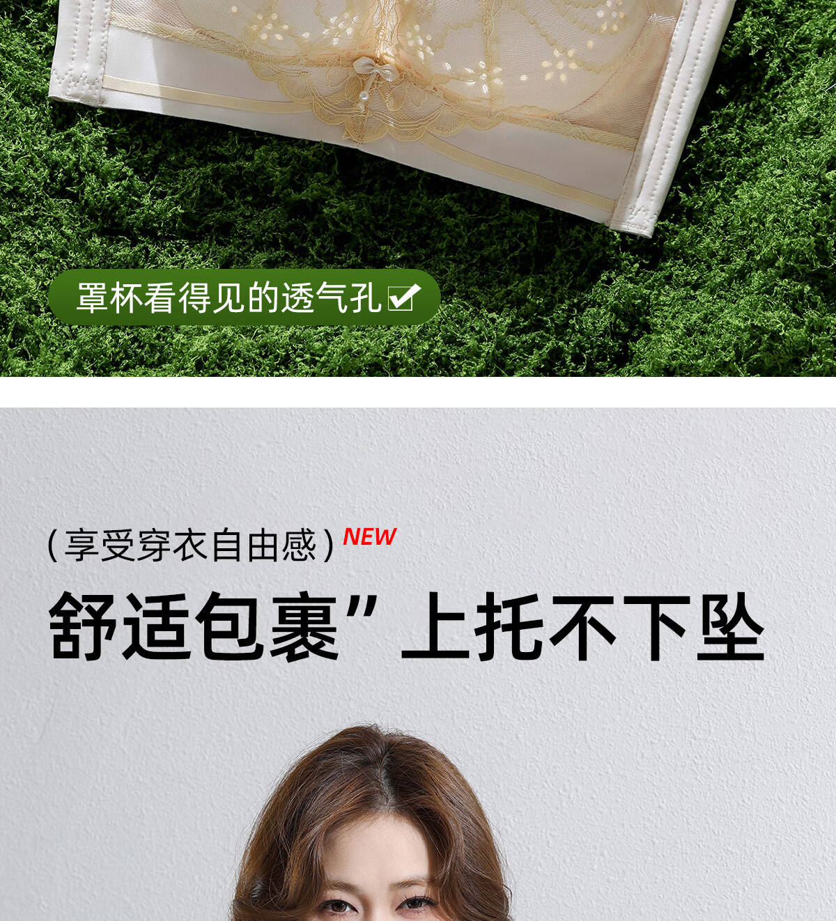 OEING Sexy Lace Underwear Women's Small Breast Gathering Bra Anti-sagging, Secondary Breast Reduction, Anti-exposed Seamless Breathable Bra Champagne M Recommendation (34/75BC cup)