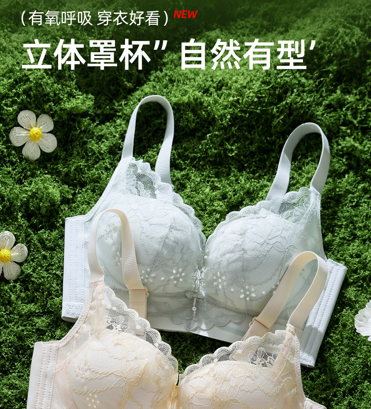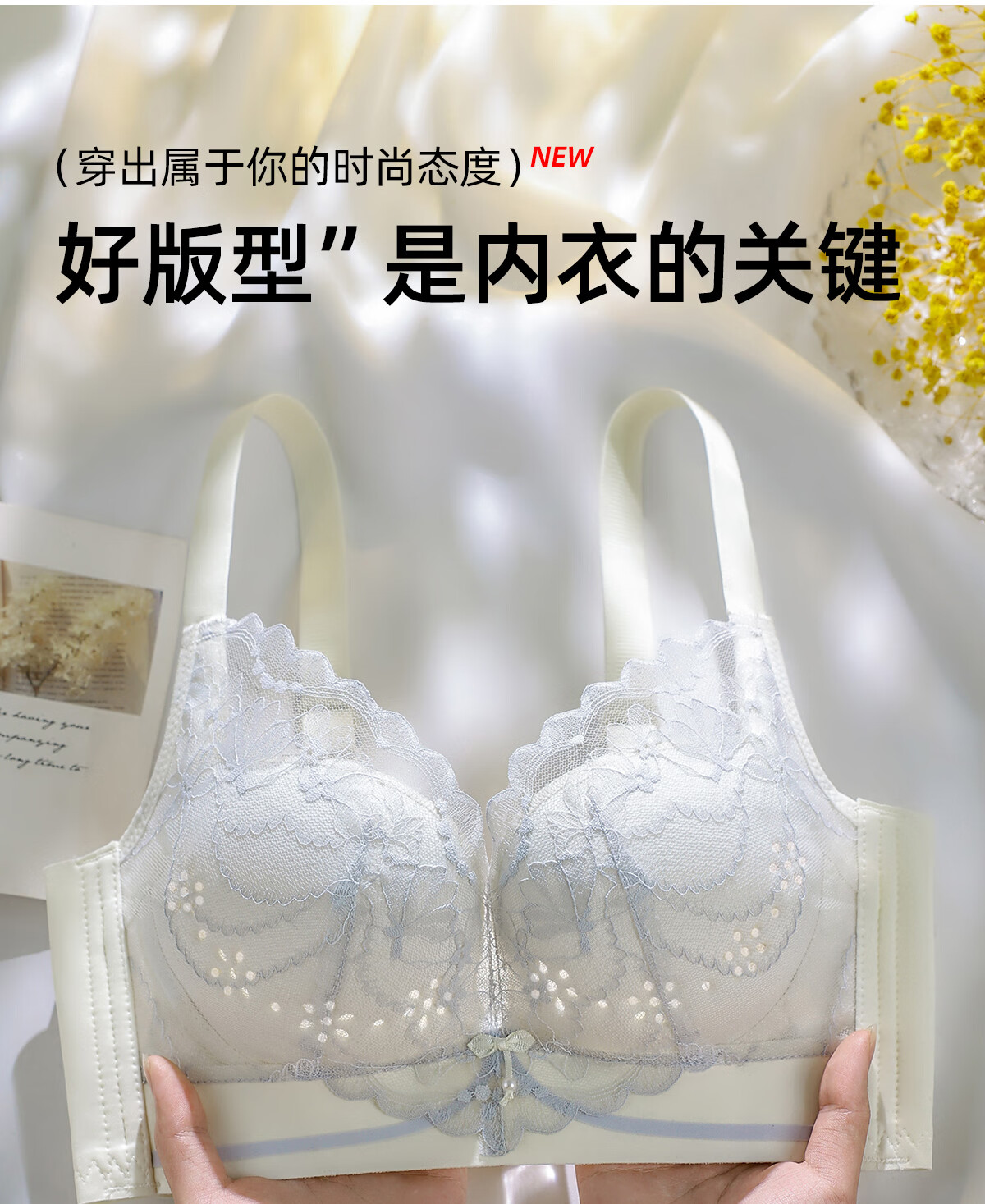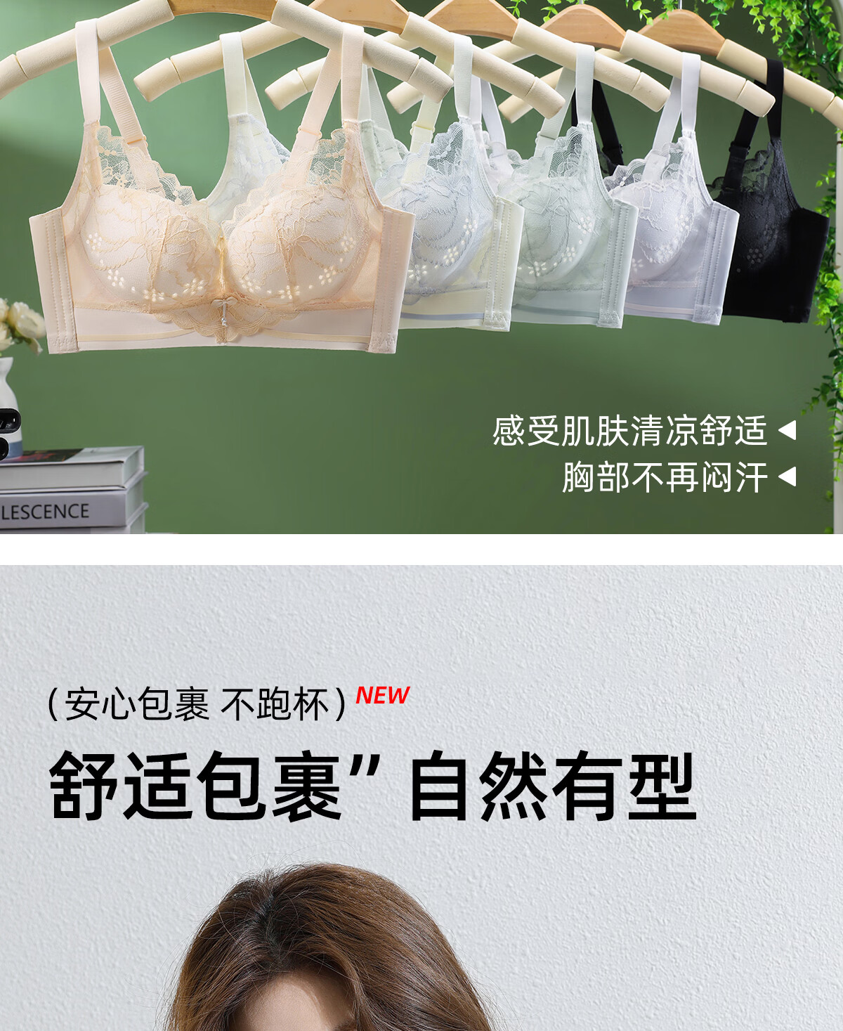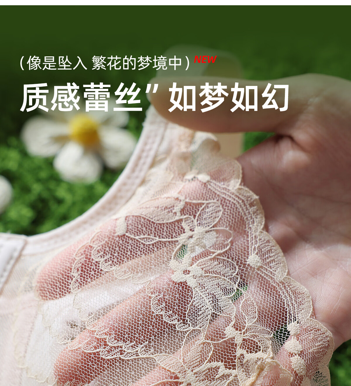 OEING Sexy Lace Underwear Women's Small Breast Gathering Bra Anti-sagging, Secondary Breast Reduction, Anti-exposed Seamless Breathable Bra Champagne M Recommendation (34/75BC cup)