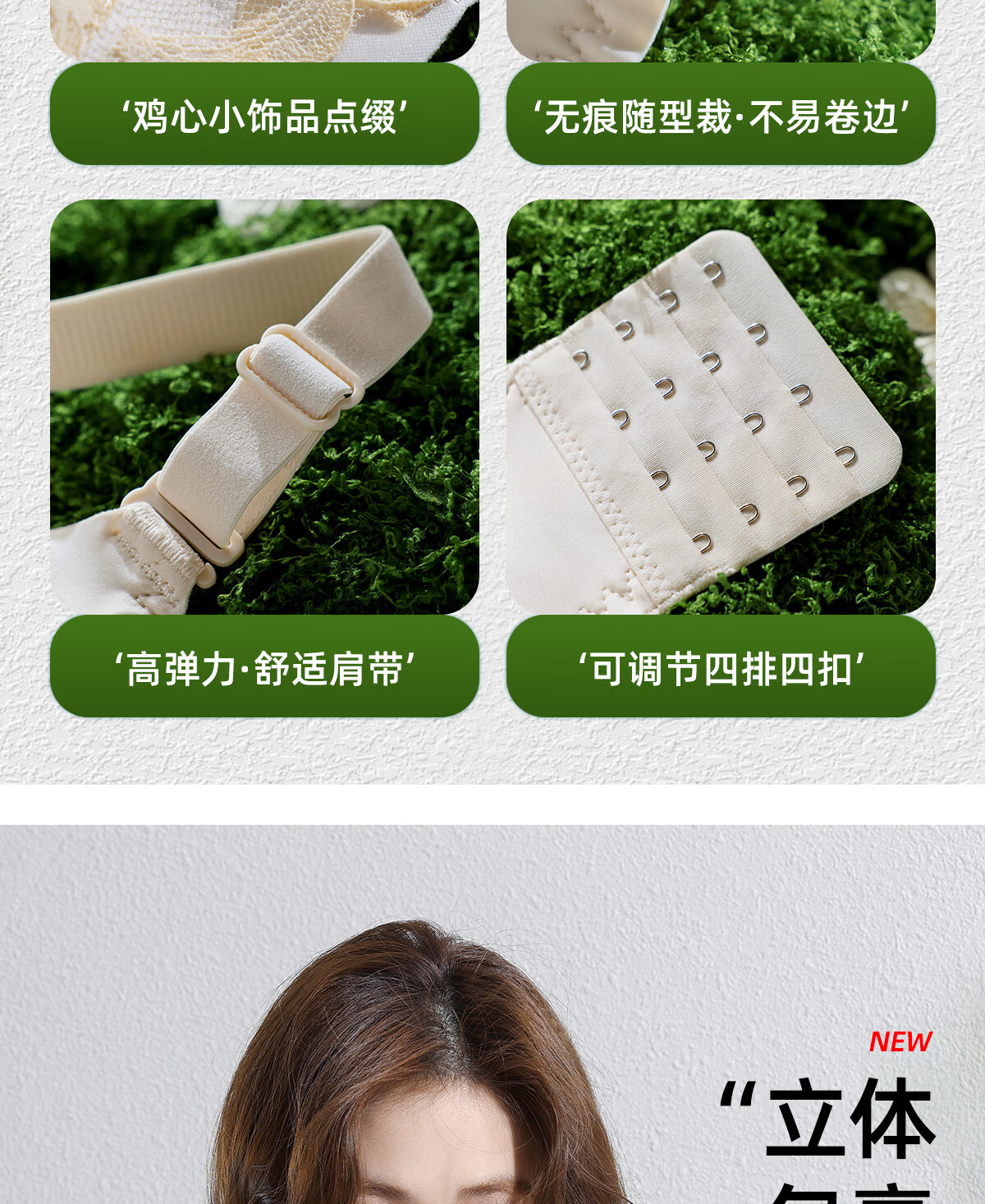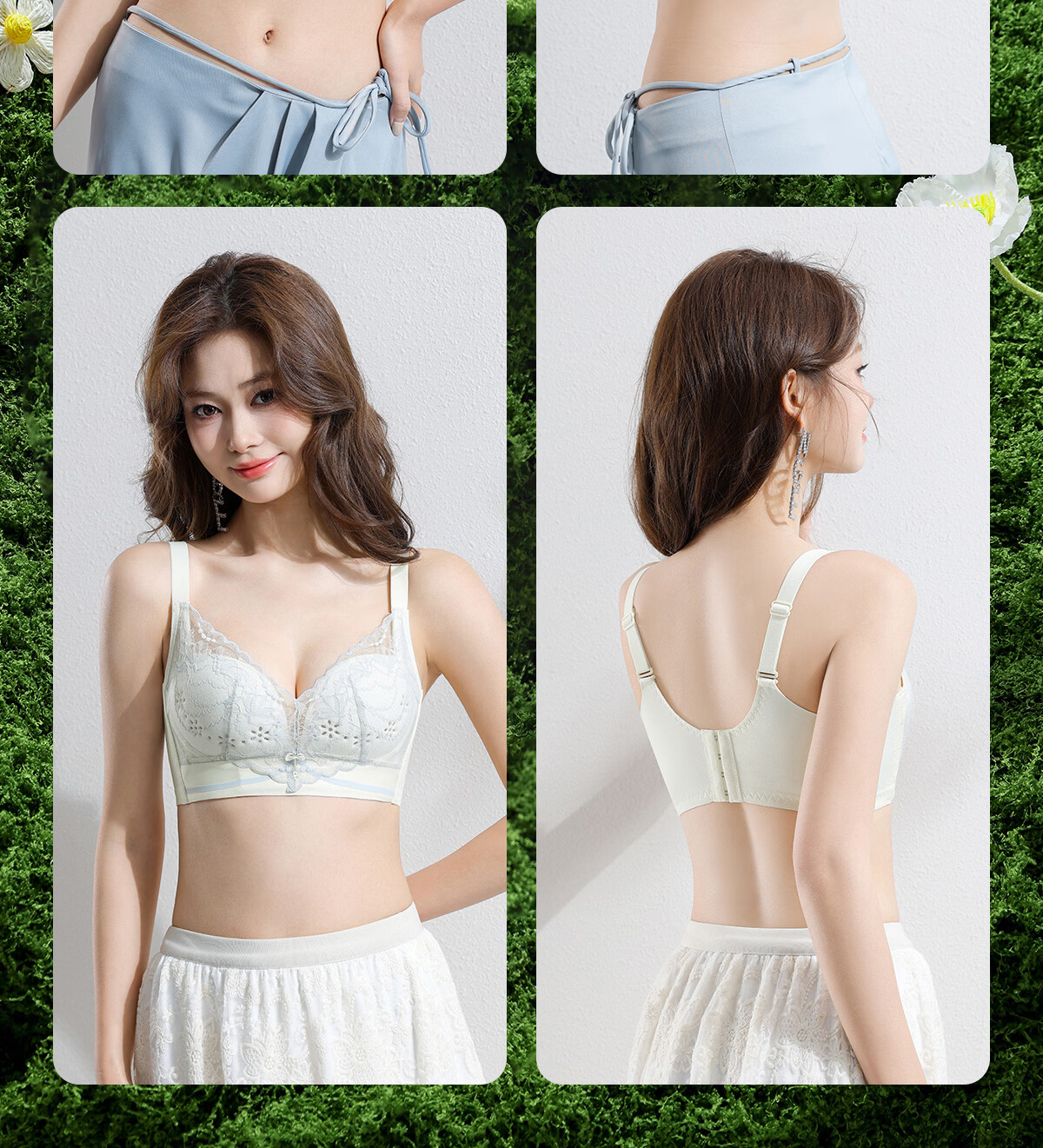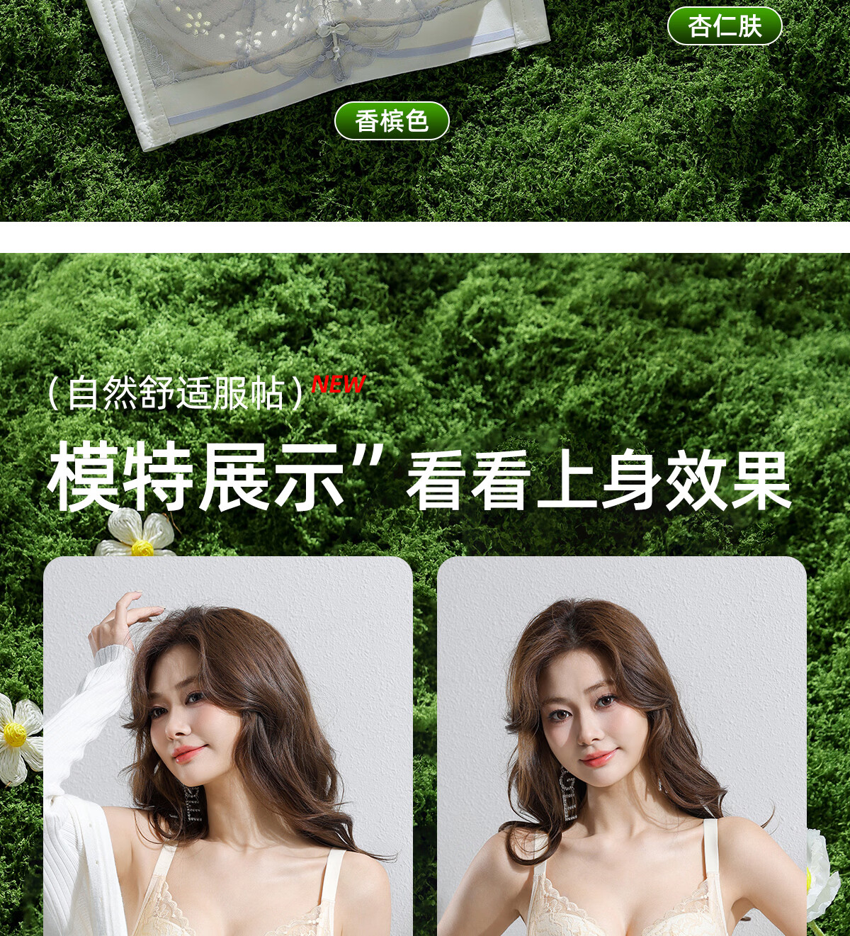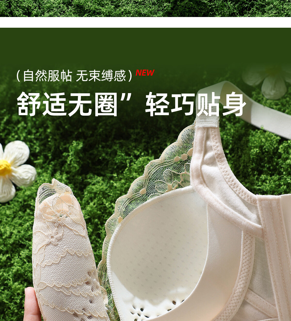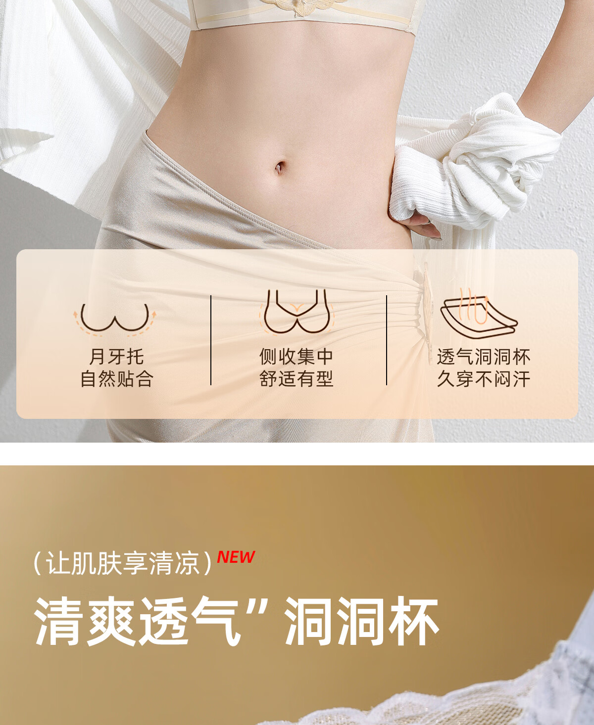OEING Sexy Lace Underwear Women's Small Breast Gathering Bra Anti-sagging, Secondary Breast Reduction, Anti-exposed Seamless Breathable Bra Champagne M Recommendation (34/75BC cup)