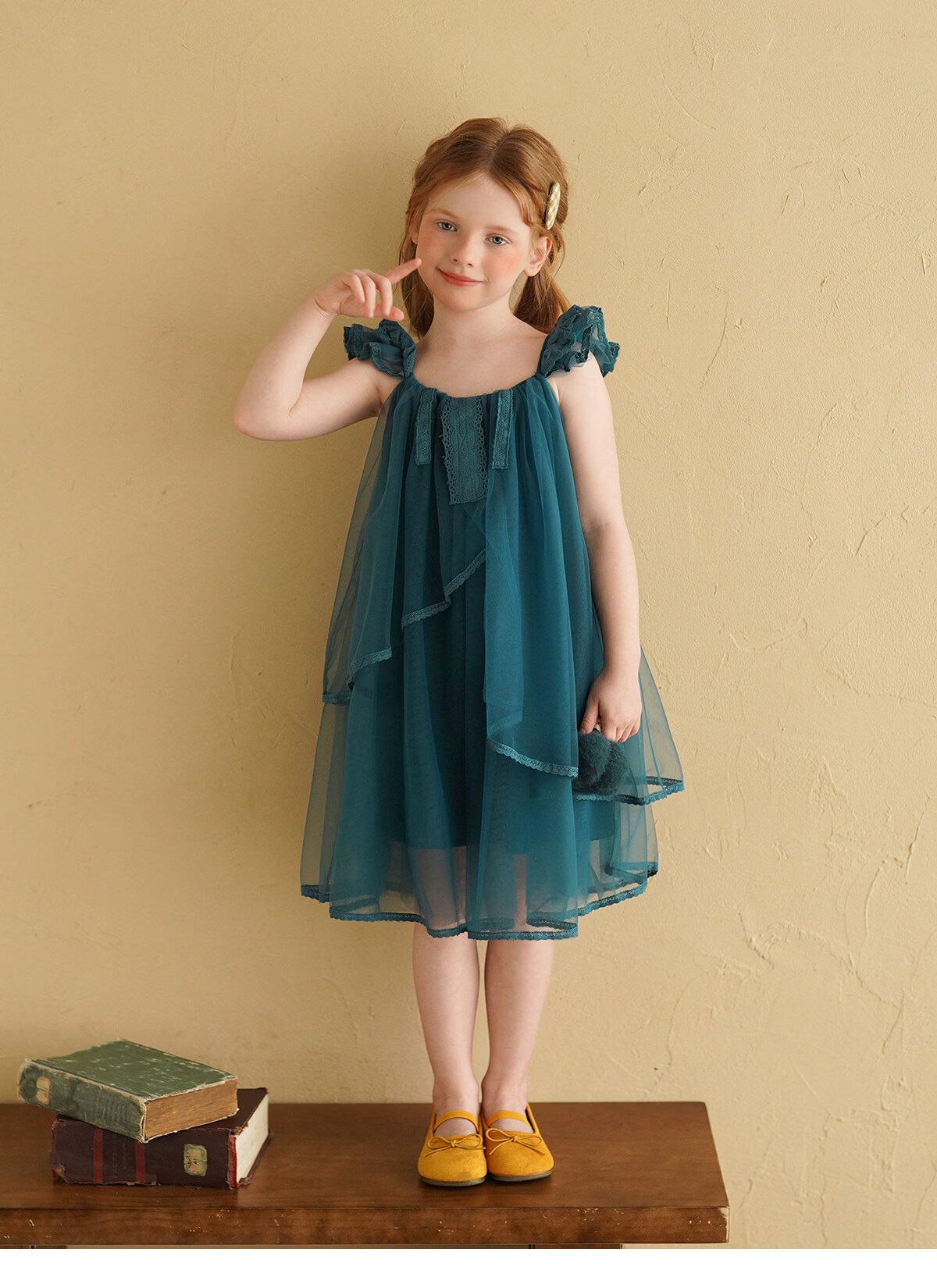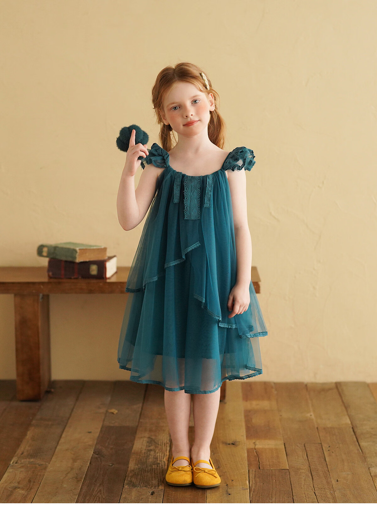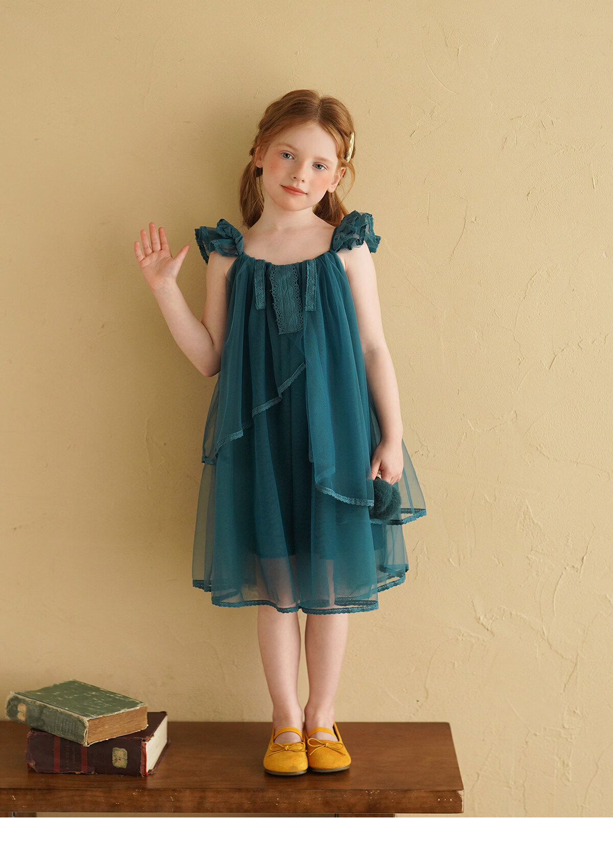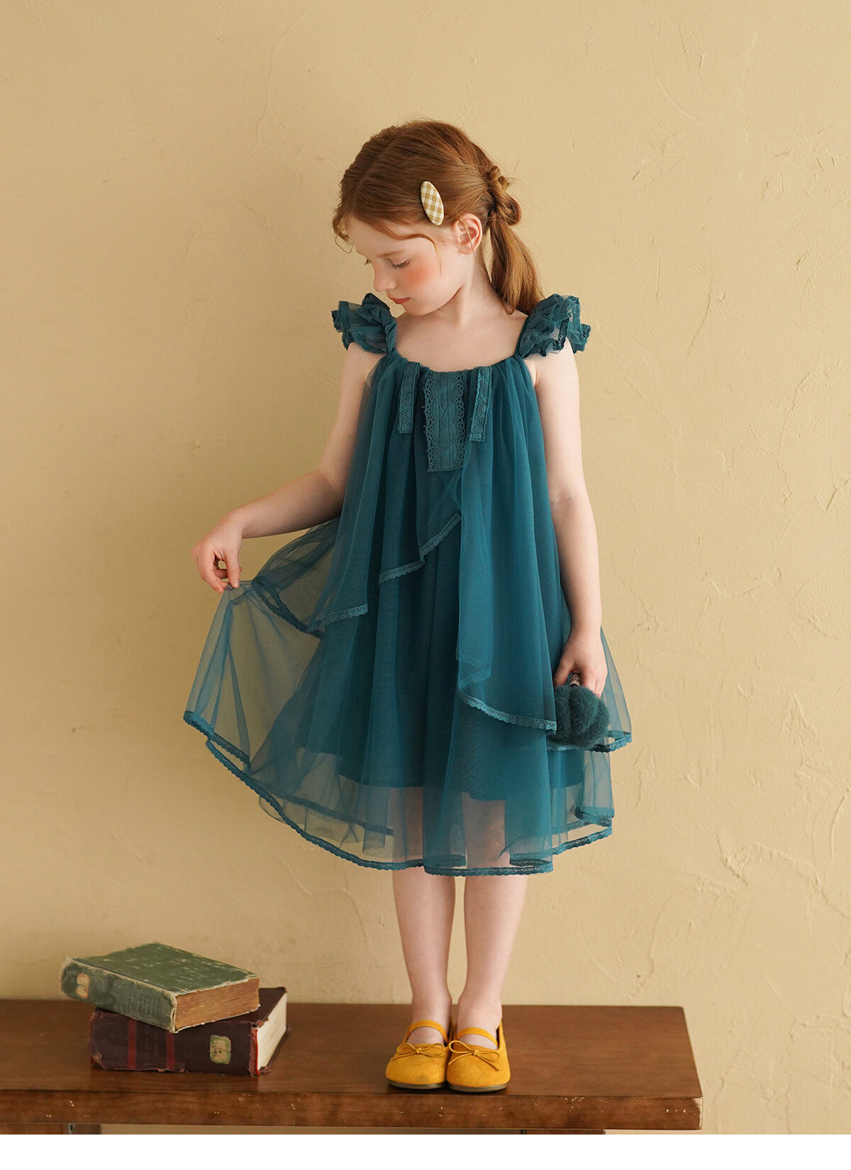Yantaijia Girls Dress Summer New 2026 Girls Flying Sleeves Mesh Skirt Lace Lace Puffy Princess Skirt Blue 90