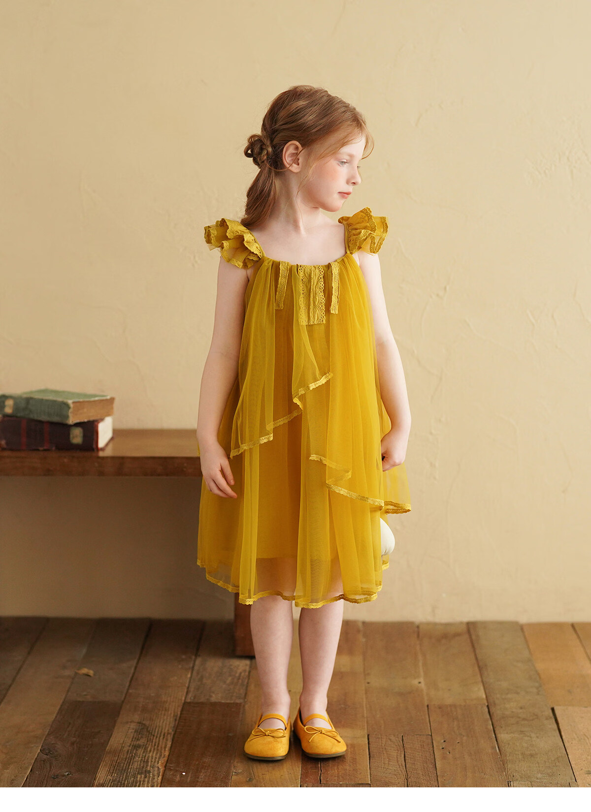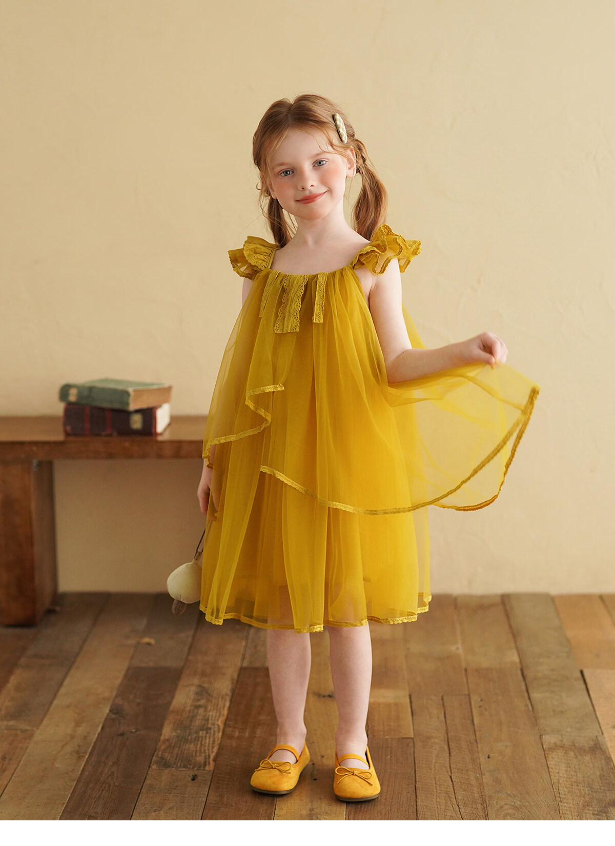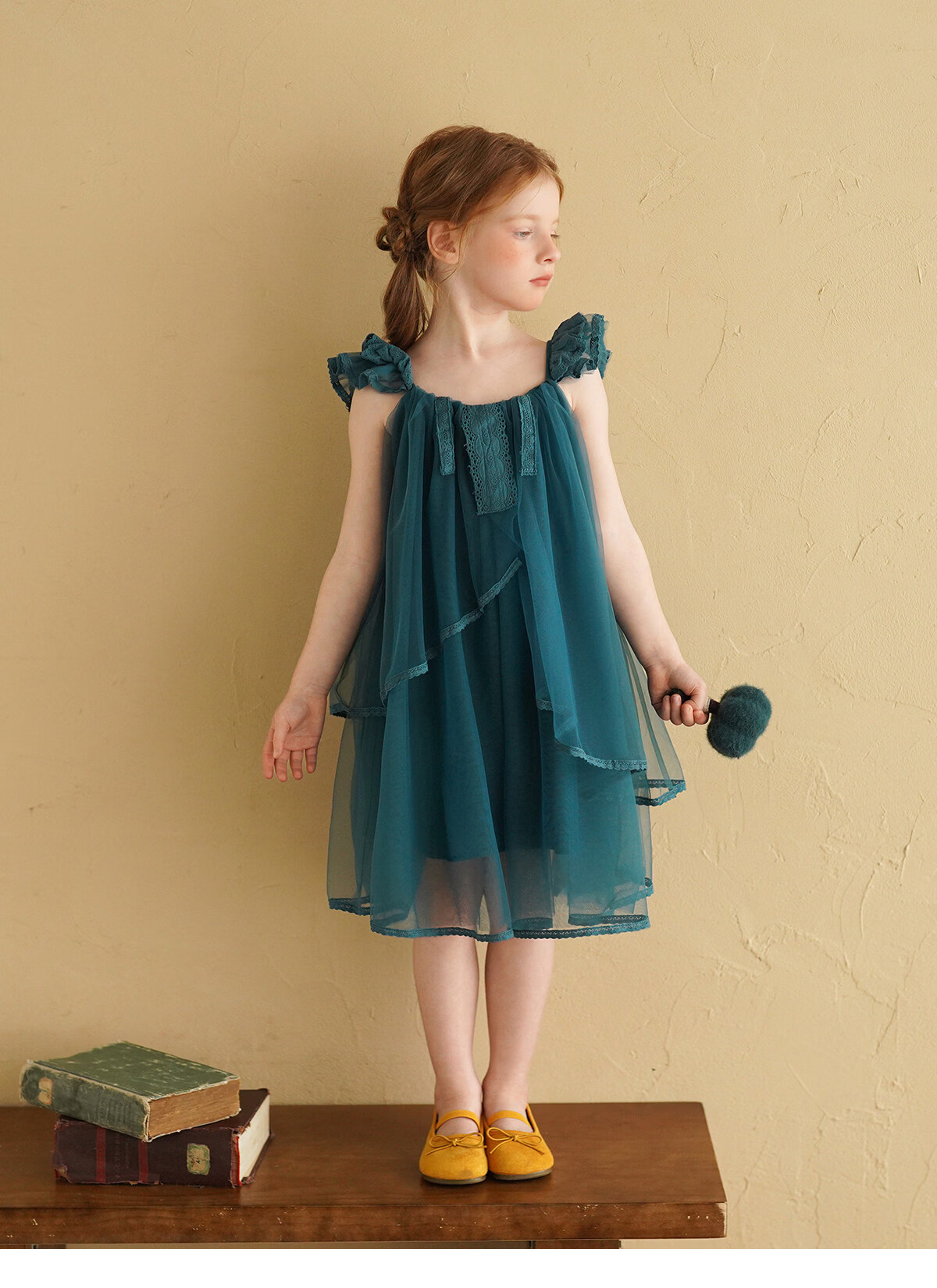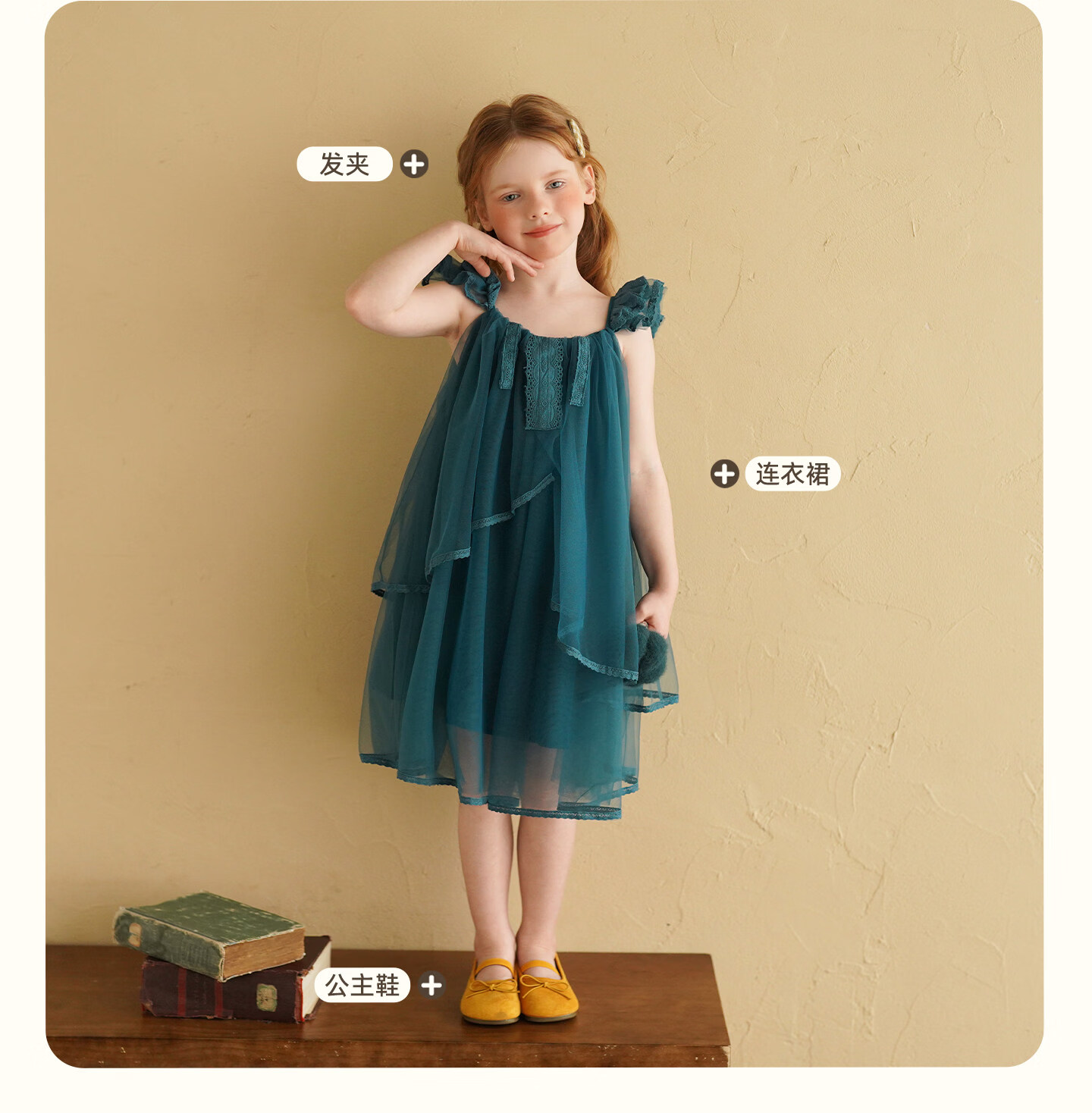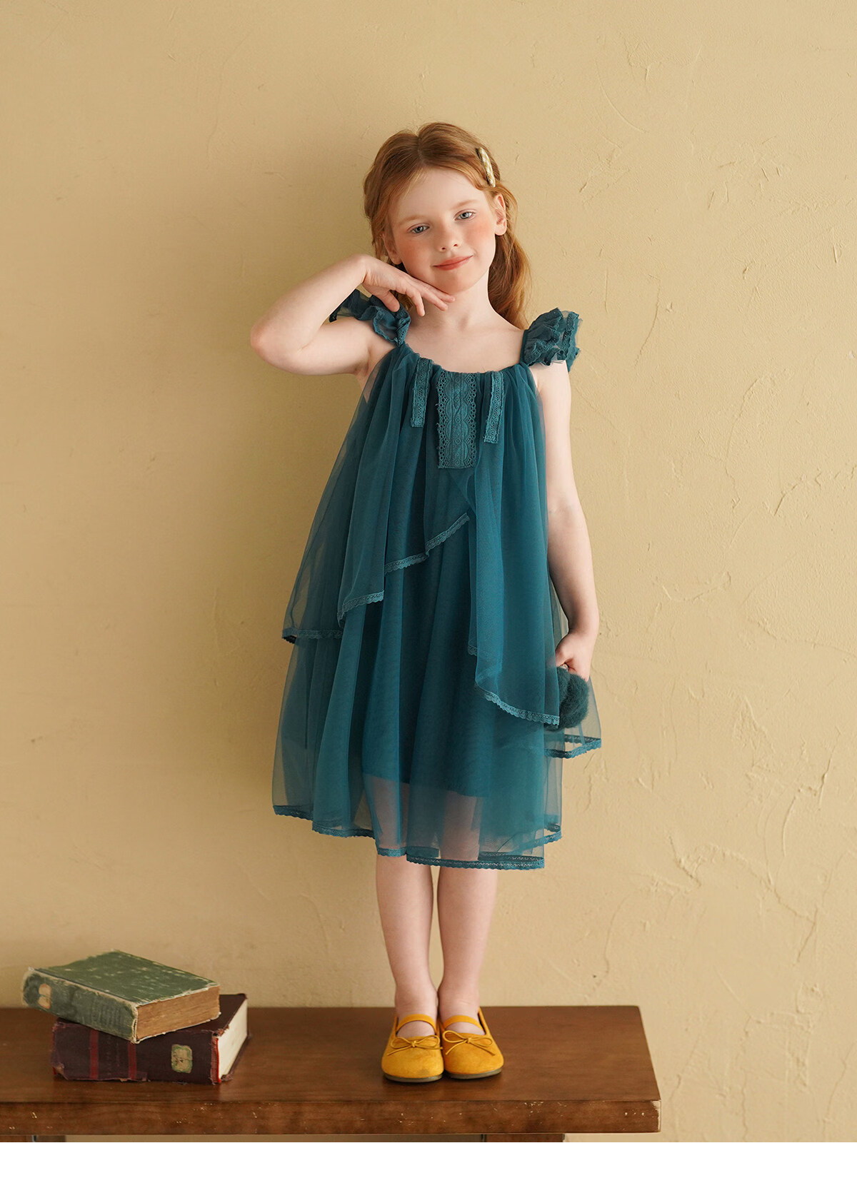 Yantaijia Girls Dress Summer New 2026 Girls Flying Sleeves Mesh Skirt Lace Lace Puffy Princess Skirt Blue 90