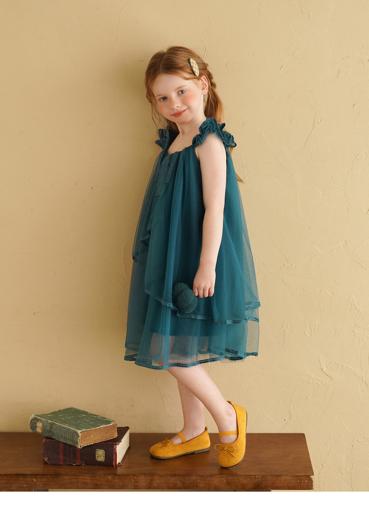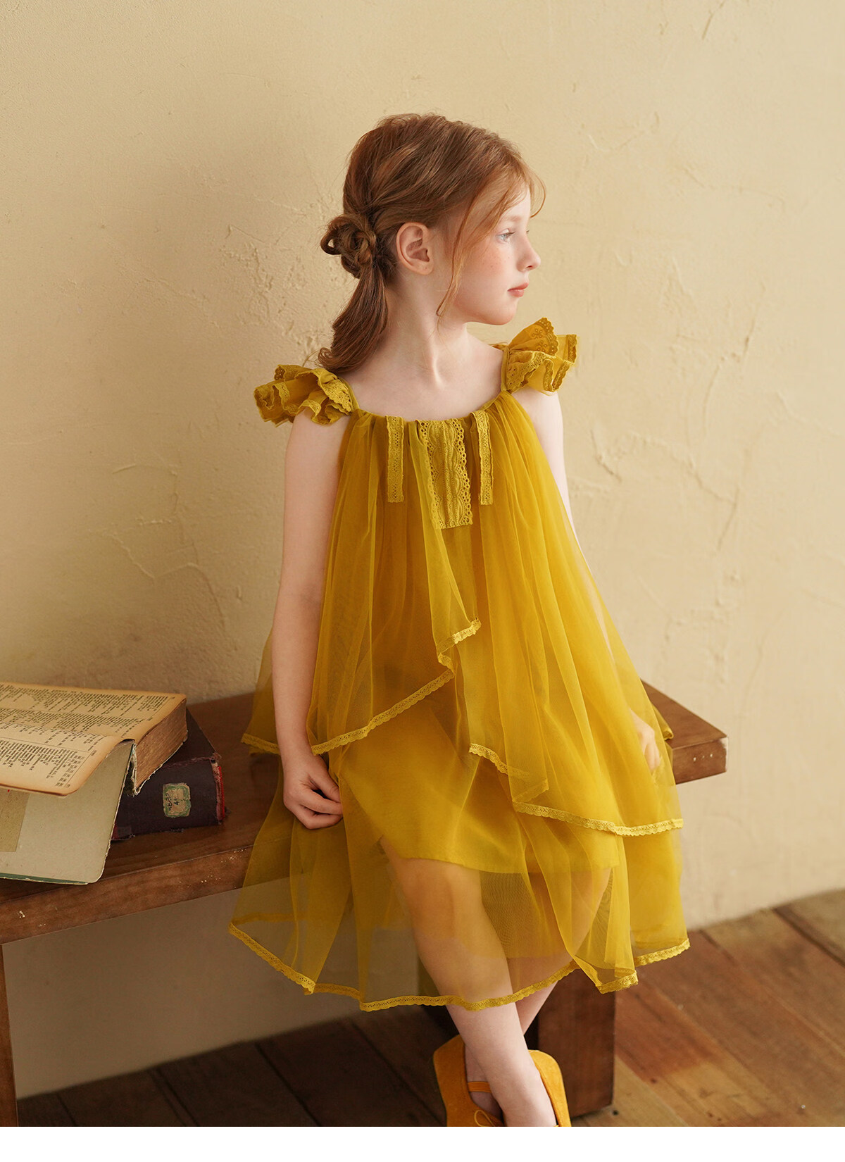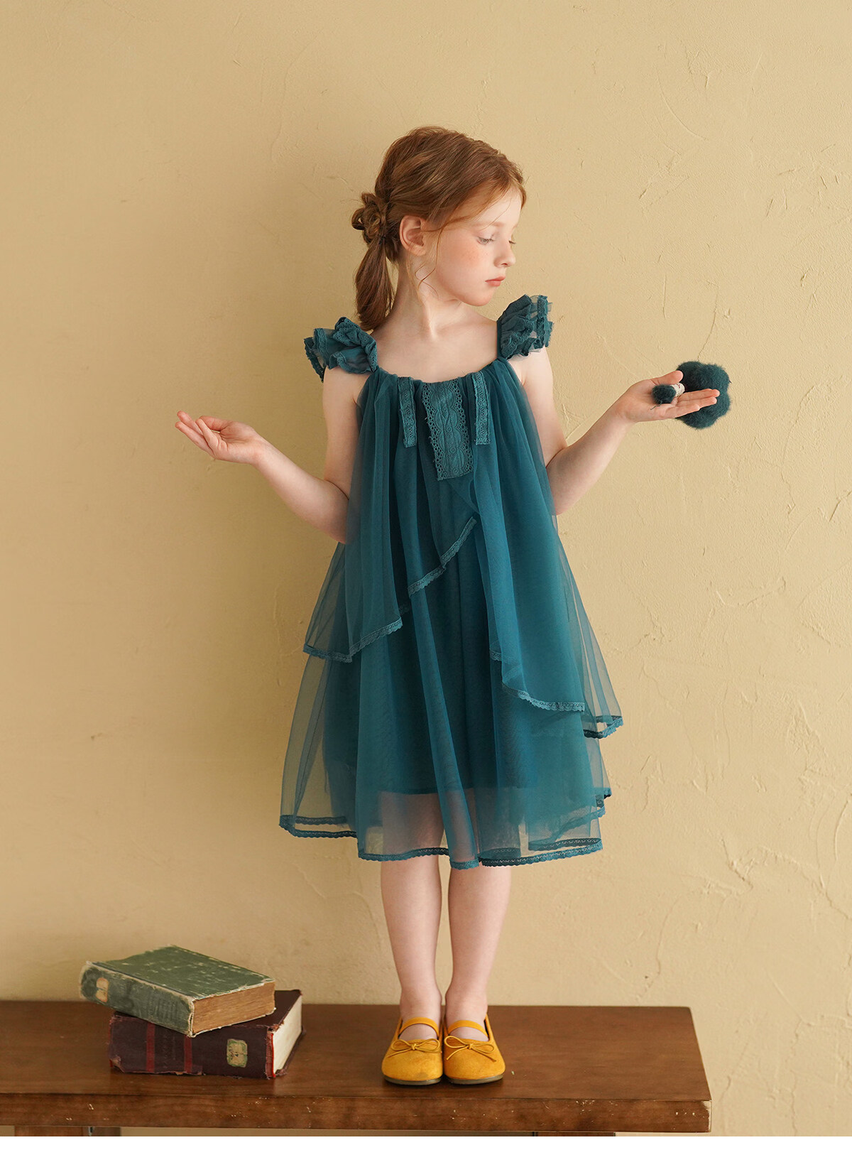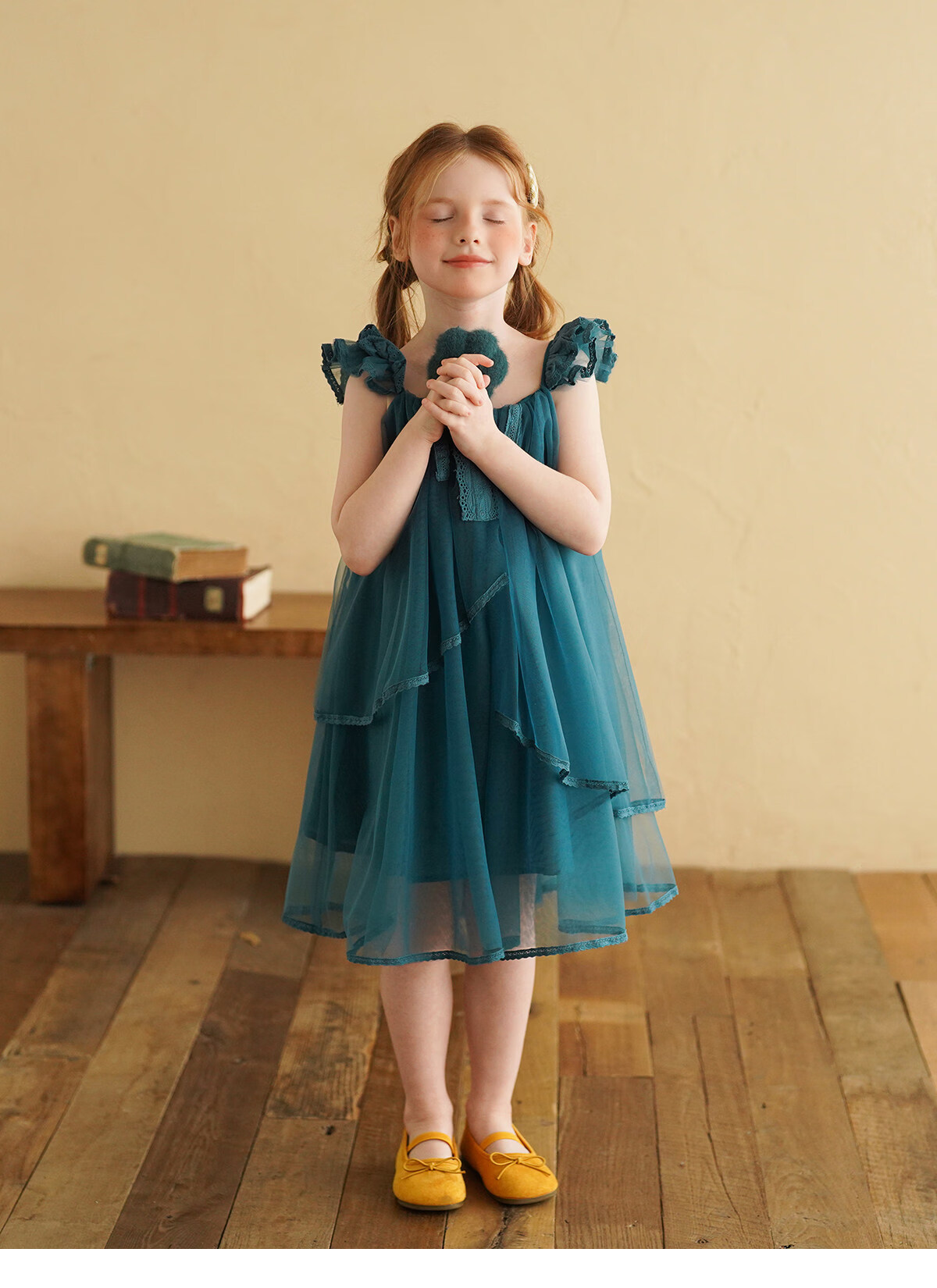 Yantaijia Girls Dress Summer New 2026 Girls Flying Sleeves Mesh Skirt Lace Lace Puffy Princess Skirt Blue 90