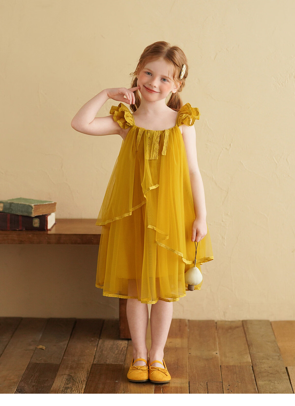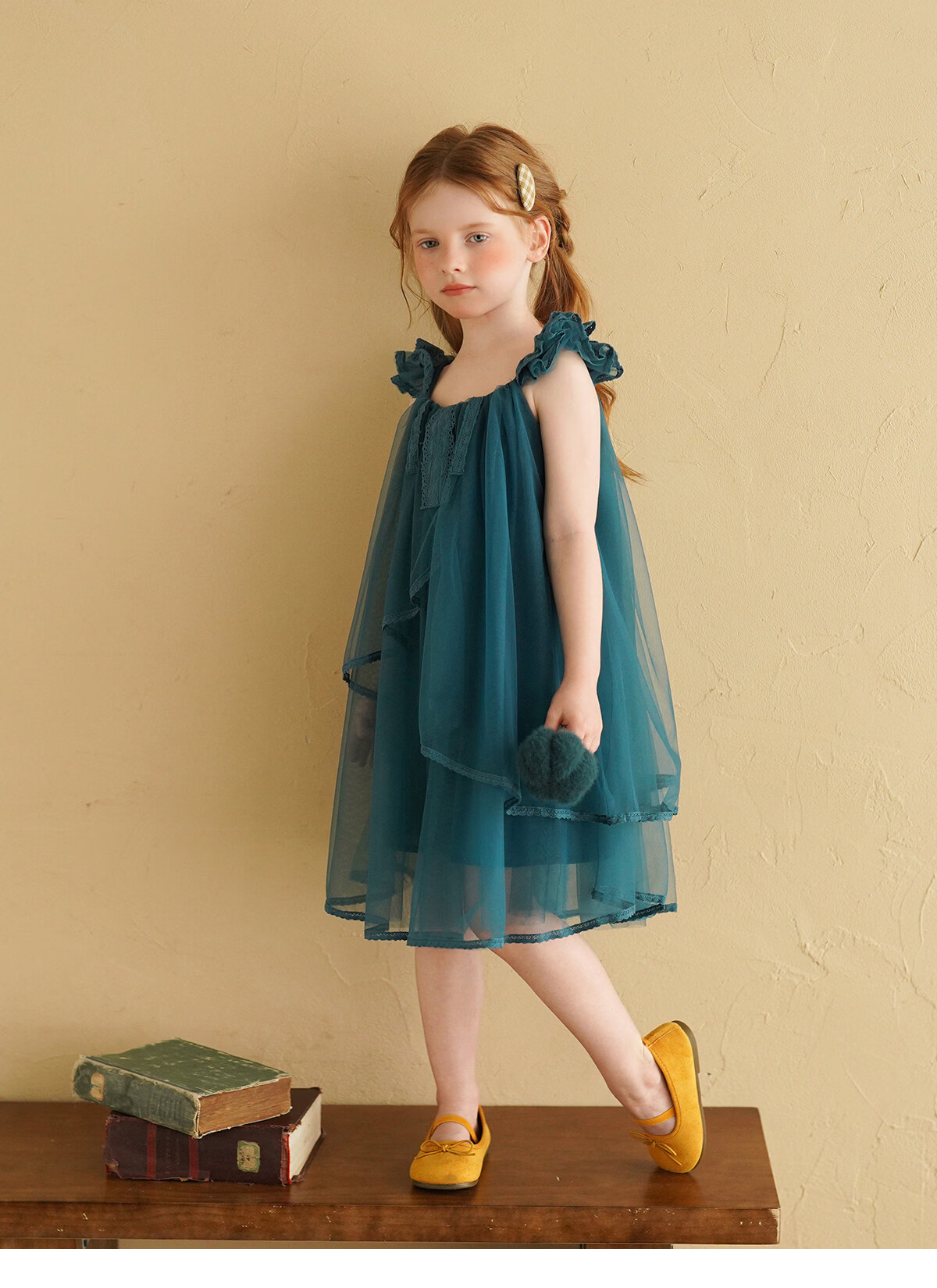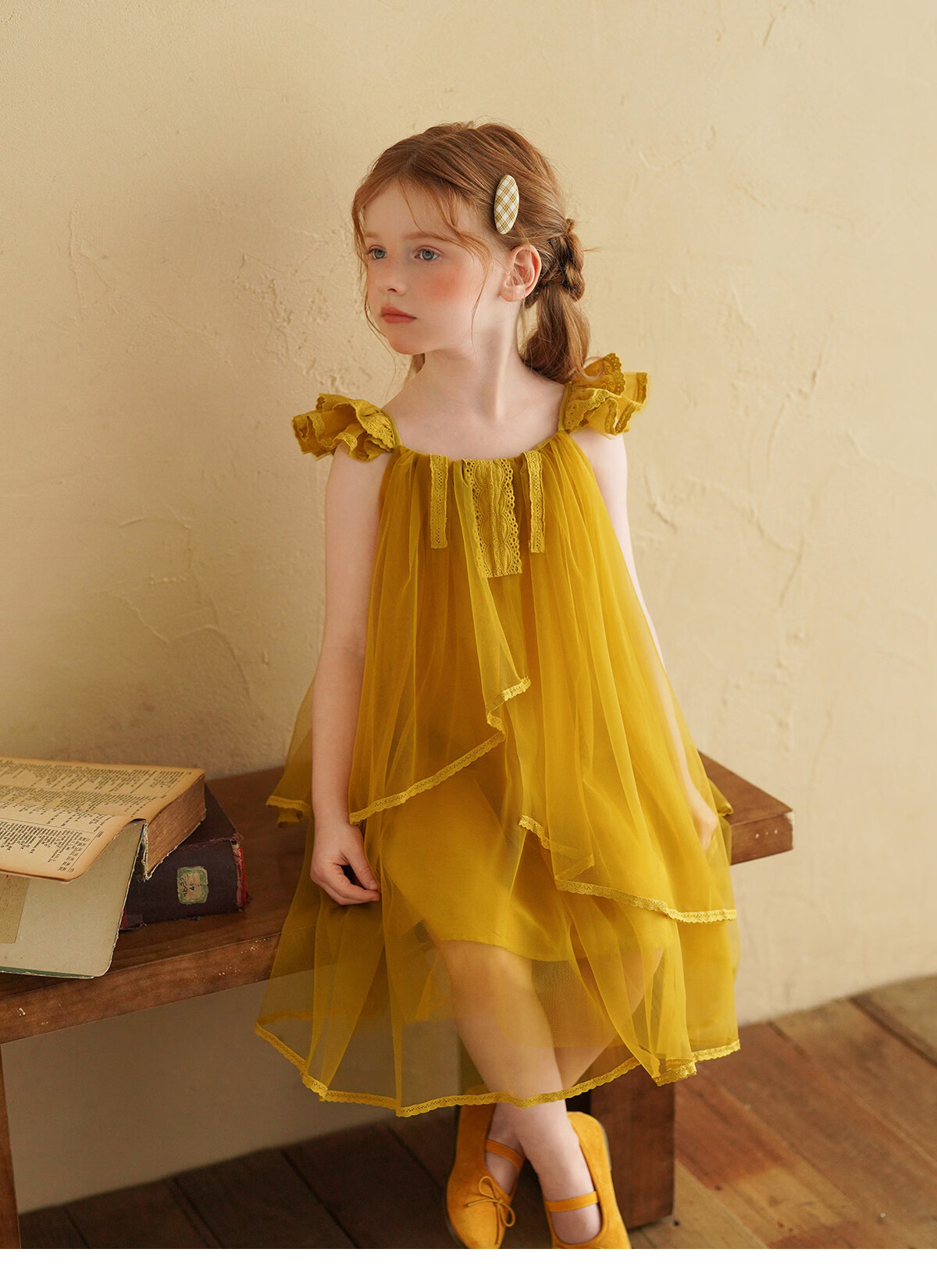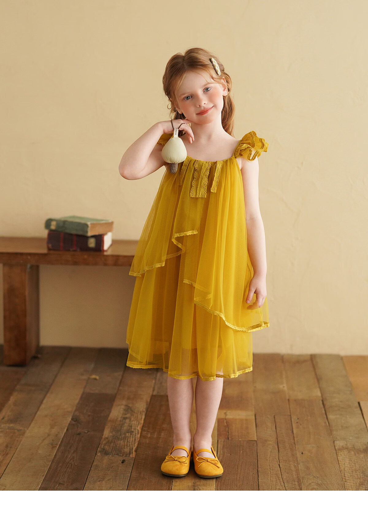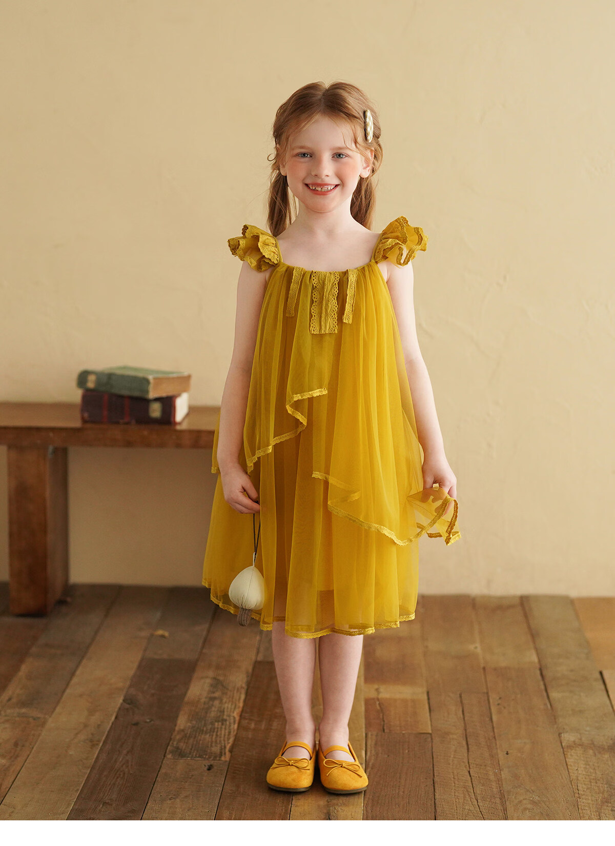 Yantaijia Girls Dress Summer New 2026 Girls Flying Sleeves Mesh Skirt Lace Lace Puffy Princess Skirt Blue 90
