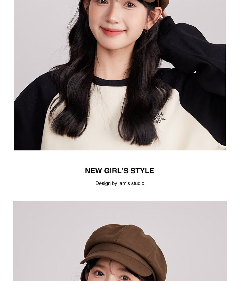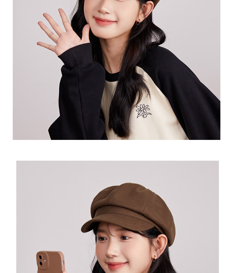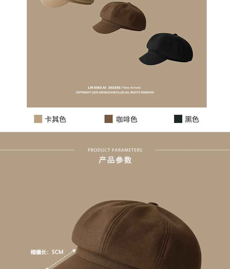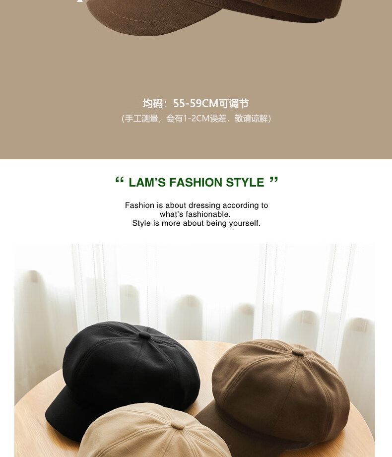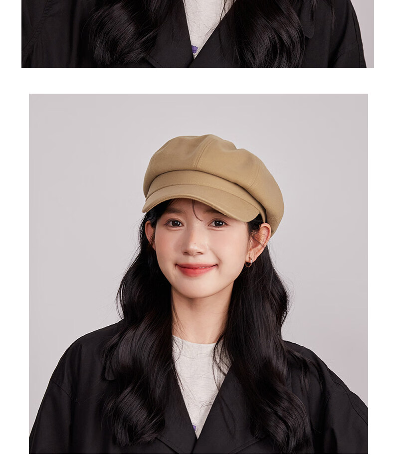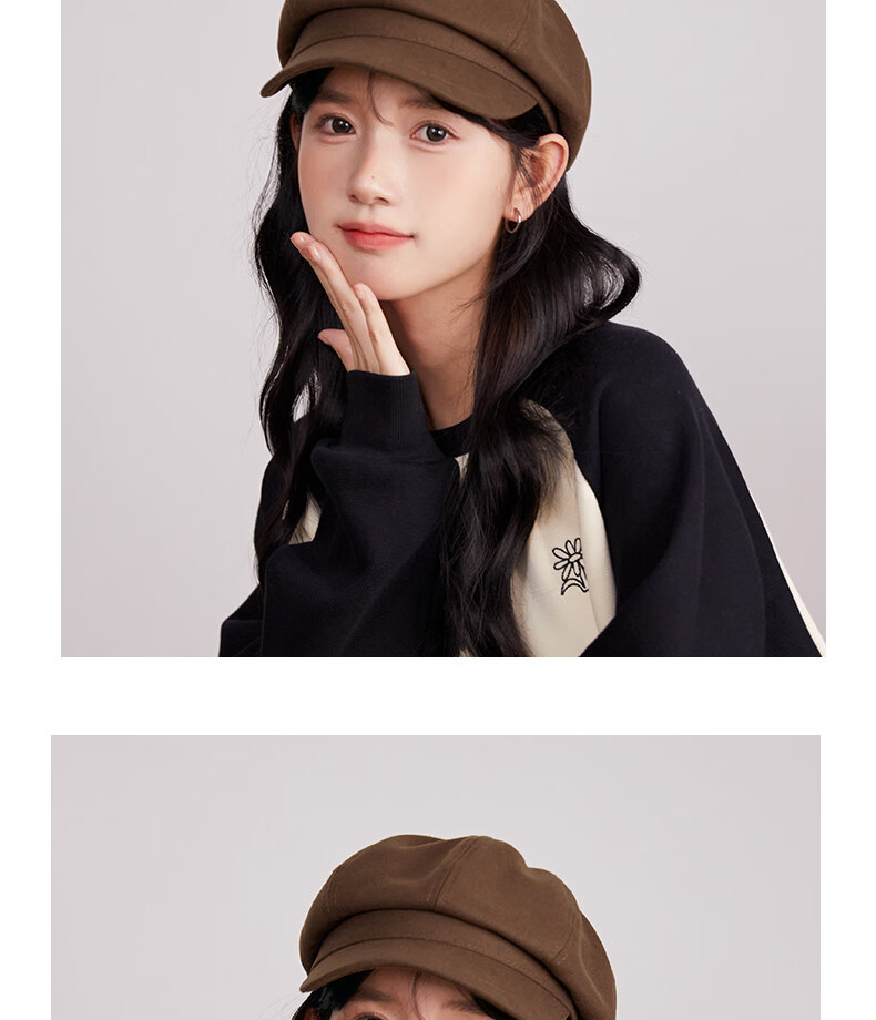 Xiaohongshu’s popular Korean style solid color woolen octagonal hat for women spring short brim beret literary retro brown apricot M one size fits all (55-59c) adjustable