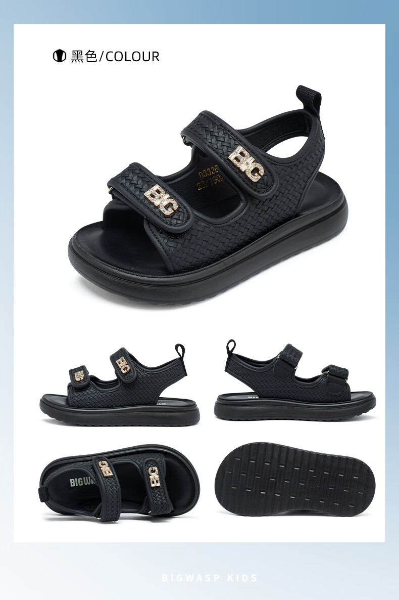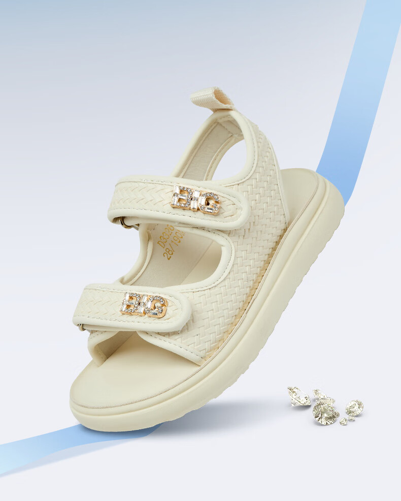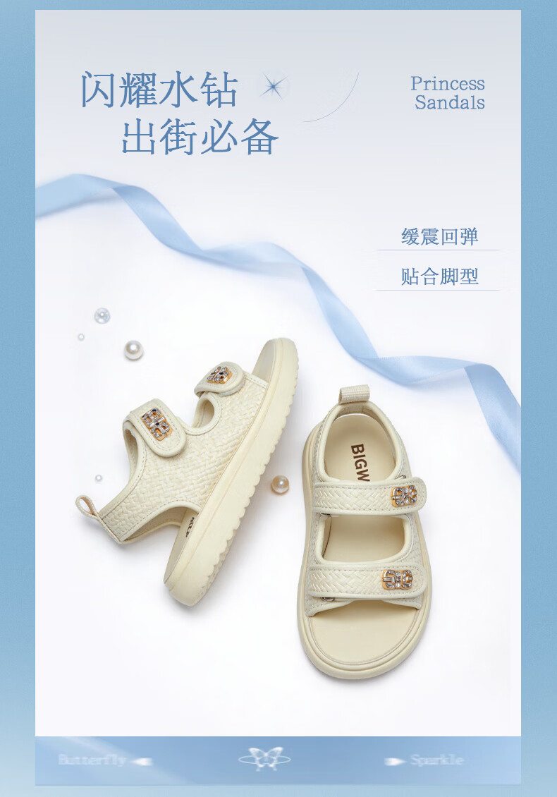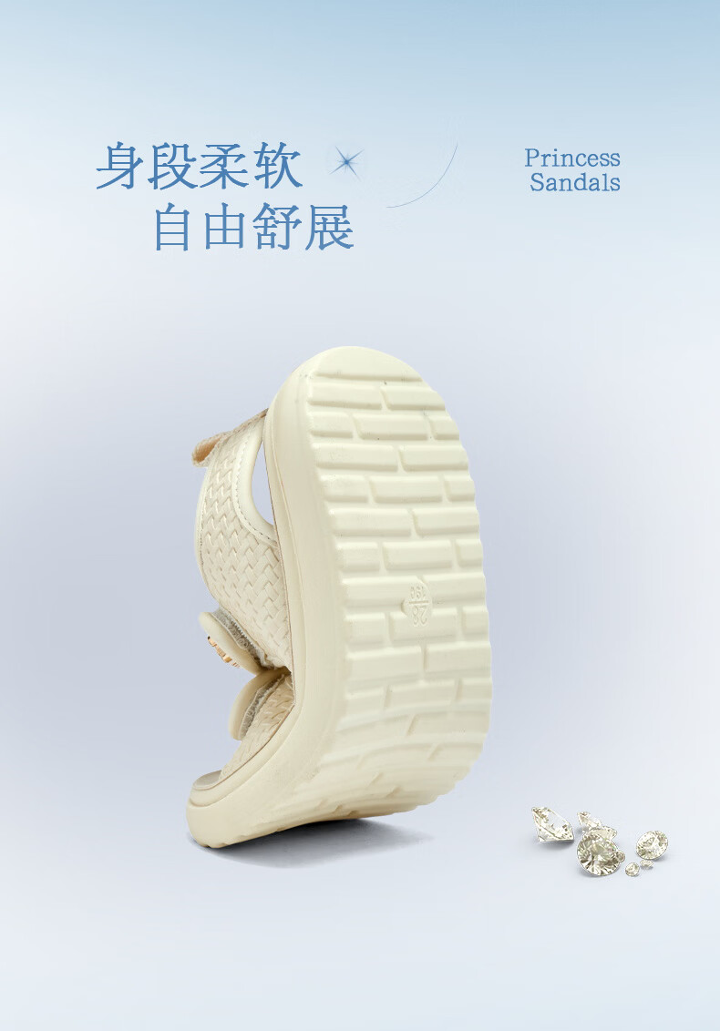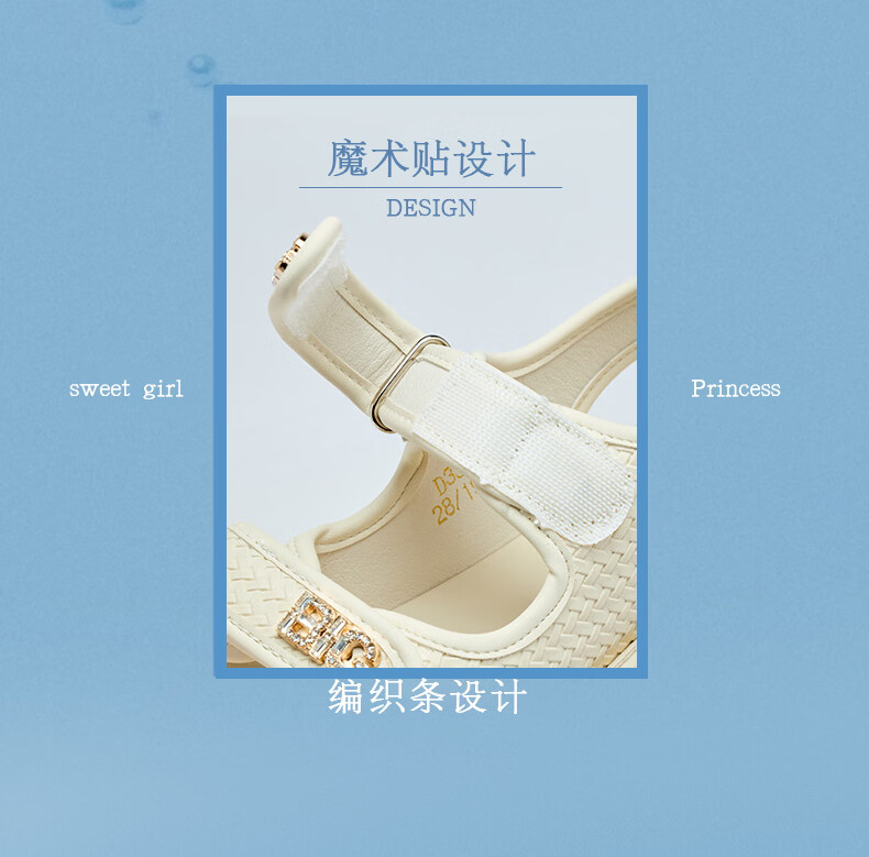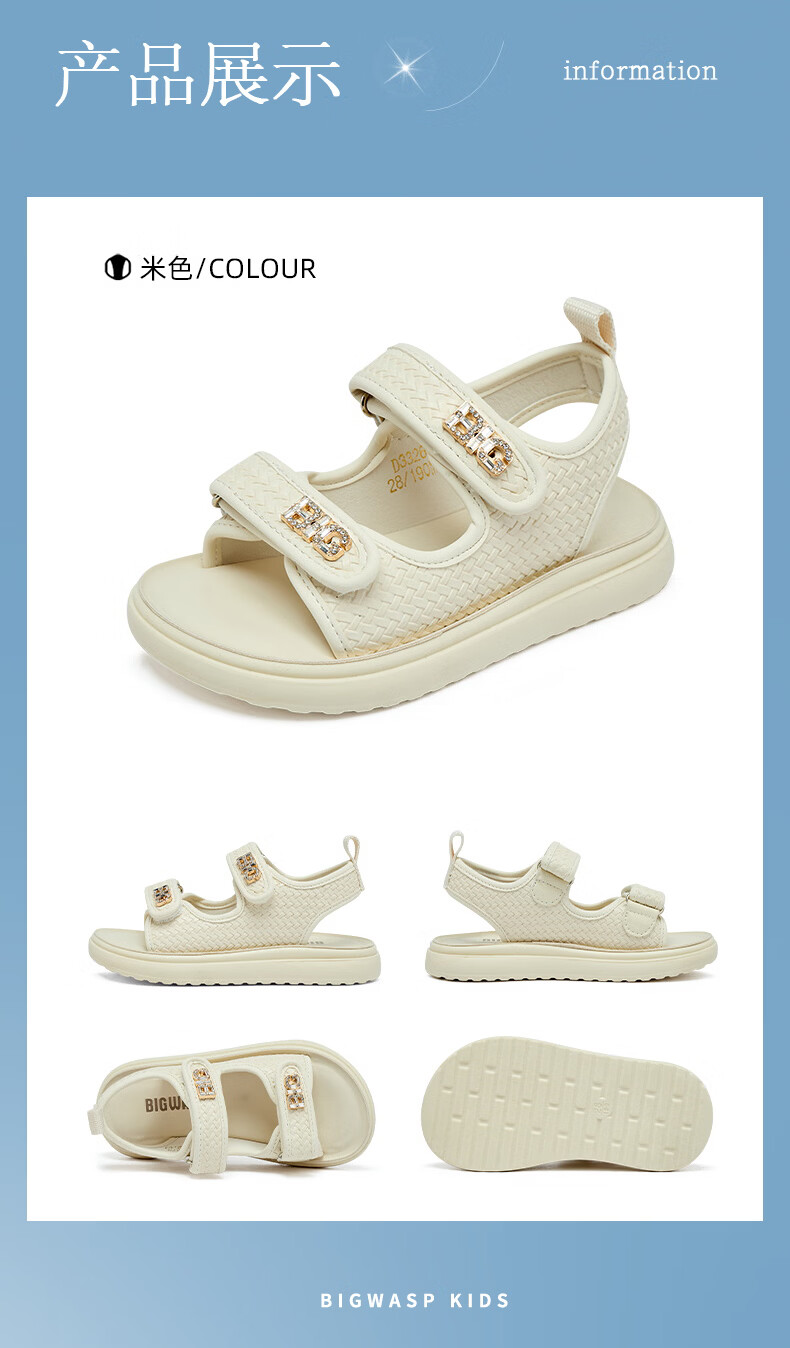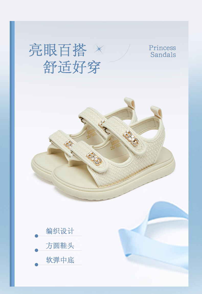 BIG WASP BIG WASP Children's Shoes Elementary School Sandals Girls Summer New Soft Bottom Non-Slip Comfortable Princess Beach Shoes Children's Shoes Beige 27