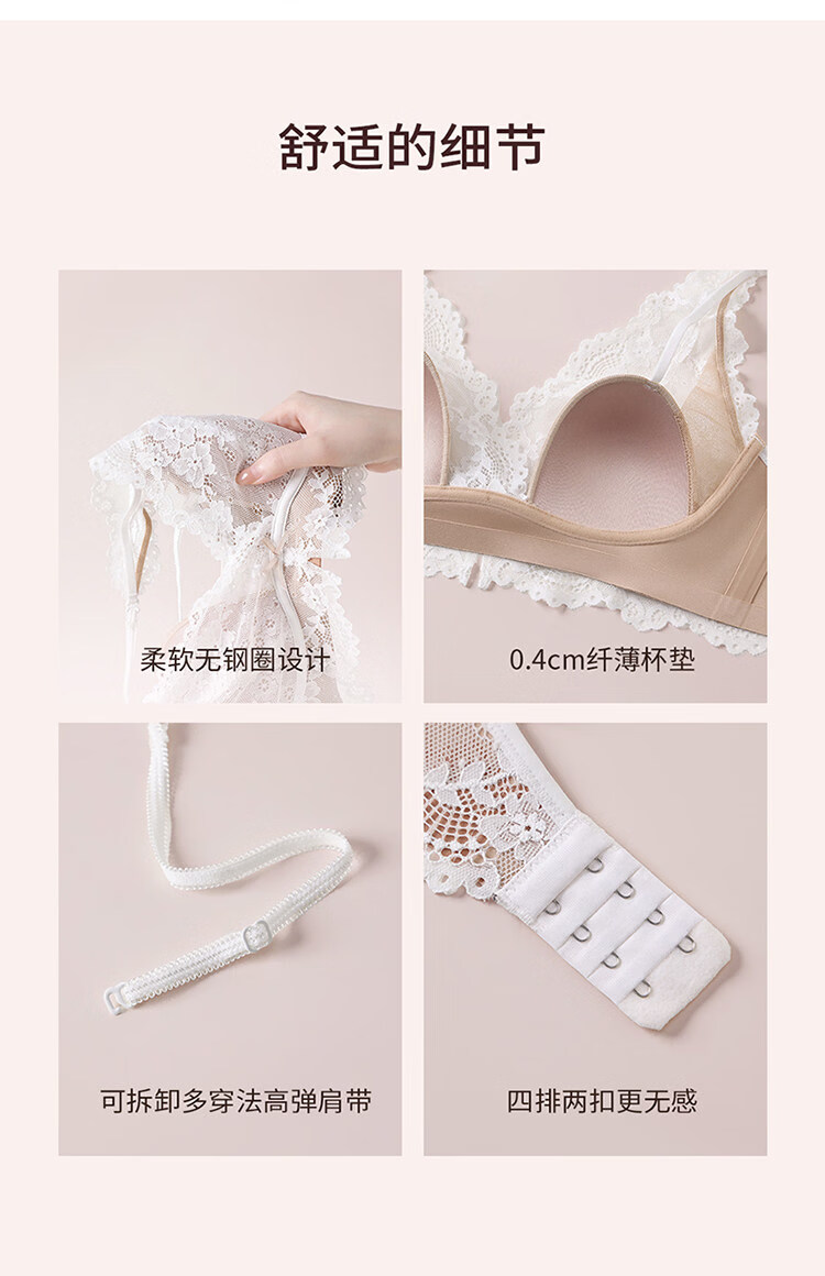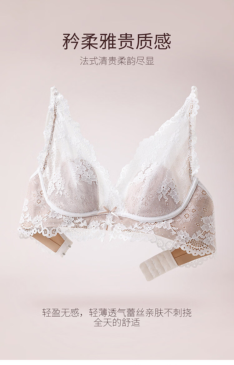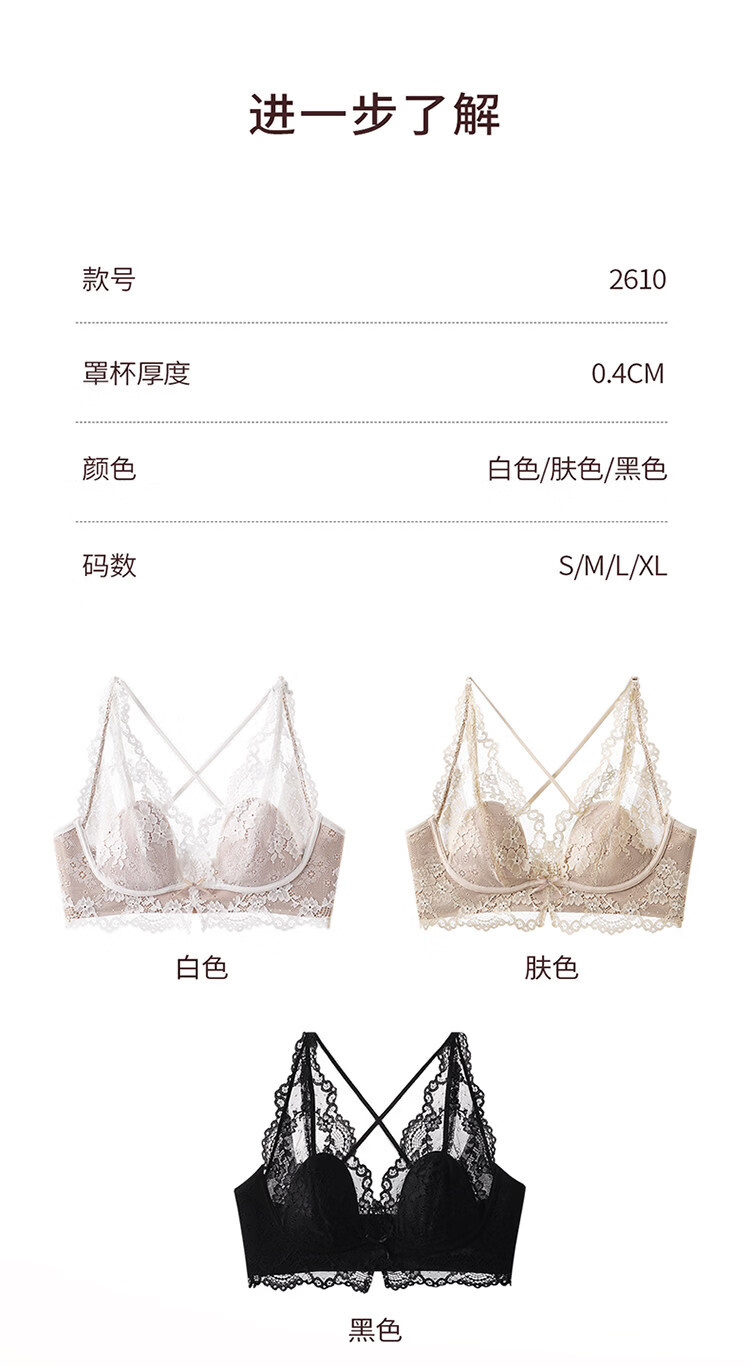 MiiOW Lace French Sexy Underwear Women's Large Breast Revealing Small Lift Anti-Sagging Pure Desire Style Deep V Halter Neck Beautiful Back Bra Black S