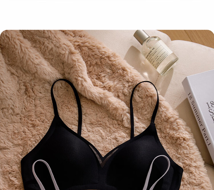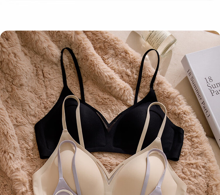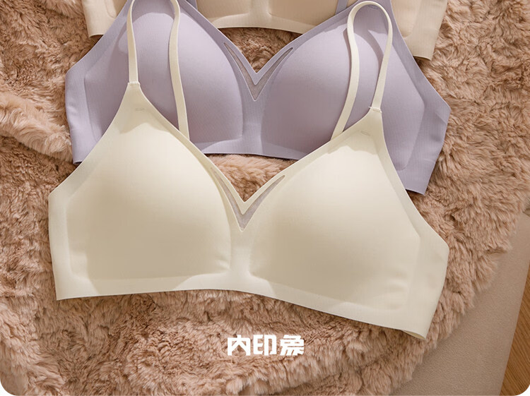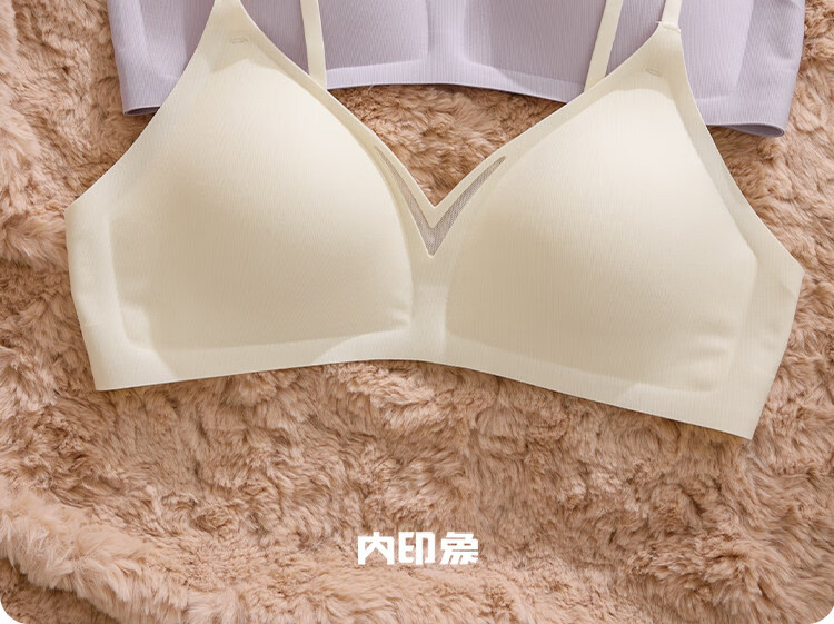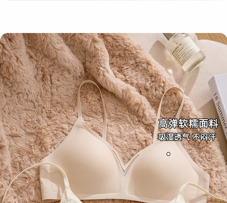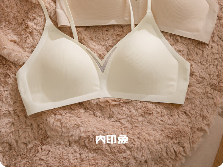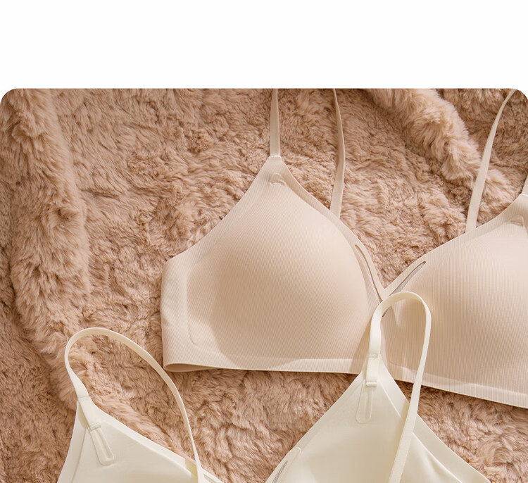 GPPNKC French triangular cup spaghetti strap underwear for women with small breasts, flat chest special non-empty cup bra, seamless thin bra, milky white S (suitable for 70A/70B)
