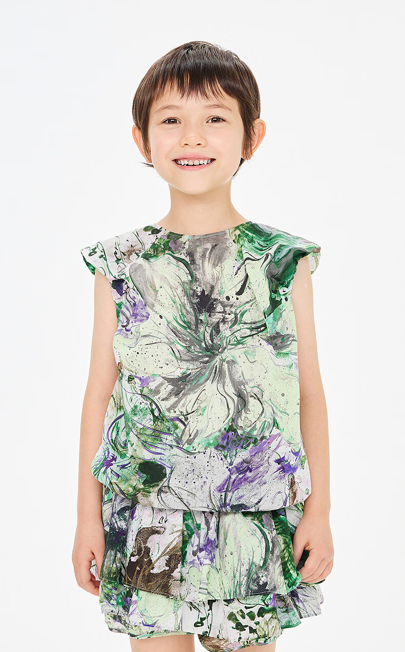 Jnby by JNBY New Jiangnan Buyi Children's Clothing Sleeveless Top H-shaped Loose Round Neck Pullover 26 Summer Girls 1Q4211650 347/Green 100 cm