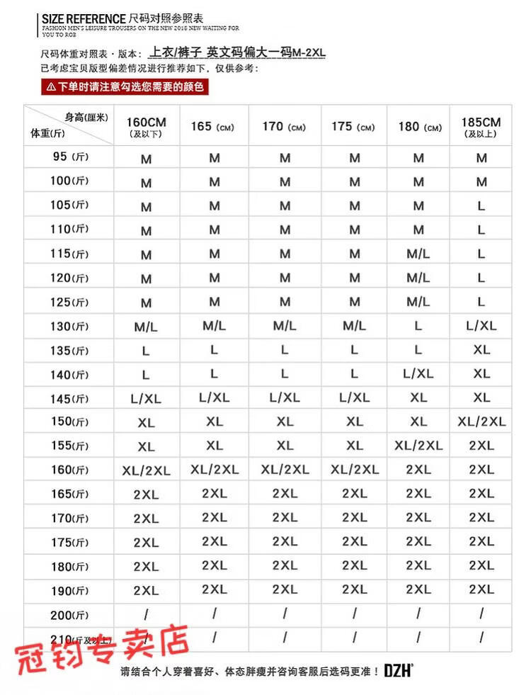 China (cm) 165 / 88-90 170 / 96-98 175 / 108-110 180 / 118-122 185 / 126-130