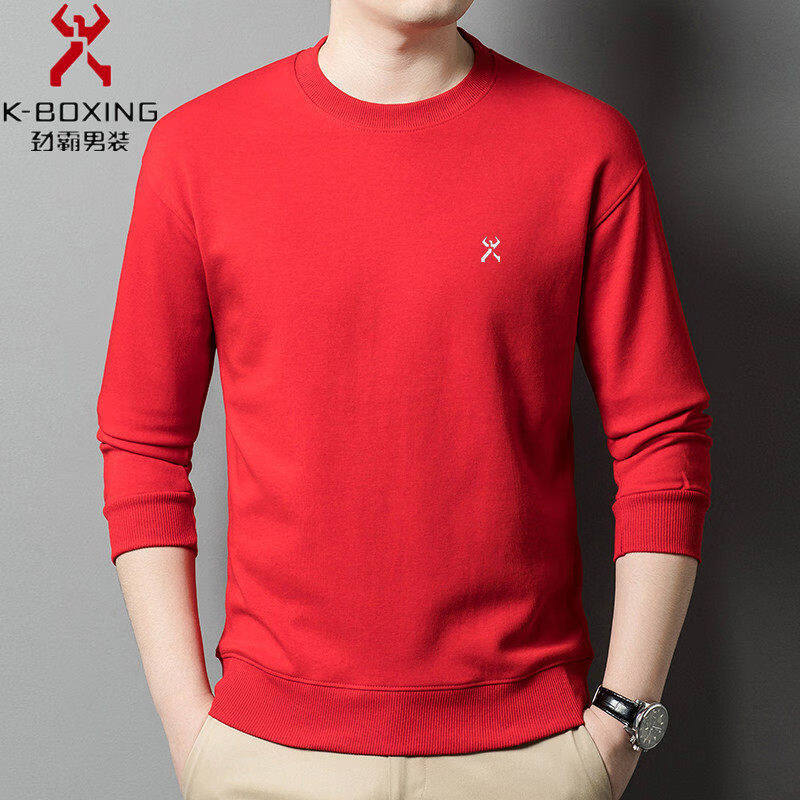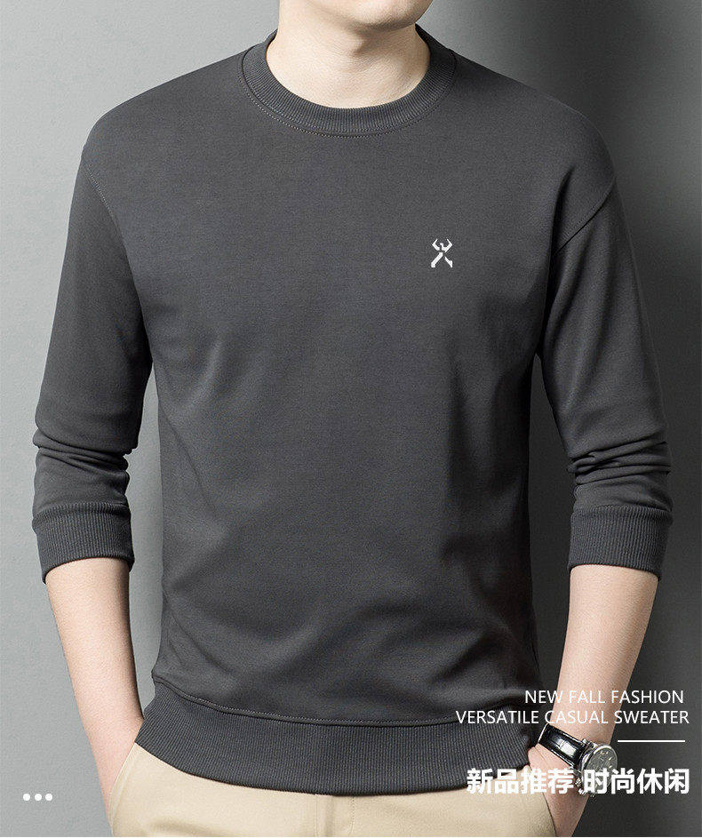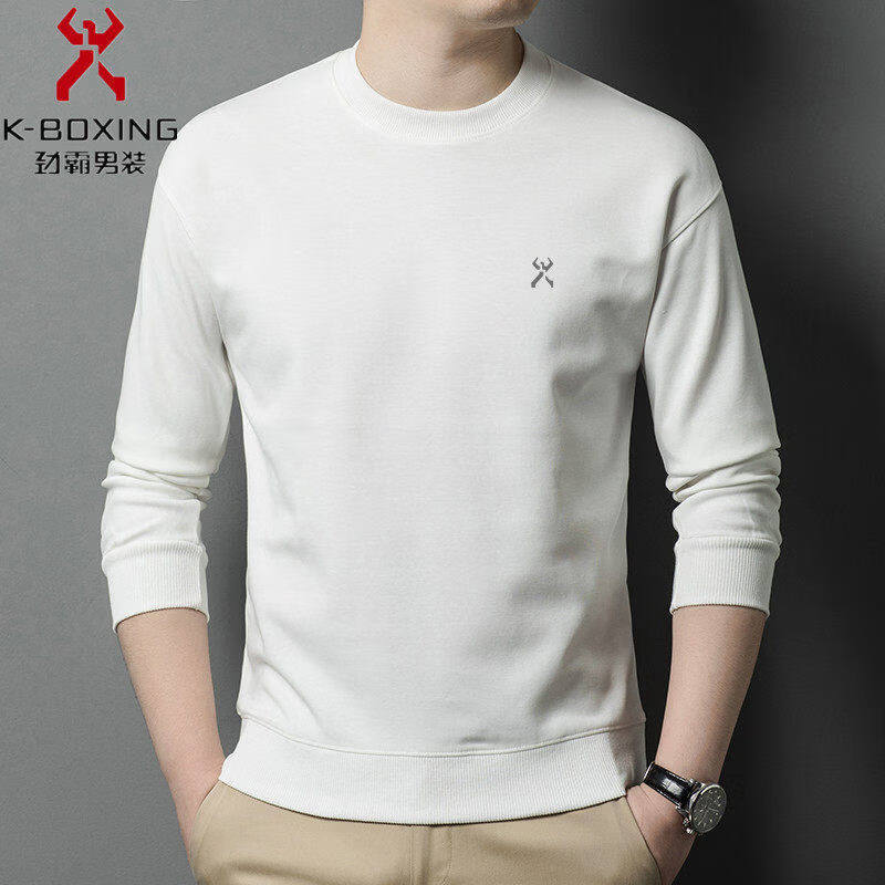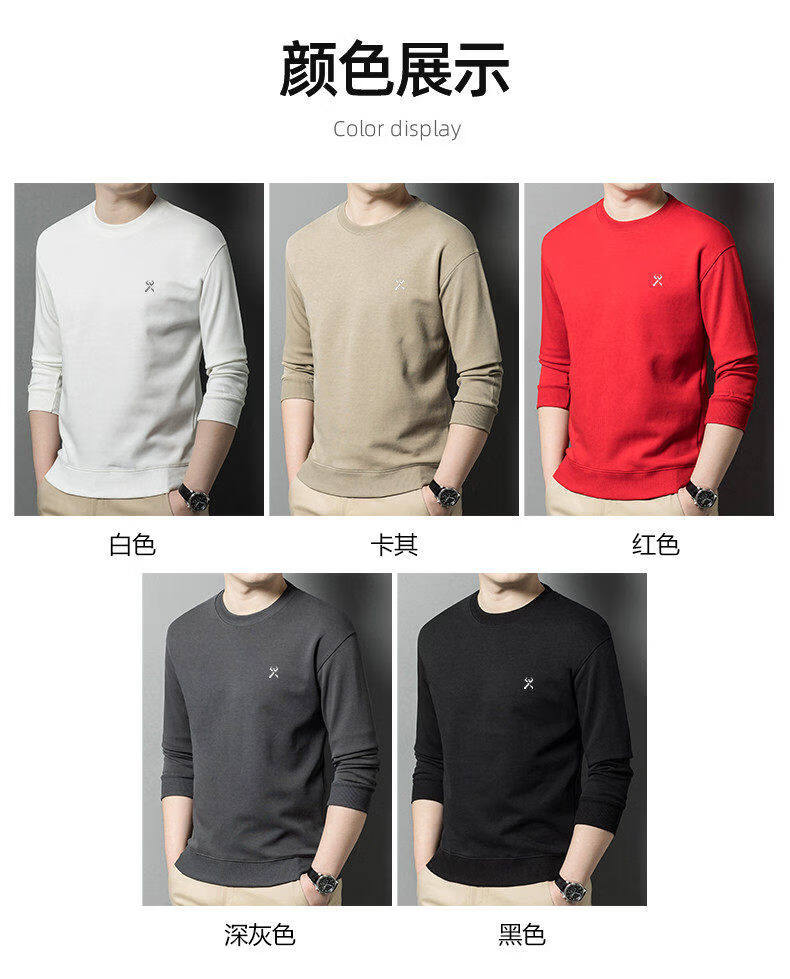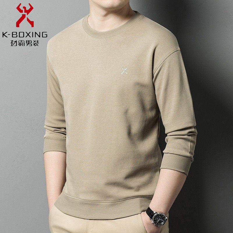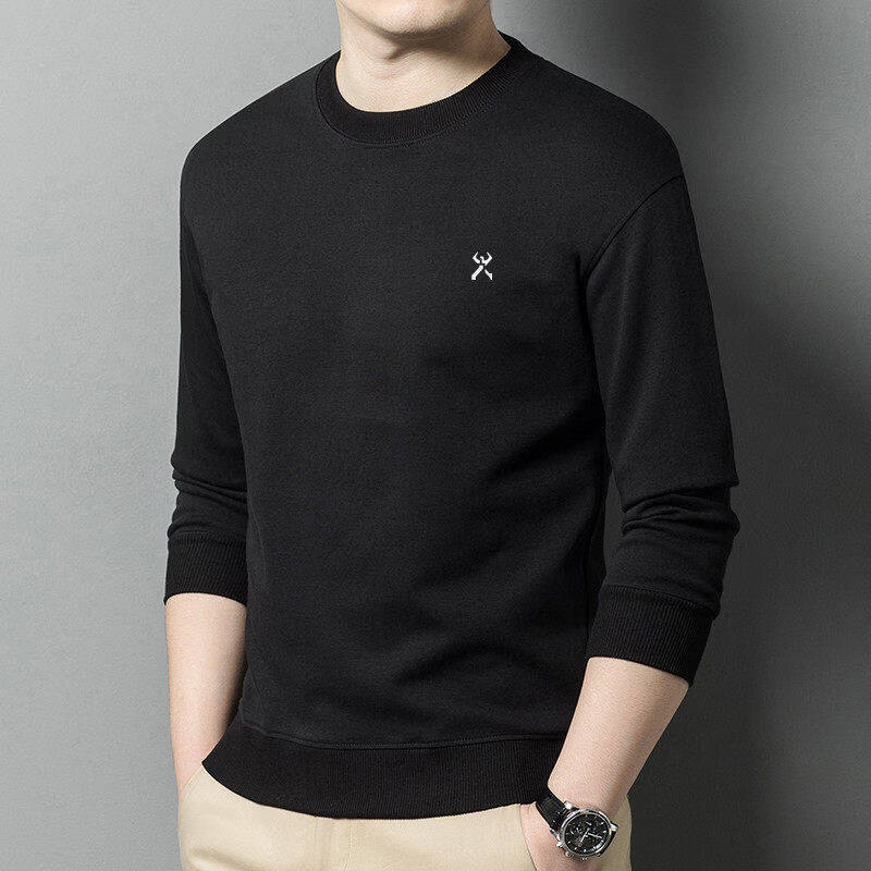 KBHONG Men's round neck sweatshirt long-sleeved T-shirt business casual bottoming shirt spring comfortable breathable light luxury black KSP-S08 3XL weight 180-200Jin Jin equals 0.5 kg