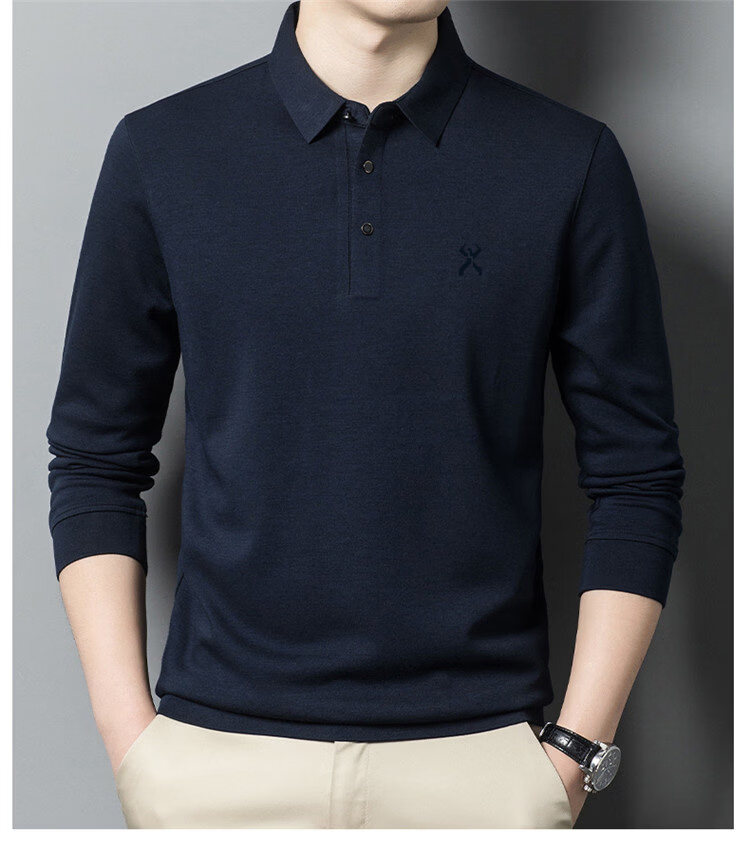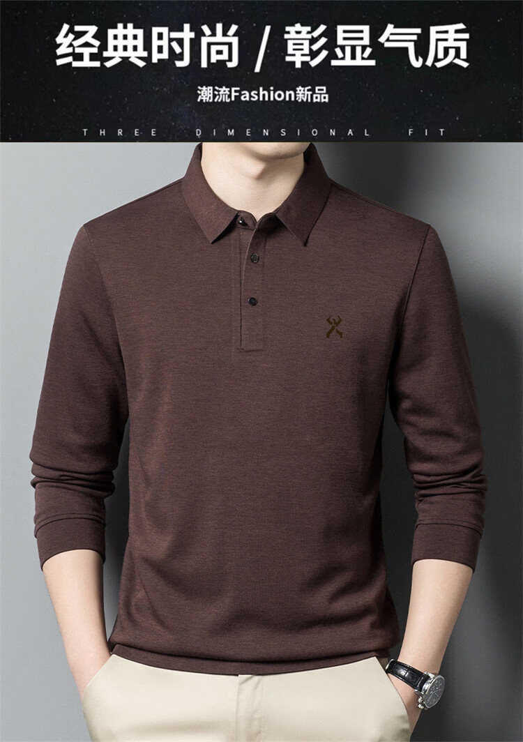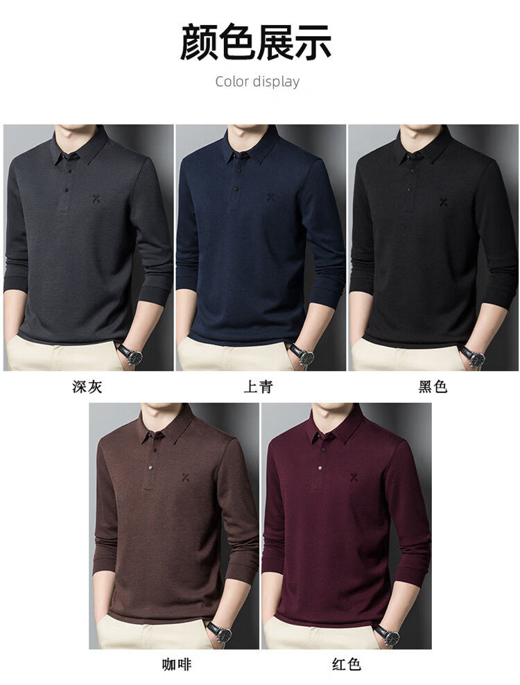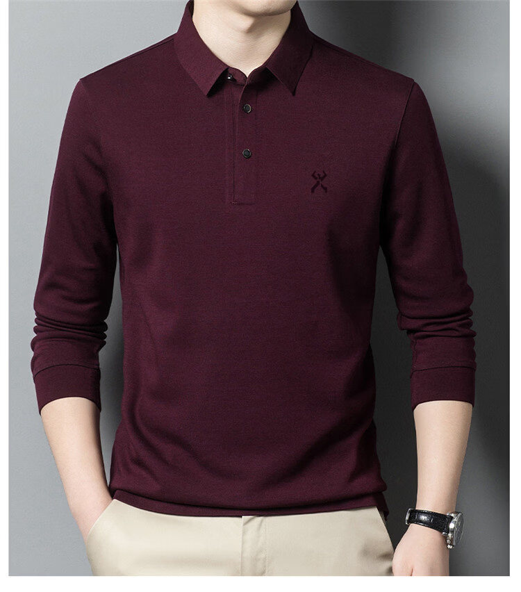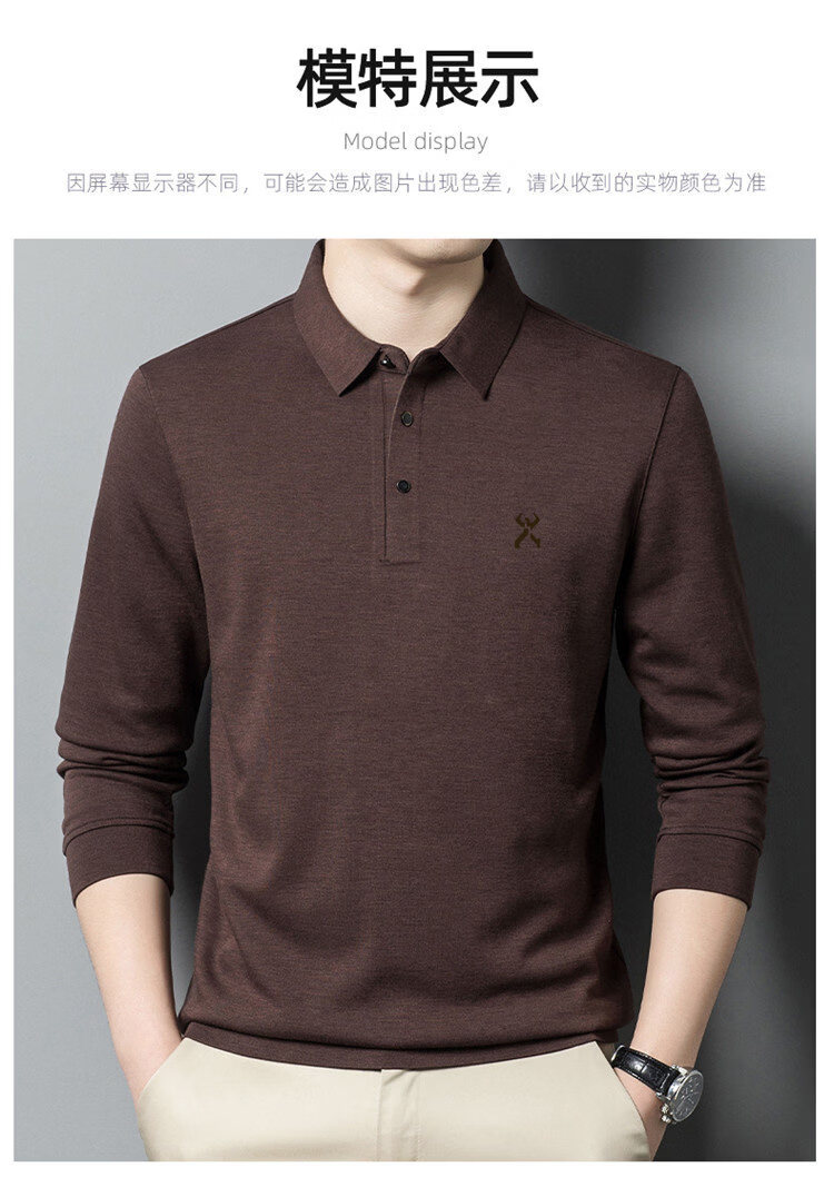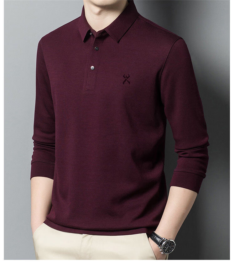 KBHONG Jinba men's long-sleeved T-shirt cardigan 2025 autumn and winter new men's business casual middle-aged lapel polo shirt red 2962 M 165 weight 90-115 Jin Jin equals 0.5 kg