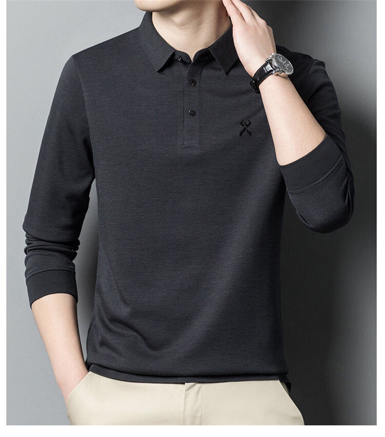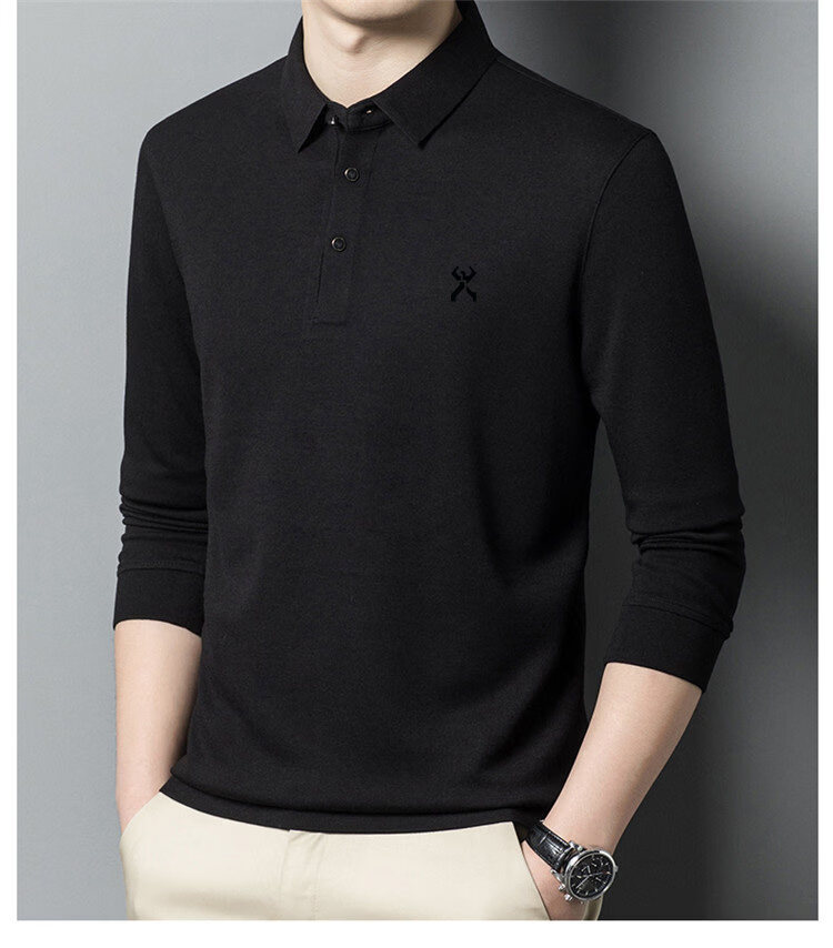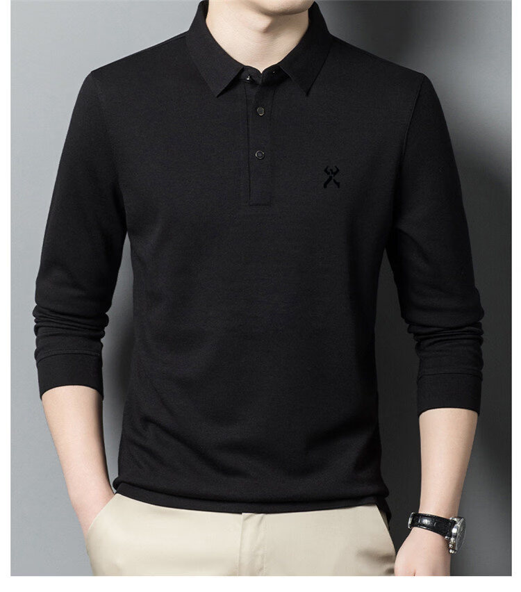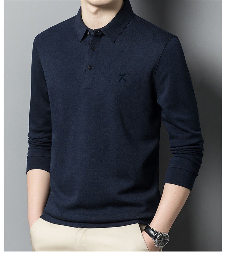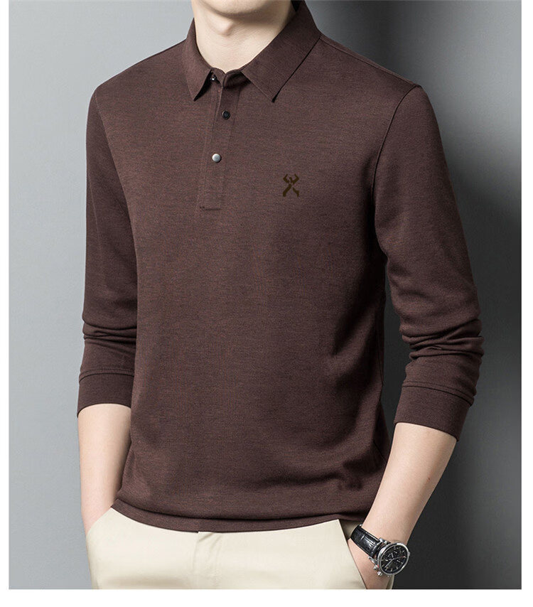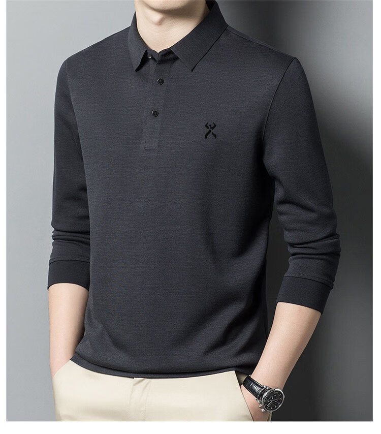 KBHONG Jinba men's long-sleeved T-shirt cardigan 2025 autumn and winter new men's business casual middle-aged lapel polo shirt red 2962 M 165 weight 90-115 Jin Jin equals 0.5 kg