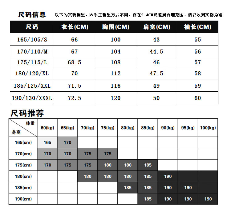 China (cm) 165 / 88-90 170 / 96-98 175 / 108-110 180 / 118-122 185 / 126-130
