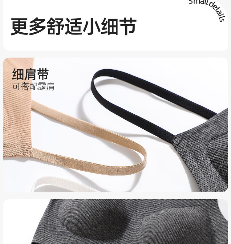 Thin shoulder strap underwear for women, beauty back tube top, one-piece suspenders, can expose seamless small breasts, push-up liquid foundation bra, dark gray M