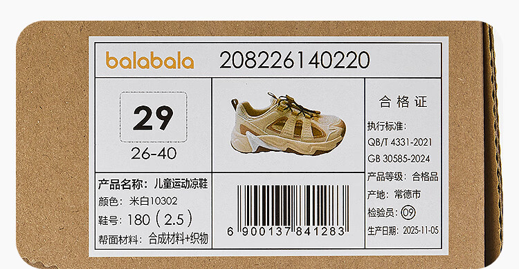 BALABALA balaOne children's shoes, children's sandals, boys' and girls' sports shoes, 2026 summer new outdoor shoes, off-white 10302 33 (foot length 20.3-20.7/inner length 21.6)
