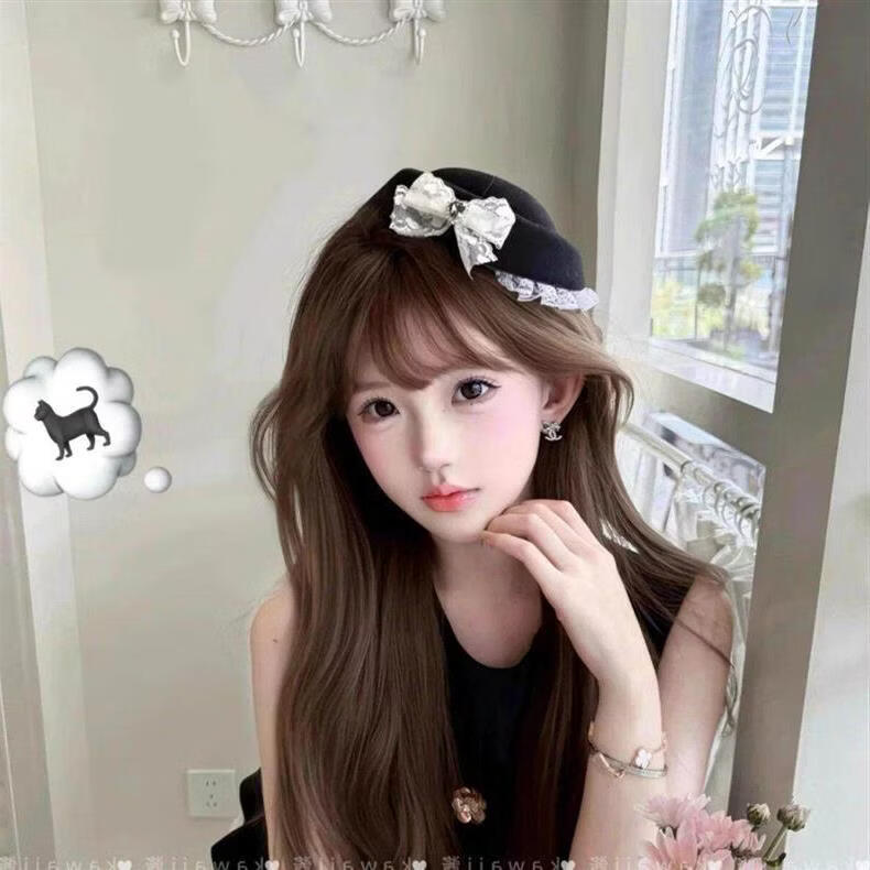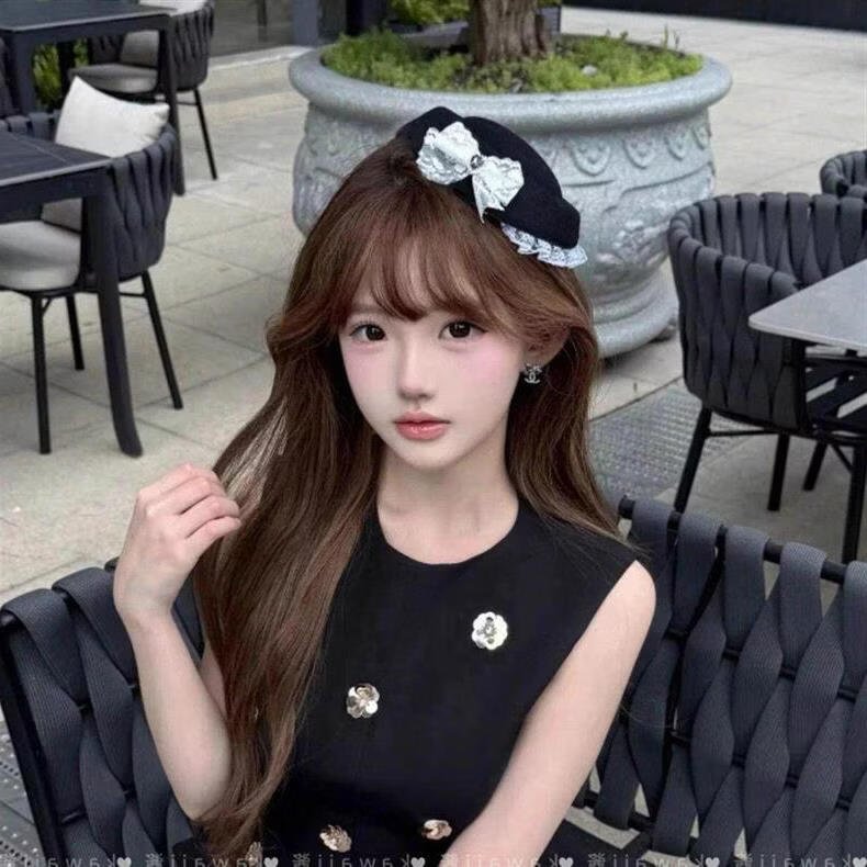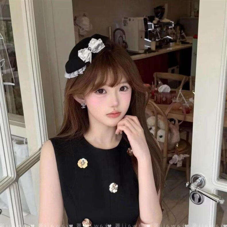 Beast Spring Korean ins style lace top hat French Hepburn British style black beret sweet and cute hair accessories C lace top hat * 2