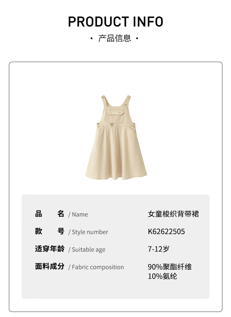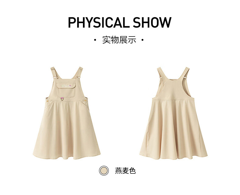 361 Children's clothing girls dress woven suspender skirt 2026 summer new style breathable skirt for middle and large children oatmeal color 160