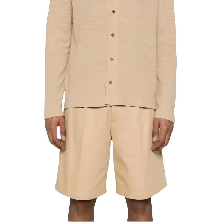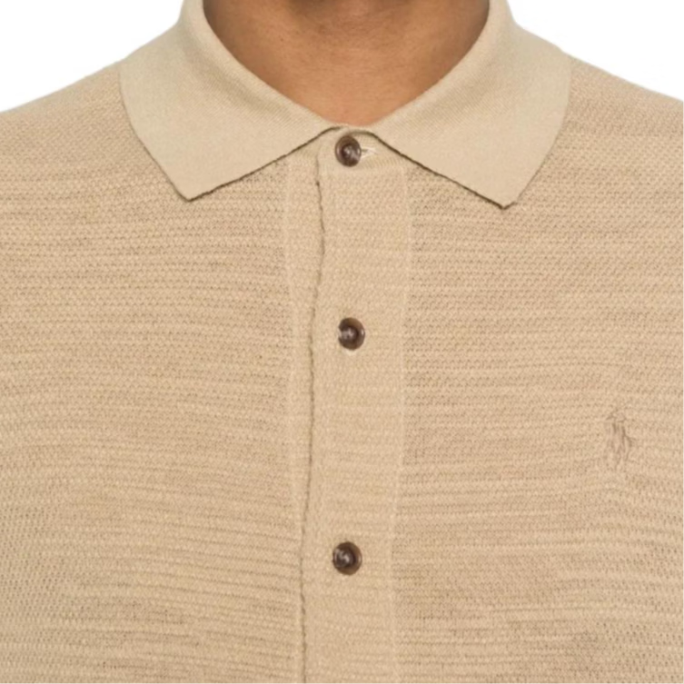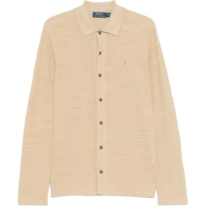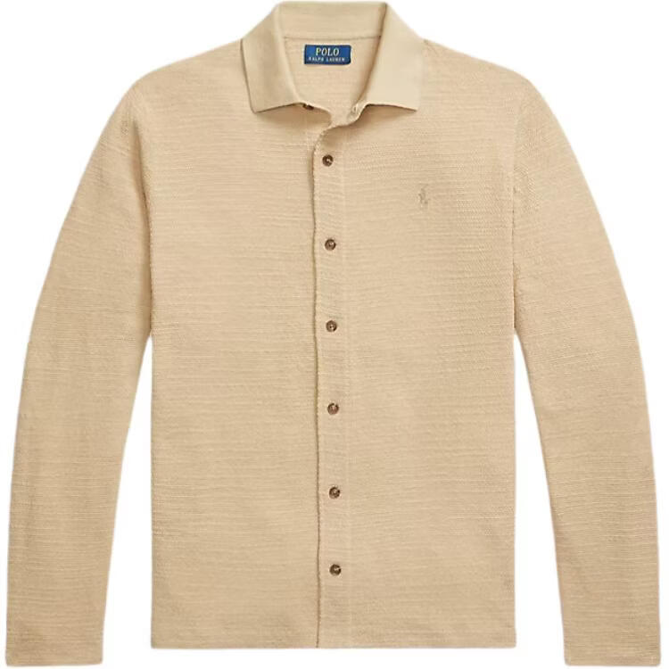RALPH LAUREN Ralph Lauren универсальная и модная повседневная однобортная мужская однобортная рубашка с длинными рукавами из текстурированного хлопка и льна с лацканами, светло-бежевого цвета, L