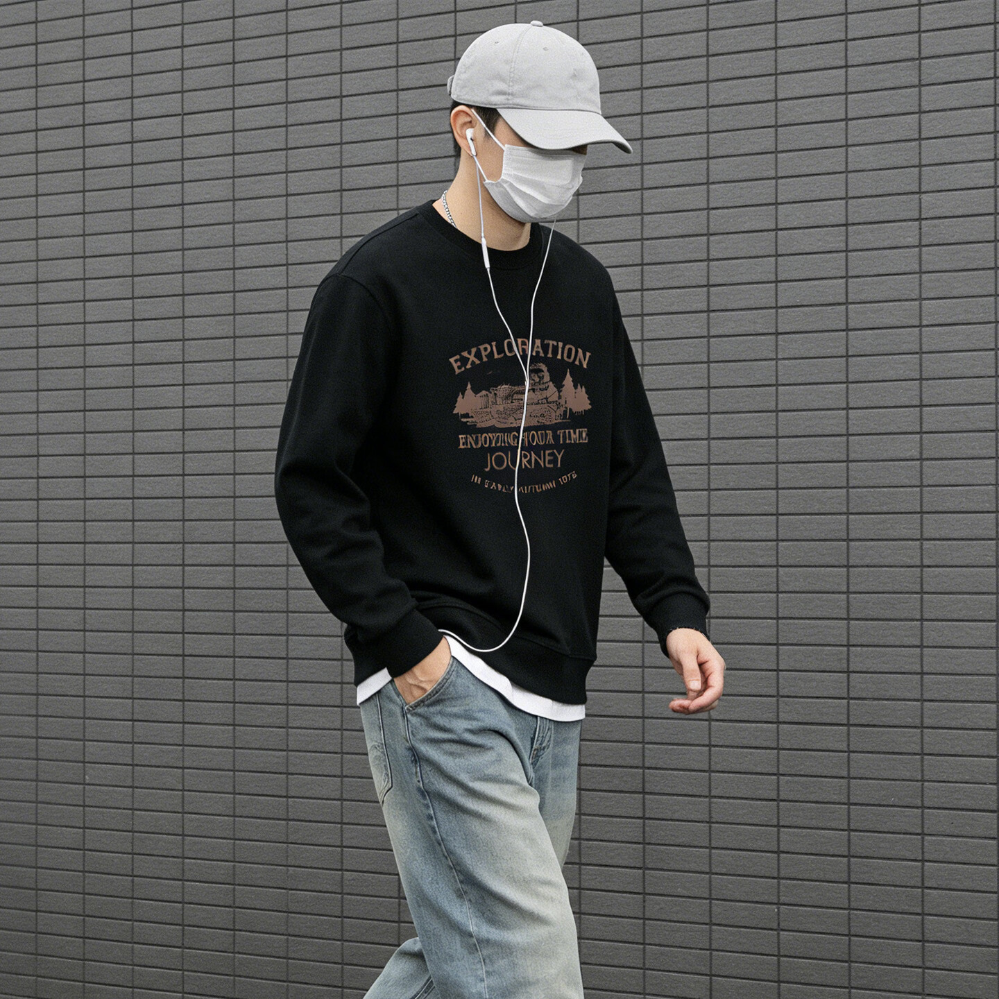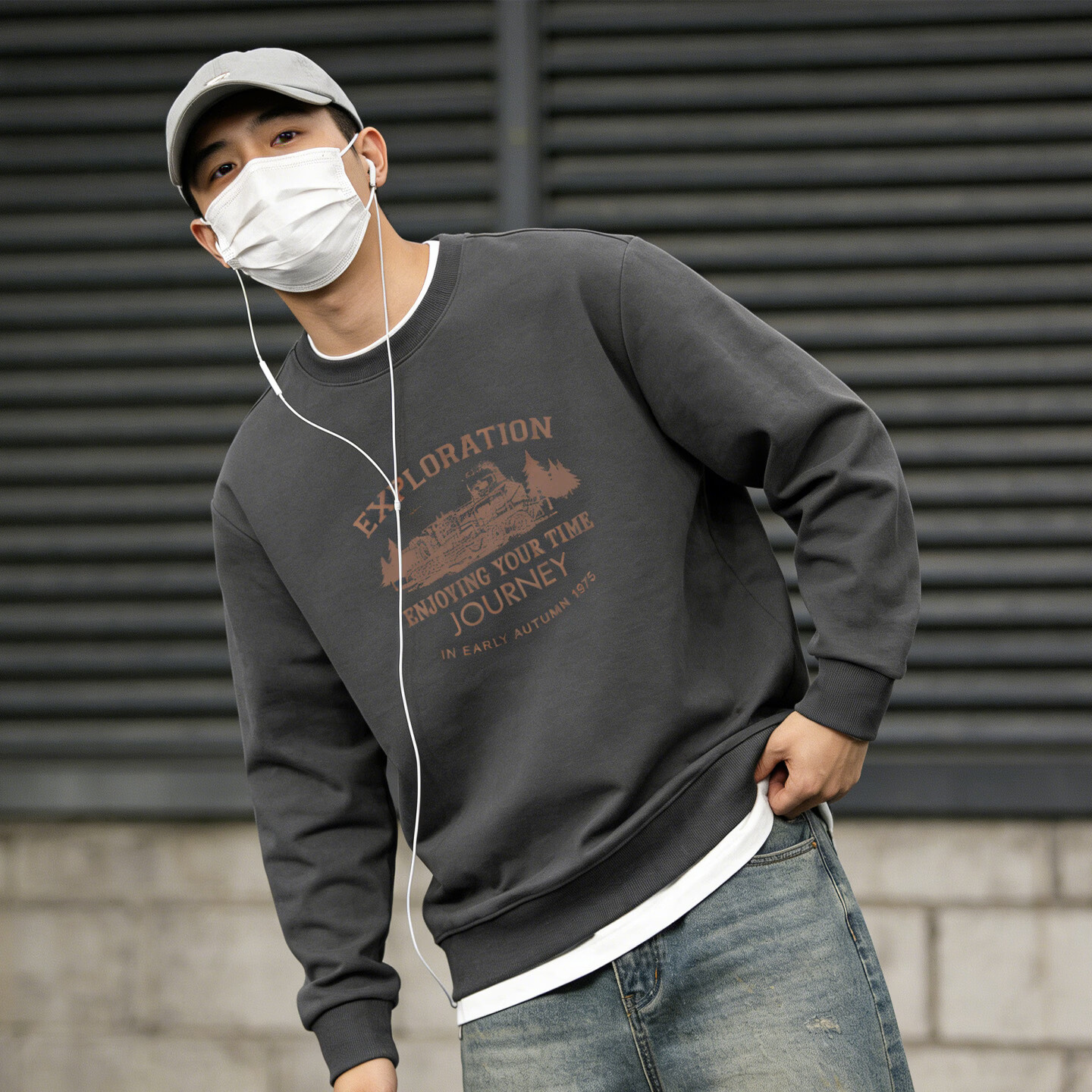 Playboy round neck sweatshirt men's loose large size 2026 spring and autumn new bottoming shirt men's long-sleeved T-shirt top dark gray S 95-120Jin Jin equals 0.5 kg