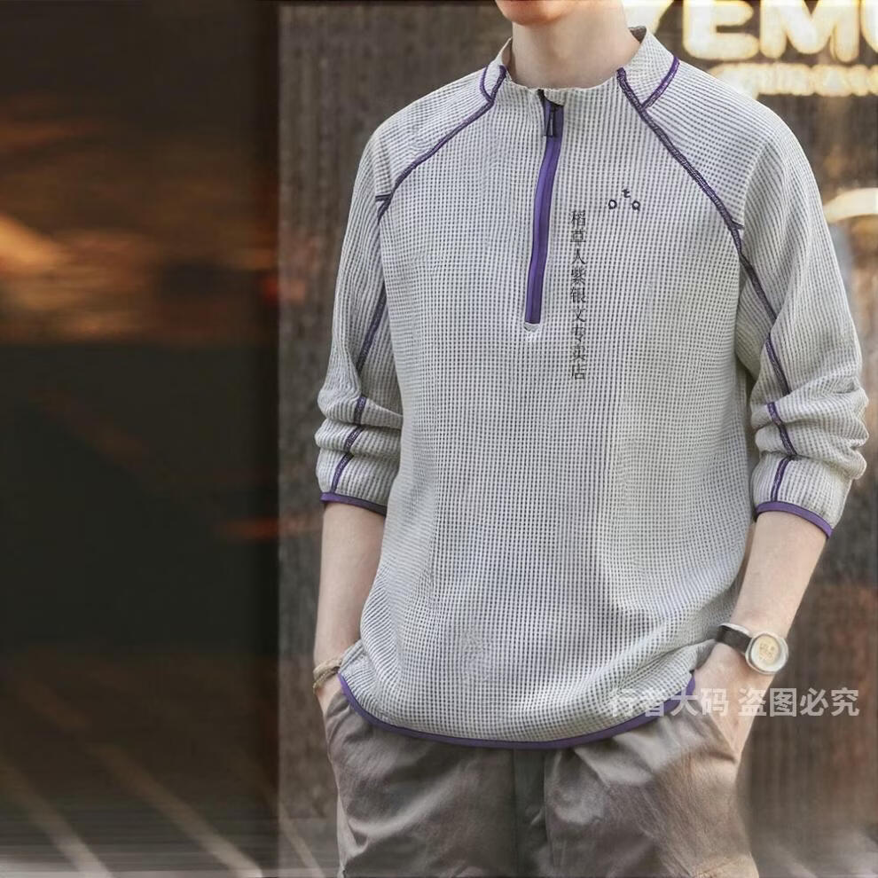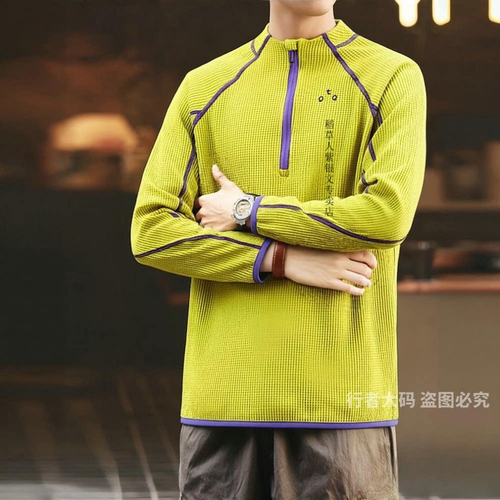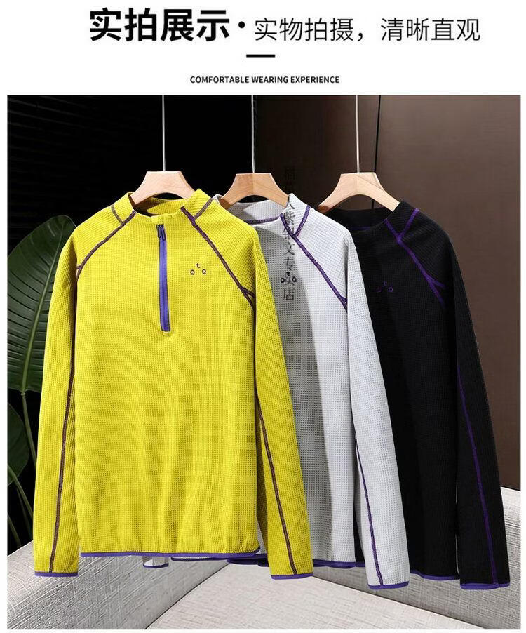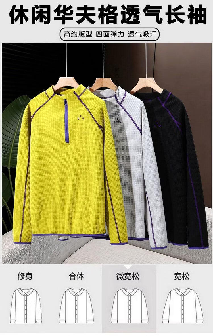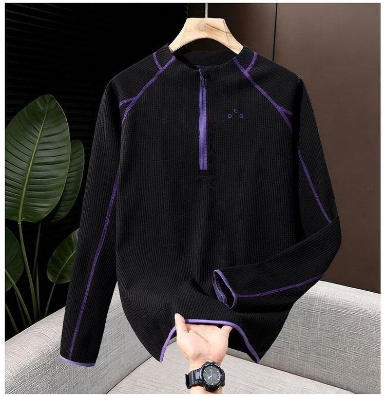 Scarecrow stretch sports large size waffle half-zip quick-drying T-shirt men's long-sleeved stand collar outdoor riding breathable sweat-absorbent sweatshirt black XD2533 quick-drying waffle 5XL 180-200Jin Jin equals 0.5 kg