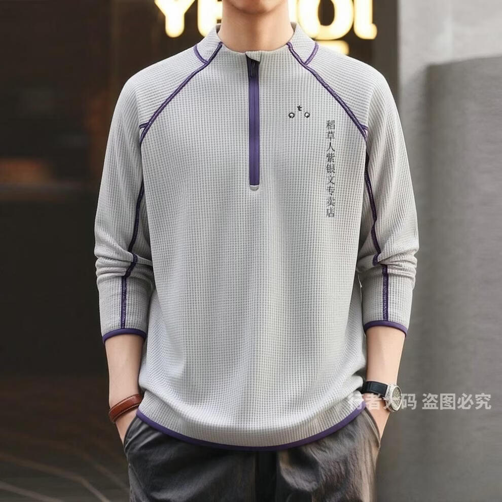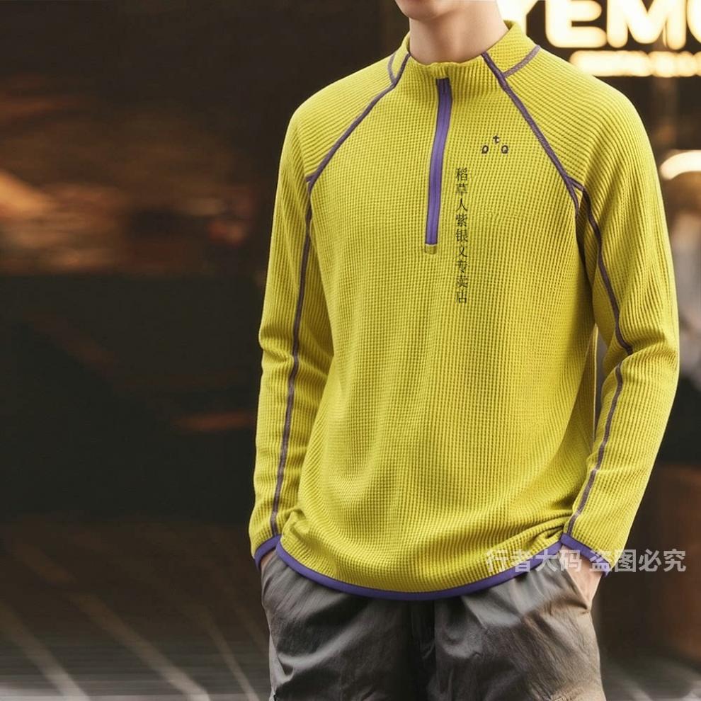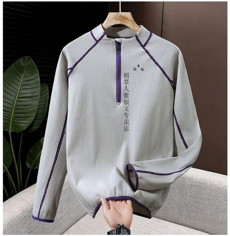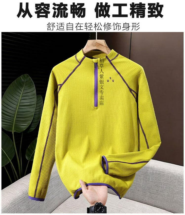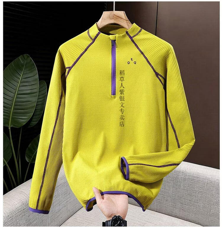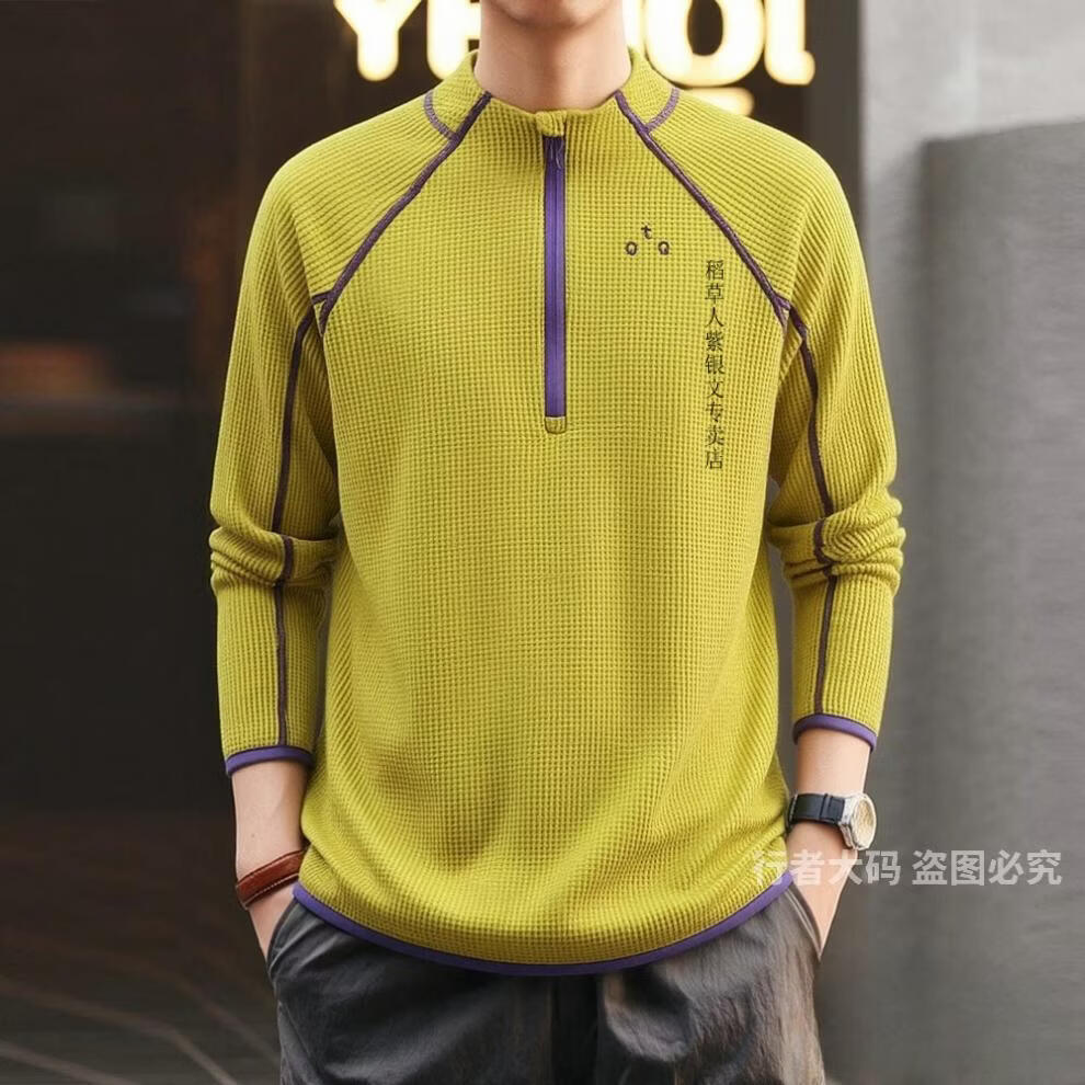 Scarecrow stretch sports large size waffle half-zip quick-drying T-shirt men's long-sleeved stand collar outdoor riding breathable sweat-absorbent sweatshirt black XD2533 quick-drying waffle 5XL 180-200Jin Jin equals 0.5 kg