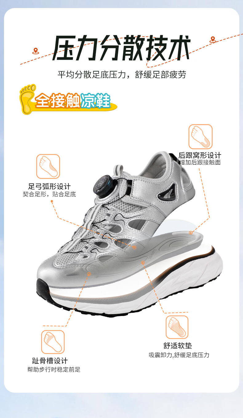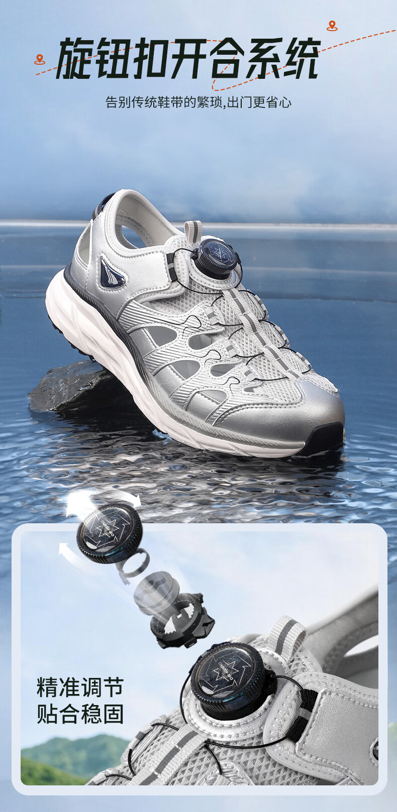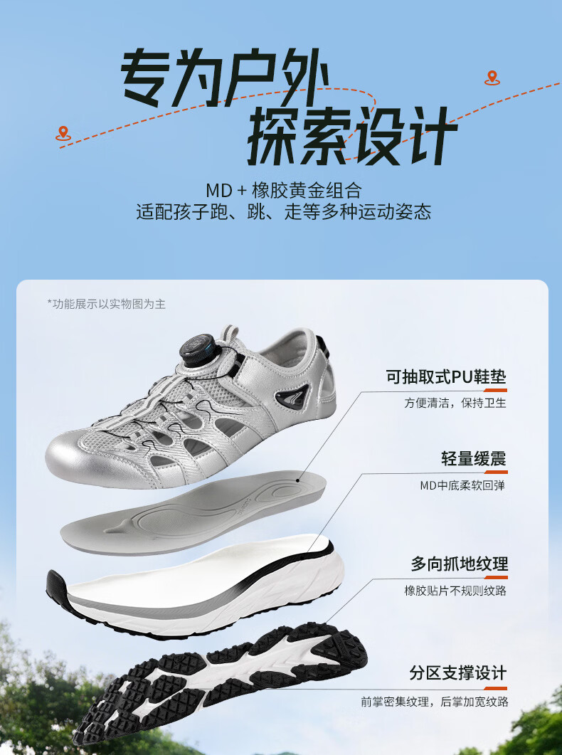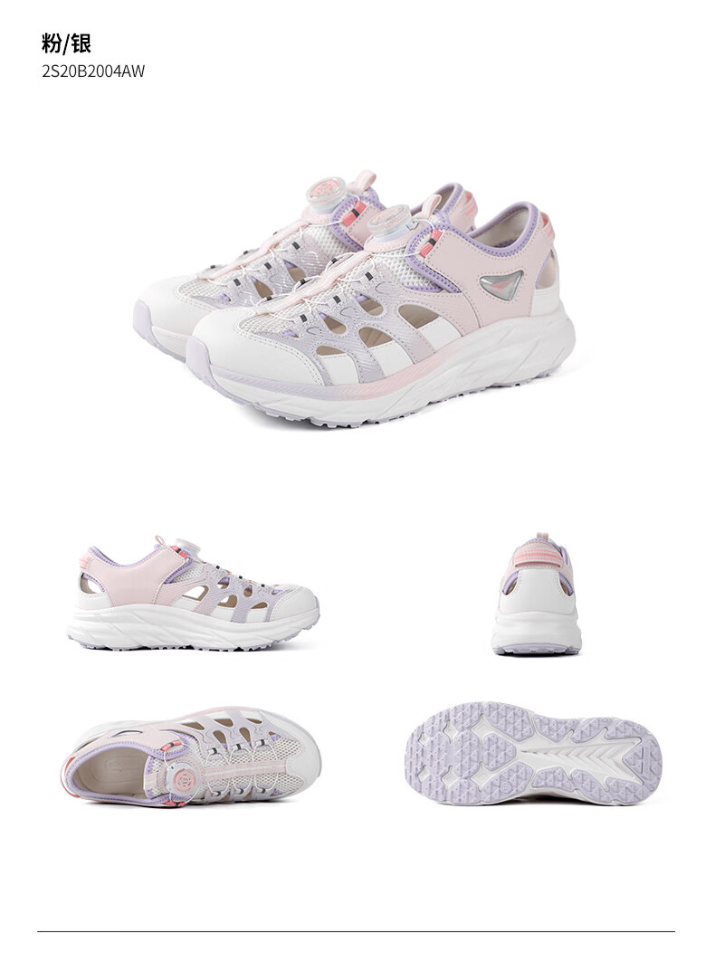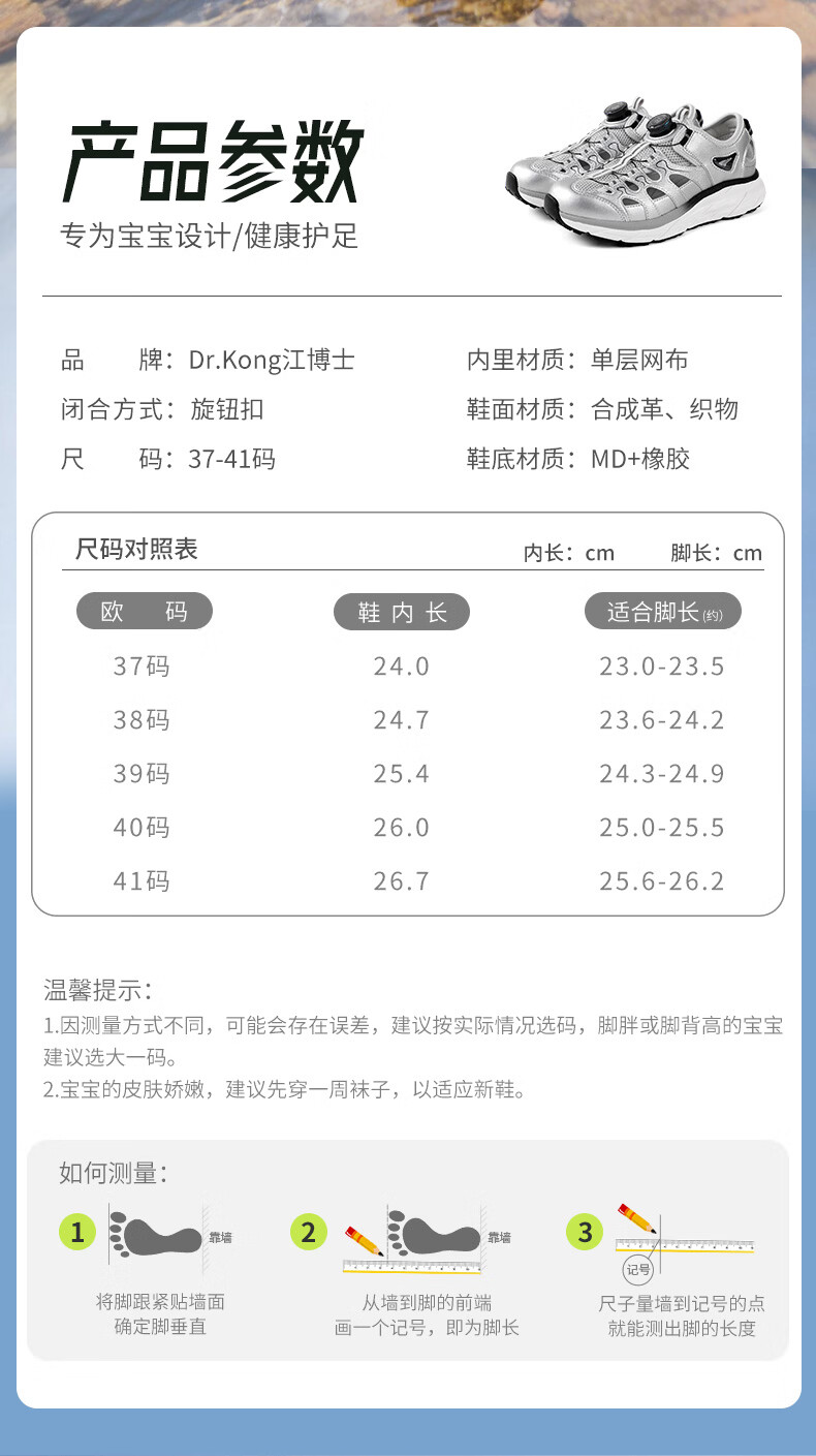 Dr. Kong (DR KONG) summer outdoor sports-style Baotou breathable sandals for men and women, children's sandals without twist buttons, pink/silver 37, foot length is about 23.0-23.5